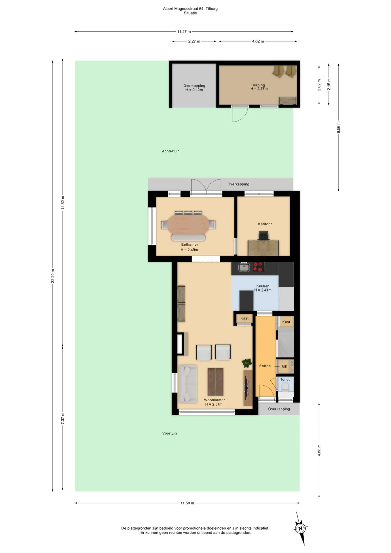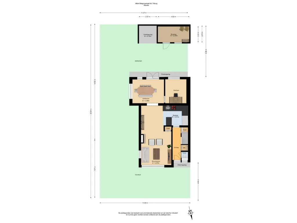 Diepe voortuin met oprit waar je makkelijk twee auto's kwijt kan, dat is fijn parkeren op eigen perceel. De achtertuin is een combinatie van achter- en zij tuin en heeft een mooie oppervlakte van ca. 75m². De achtertuin ligt op het zonnige zuiden en is voorzien van een terras, borders, vaste beplanting en kunstgazon. Er is een stenen berging aanwezig en twee overkappingen voor fietsen en opslag; kortom, opbergruimte genoeg. Aan de zijkant is de poort naar de oprit en de straat.