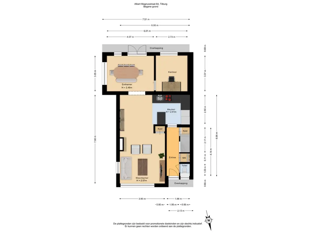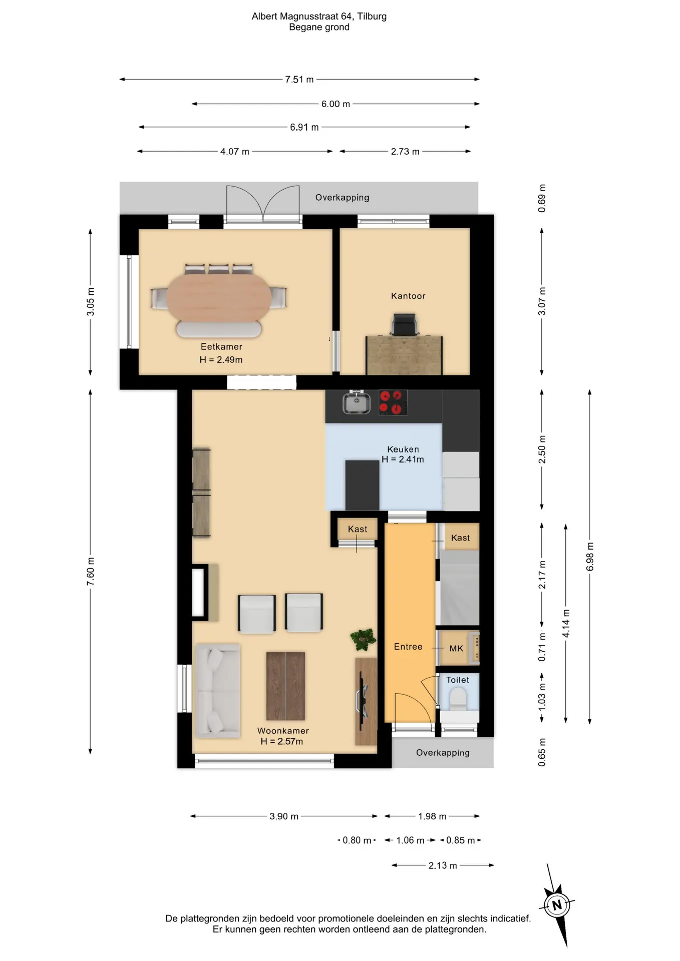 Entree, hal met garderobe, trapkast, meterkast en modern toilet. De hal geeft toegang tot de keuken met een doorloop naar de woonkamer. Ruime lichte woonkamer met fraai uitzicht aan de voorzijde over de straat. Aan de achterzijde is de woning recent (2024) uitgebouwd met eetkamer en apart kantoor, werkkamer of speelkamer. De wanden en het plafond zijn gestukadoord en de vloer is voorzien van een houten vloer en een betonvloer in de uitbouw. Met zijn ca. 40m² en nog een 8m² kantoor kan je spreken van een echte living. De keuken (2025) is uitgevoerd in een royale hoekopstelling met extra werkblok en barretje om aan te zitten. Er is volop bergruimte en diverse inbouwapparatuur, zoals: inductie koken, vaatwasmachine, koelkast en combimagnetron.