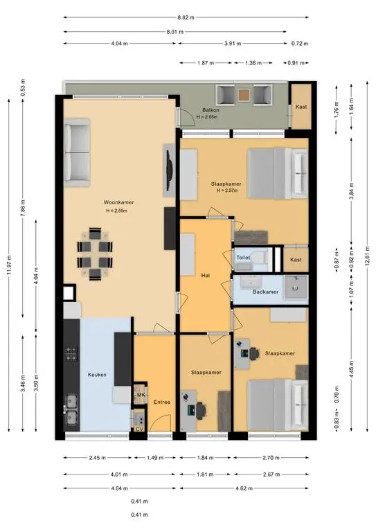 Op de tweede verdieping kom je via de achtergelegen galerij bij de entree van het appartement met hier de ruime hal. In de hal is de vernieuwde meterkast en heb je toegang tot de woonkamer.