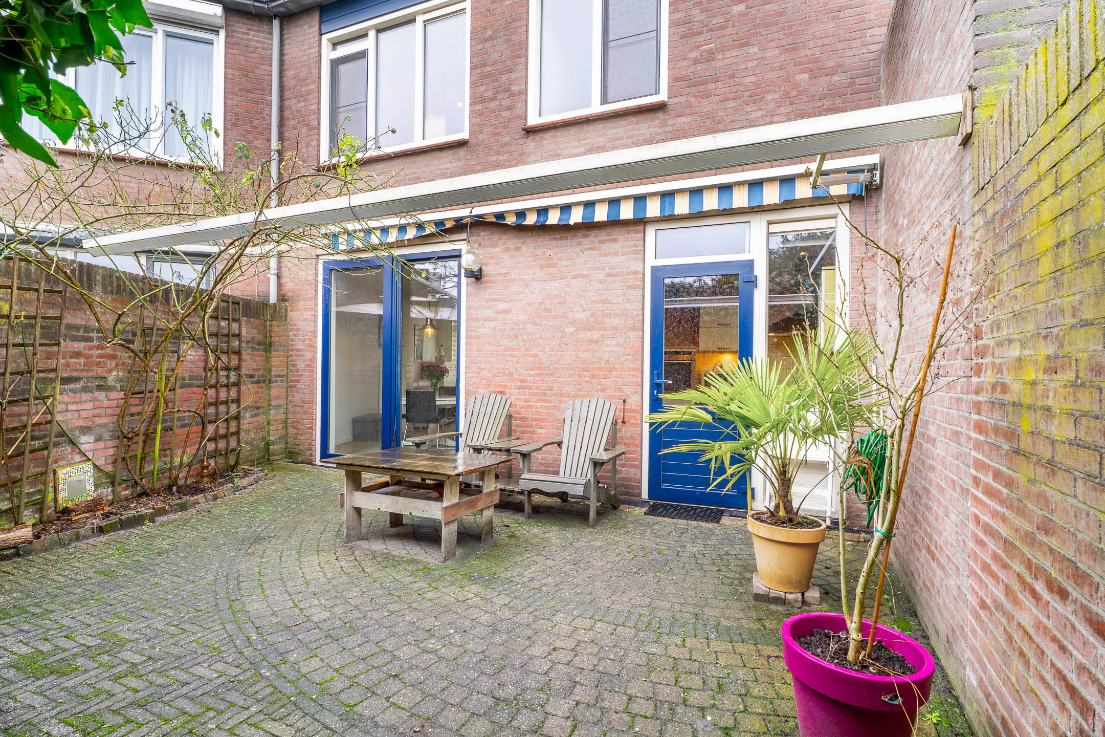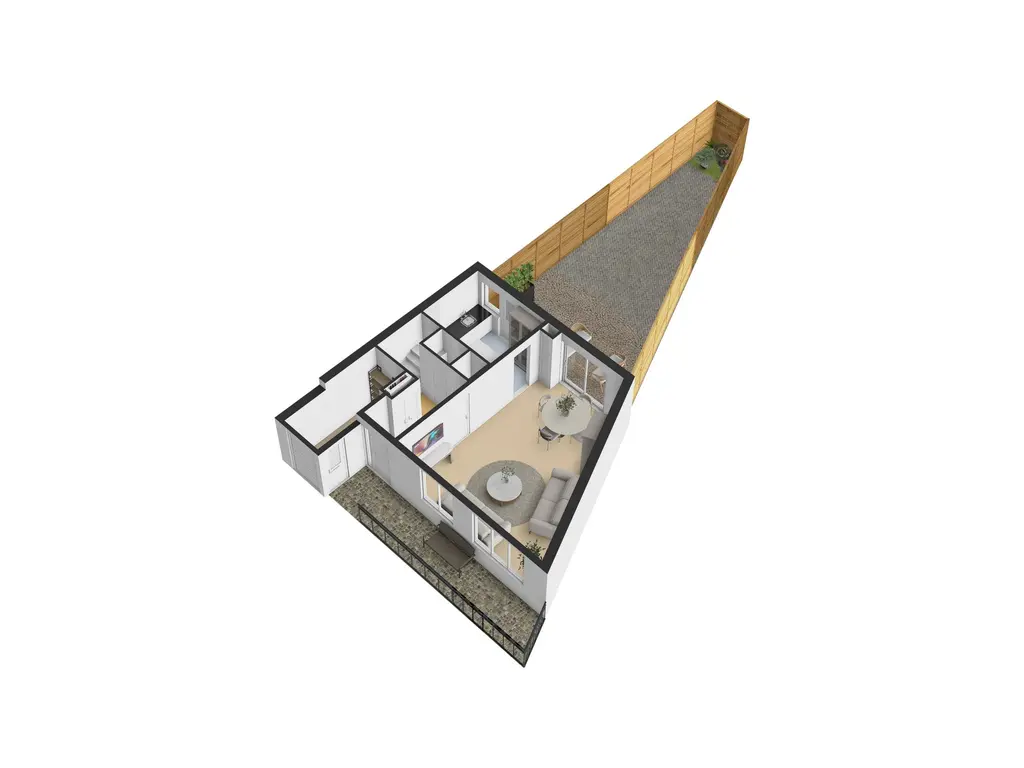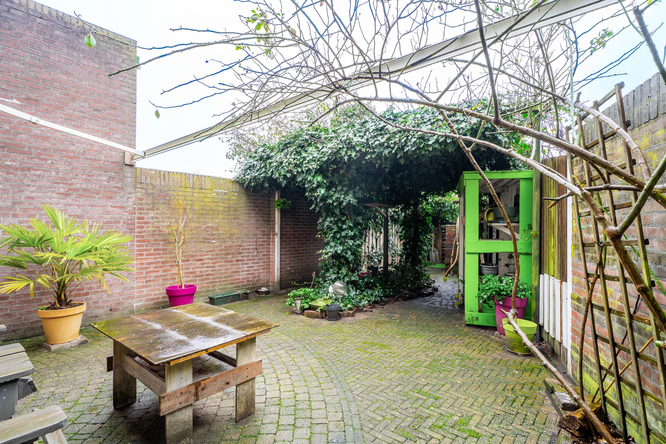 Vanuit de keuken en de woonkamer is er toegang tot de sfeervolle achtertuin. Keurig aangelegd met borders en terras. Middels de brandgang is er een achterom toegankelijk. Aan de voorzijde is een inpandige berging gesitueerd. Deze berging is voorzien van een roldeur en een loopdeur, ideaal voor een motor, maar natuurlijk ook voor fietsen en/of opslag.