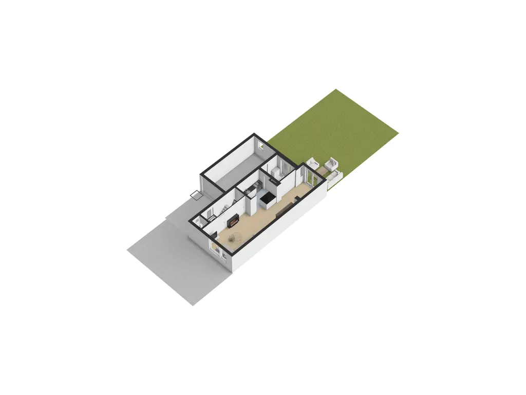 De ruime woonkamer is aan de achterzijde uitgebouwd. Middels openslaande tuindeuren is de tuin makkelijk toegankelijk. De woonkamer is afgewerkt met een laminaatvloer en stucwerk. De vloer is voorzien van vloerverwarming.