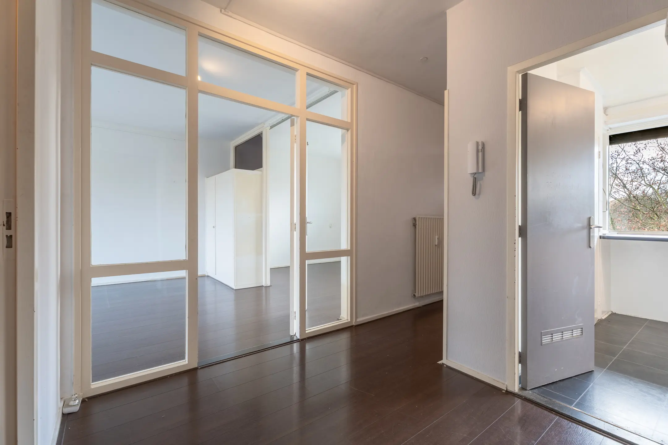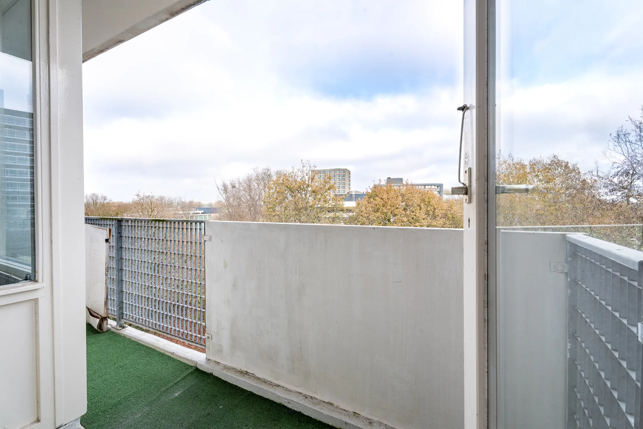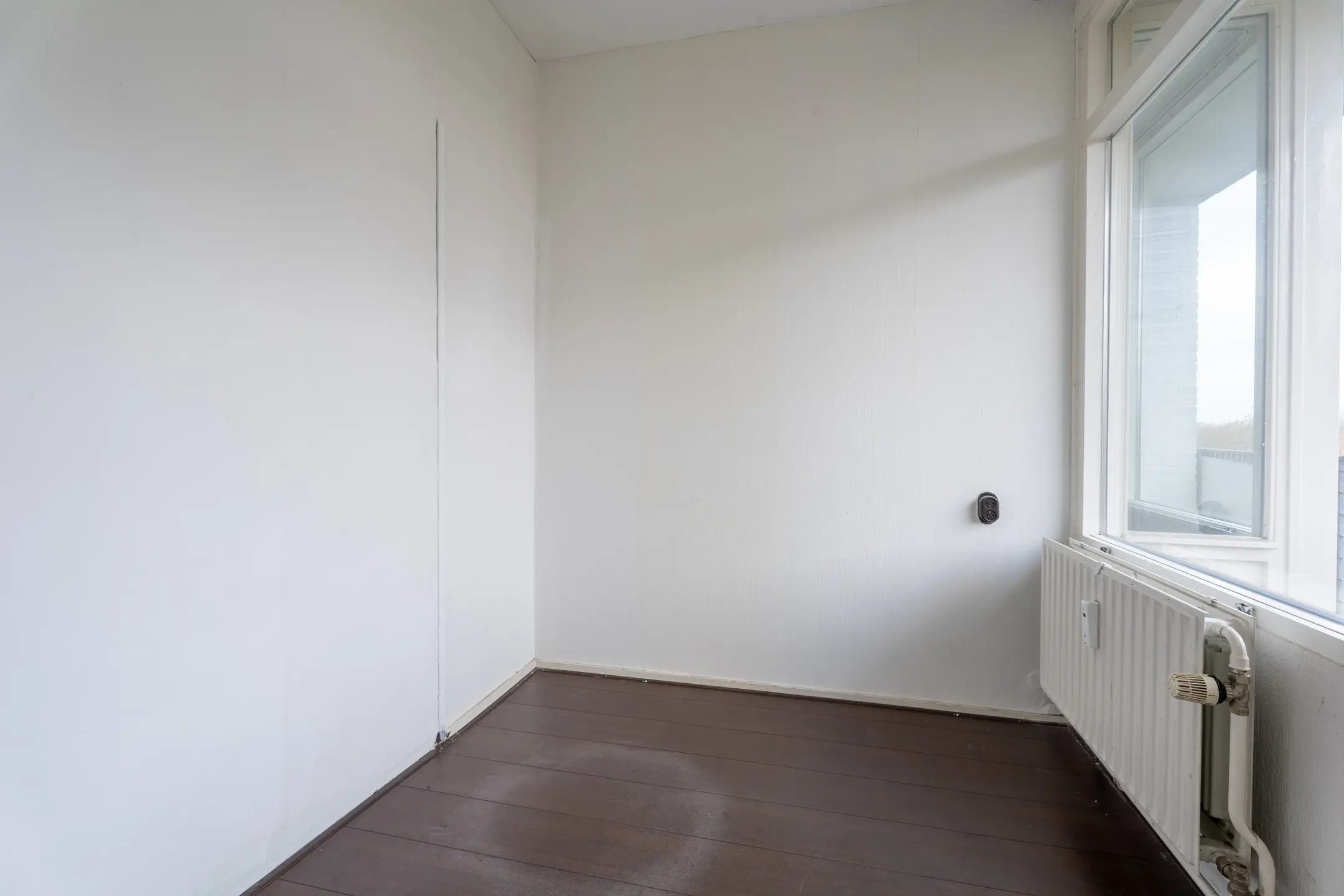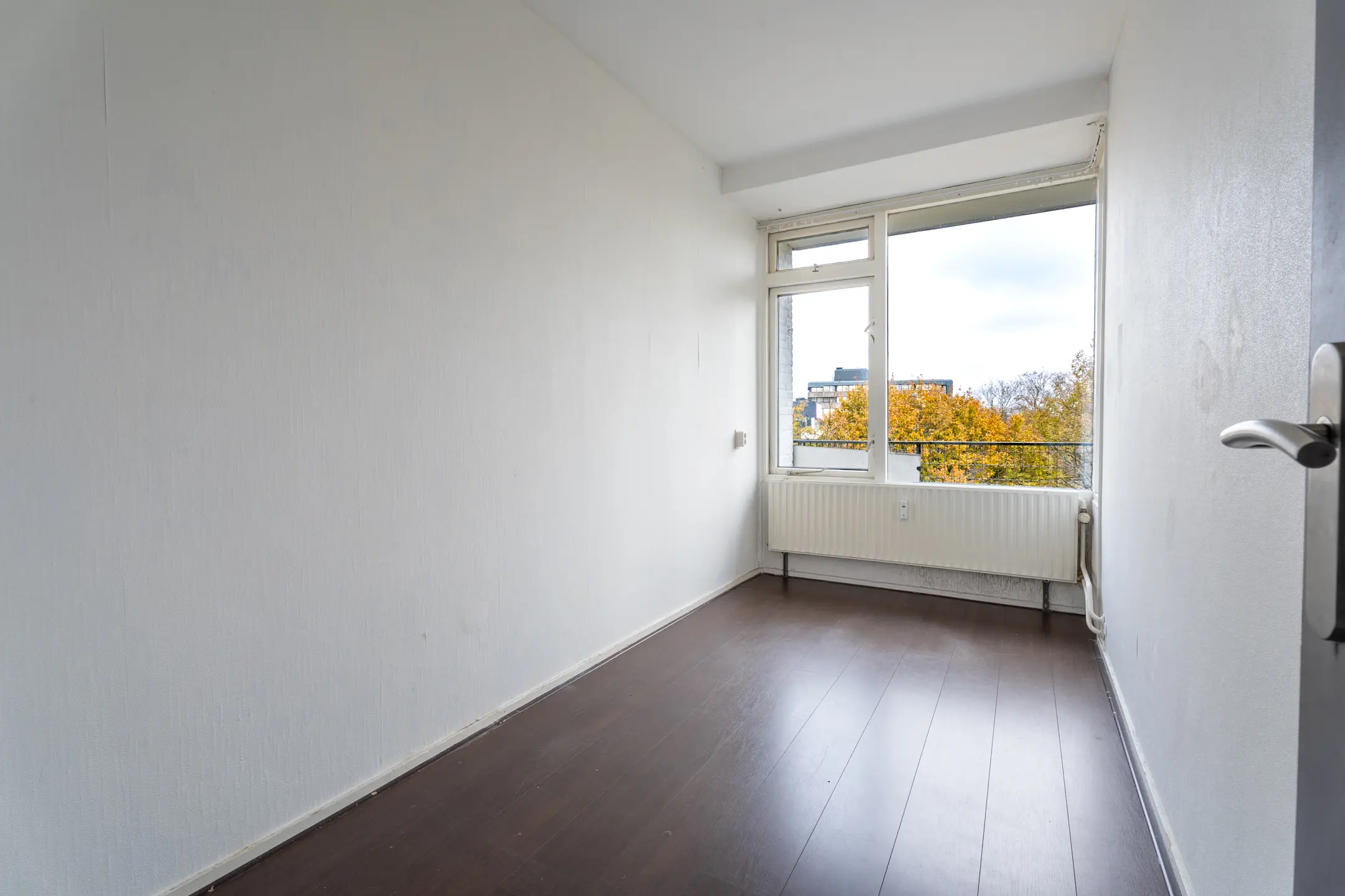 Het appartement beschikt over twee slaapkamers die gelegen zijn aan de achterzijde van het appartement. De kamers zijn keurig afgewerkt met een laminaatvloer. Via een van de kamers is het balkon toegankelijk, deze is ca. 4 m² groot en biedt een mooi uitzicht op de groene omgeving. De badkamer beschikt over een douche en een wastafel. Het toilet is betegeld en voorzien van fonteintje.