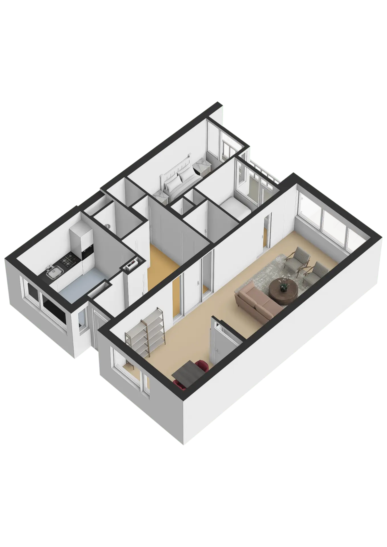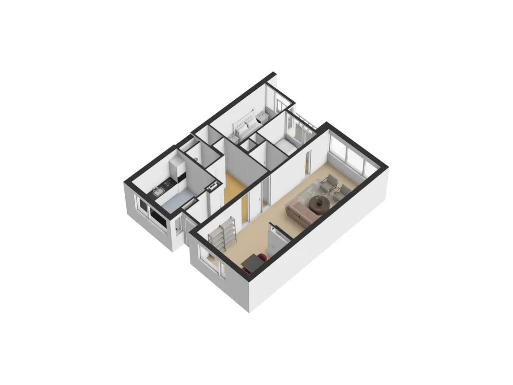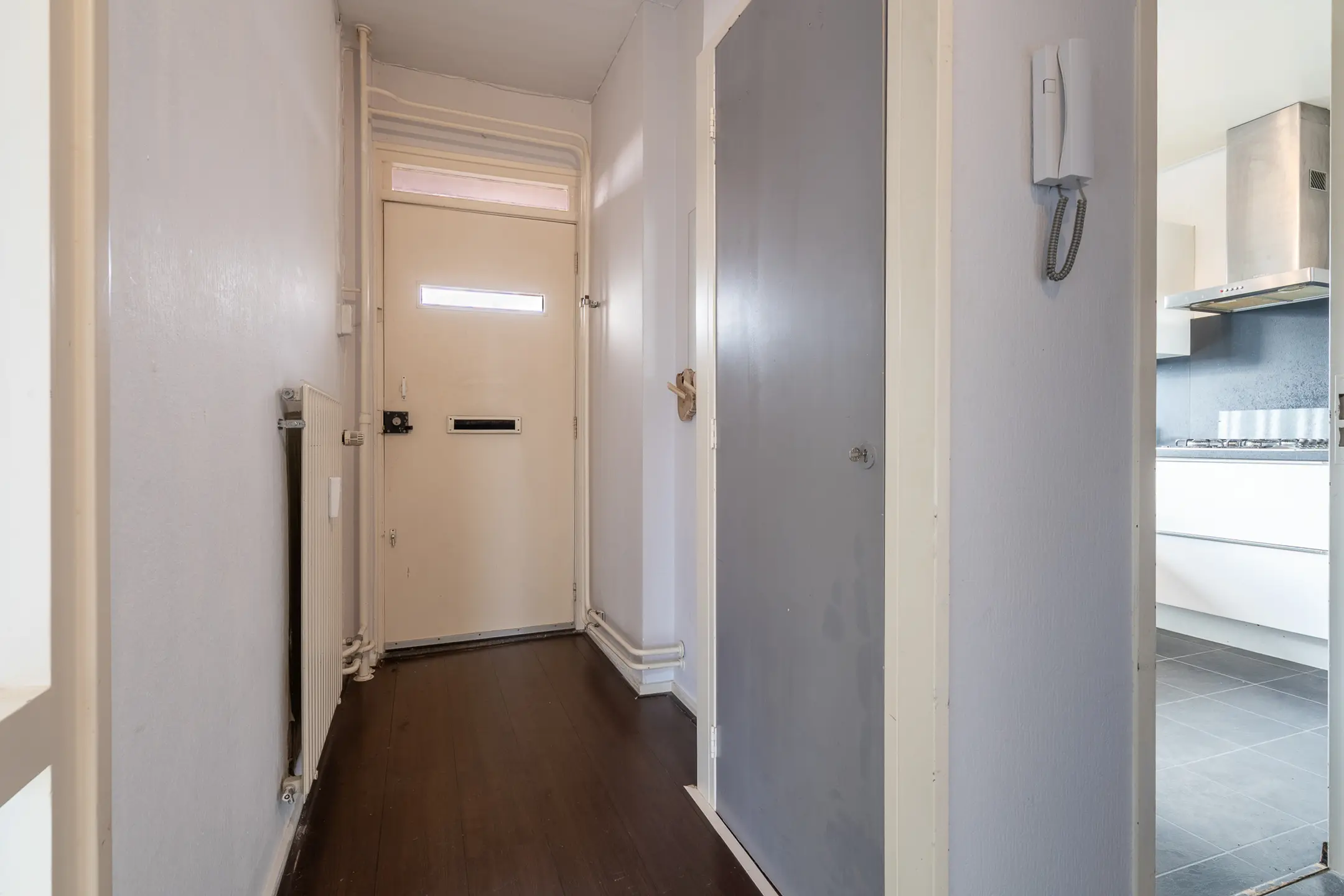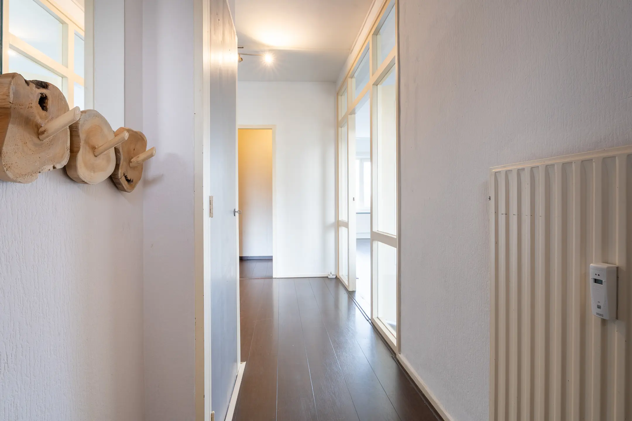 Via de hal betreed je het appartement en vanuit de hal zijn ook alle vertrekken van het appartement toegankelijk.