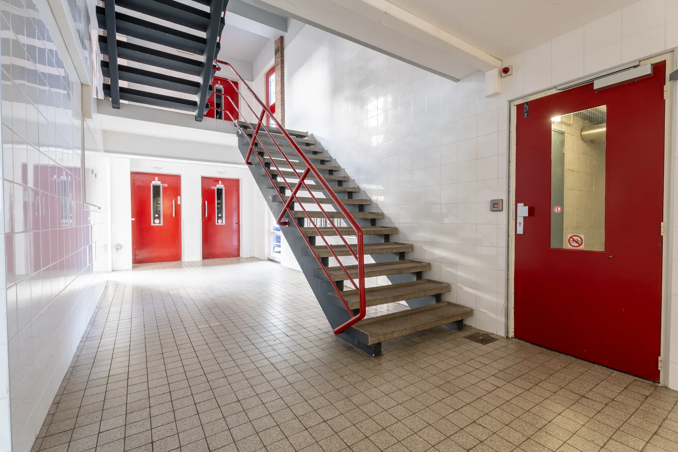 Via het intercomsysteem bereik je het complex. In de ruime en lichte centrale hal bevinden zich de brievenbussen en toegang tot het trappenhuis en de liften. De bergingen zijn via de zijkant te betreden en elk appartement heeft een individuele berging.