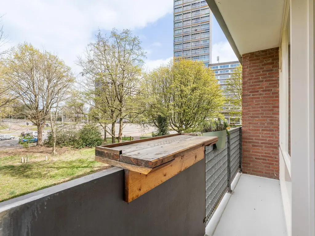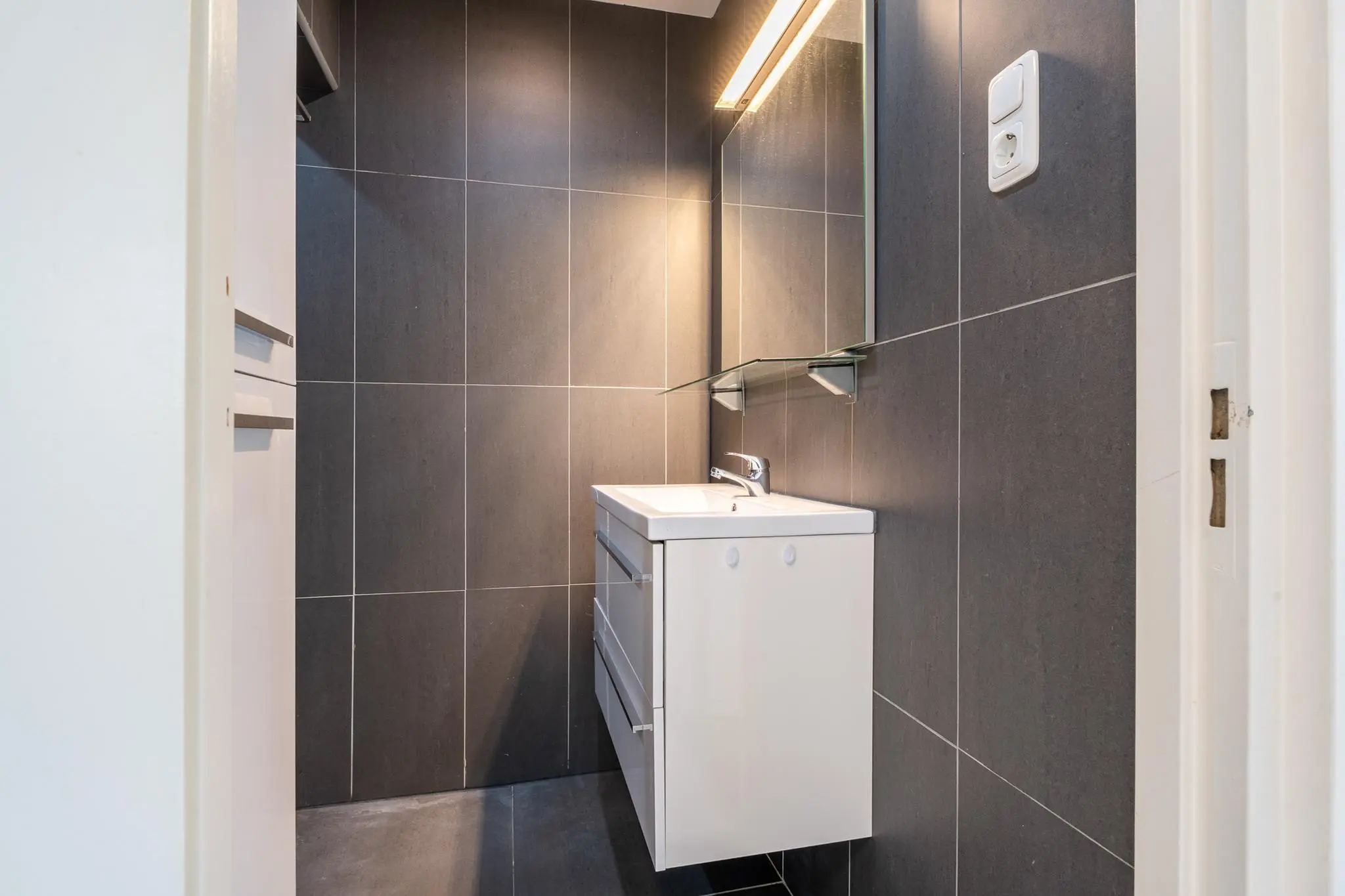 De keuken heeft een moderne hoekkeuken en is voorzien van volop kastruimte, kookplaat, afzuigkap, combimagnetron, koelkast en een vaatwasmachine. Het appartement beschikt over twee ruime slaapkamers van ca. 10 en maar liefst 15m². De eerste slaapkamer is gelegen aan de achterzijde (galerij - kant) van het appartement en de tweede aan de voorzijde met uitzicht op de Professor Cobbenhagenlaan en Ringbaan-West. Beide zijn keurig afgewerkt met een lichte laminaatvloer en gestukadoorde wanden. De grootste slaapkamer geeft via een deur toegang tot het balkon en heeft een kastenwand met opstelling van de wasmachine en de boiler (voor het warme water Bj. 2024). Het balkon is ca. 5 m² groot en biedt een mooi vrij uitzicht op de groene omgeving. De badkamer beschikt over een ruime inloopdouche en een wastafel met meubel en strakke antraciet grijze tegels. Het toilet is betegeld, voorzien van fonteintje en in dito stijl als de badkamer.