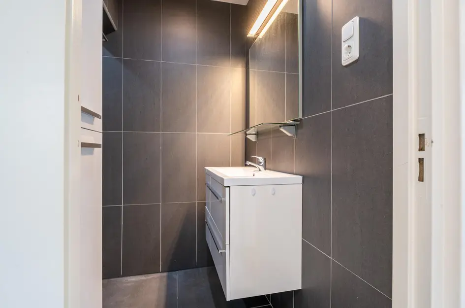 Via de hal, entree betreedt je het appartement en vanuit deze hal zijn ook alle vertrekken van het appartement toegankelijk.