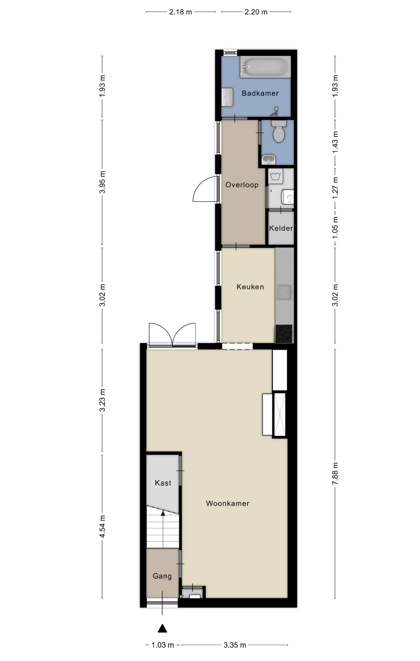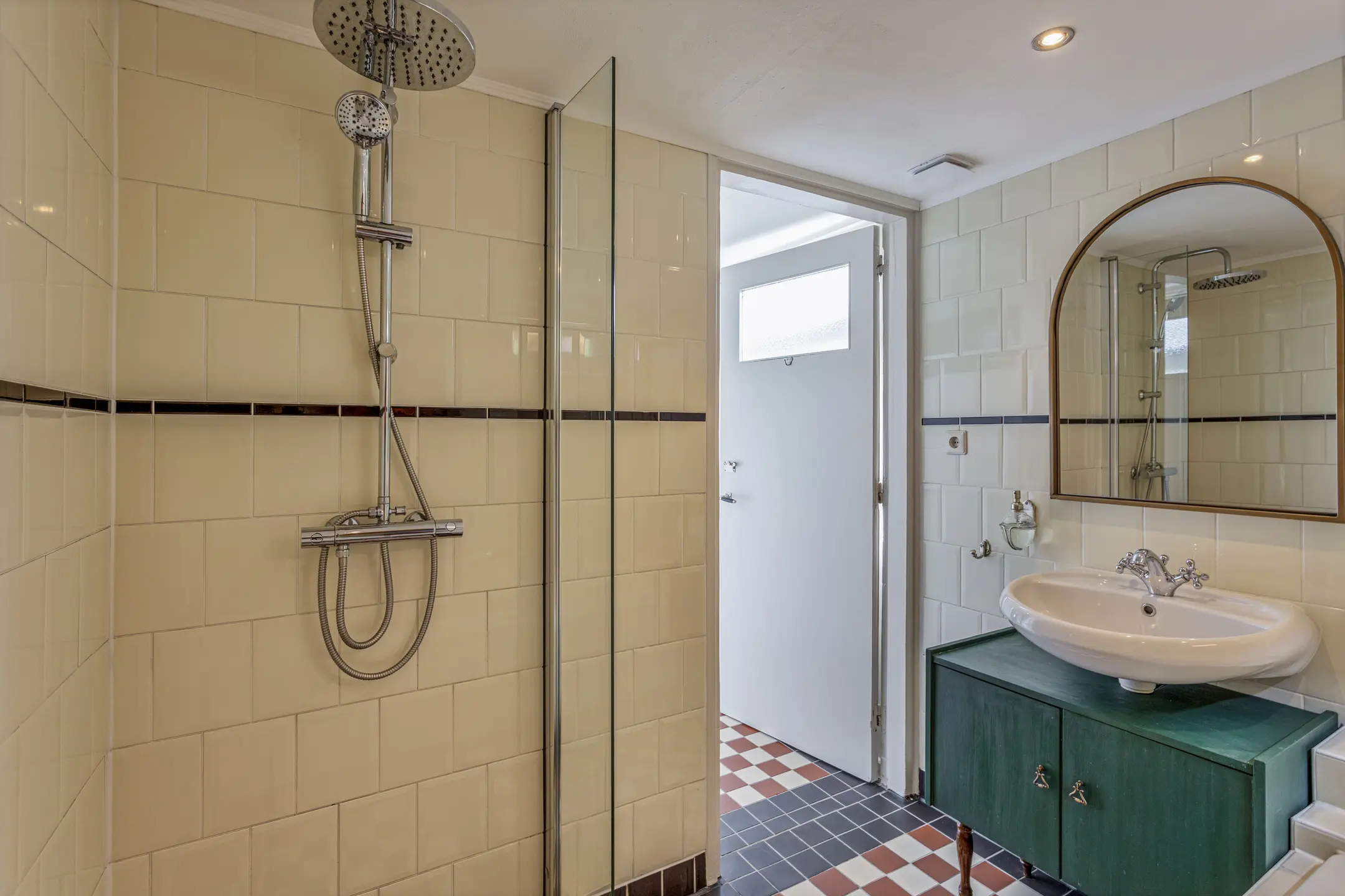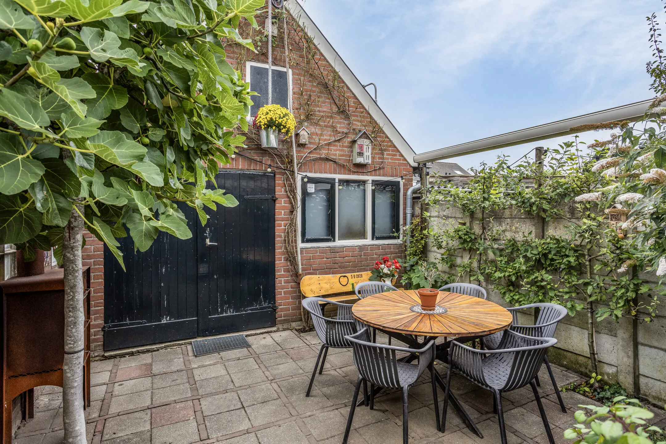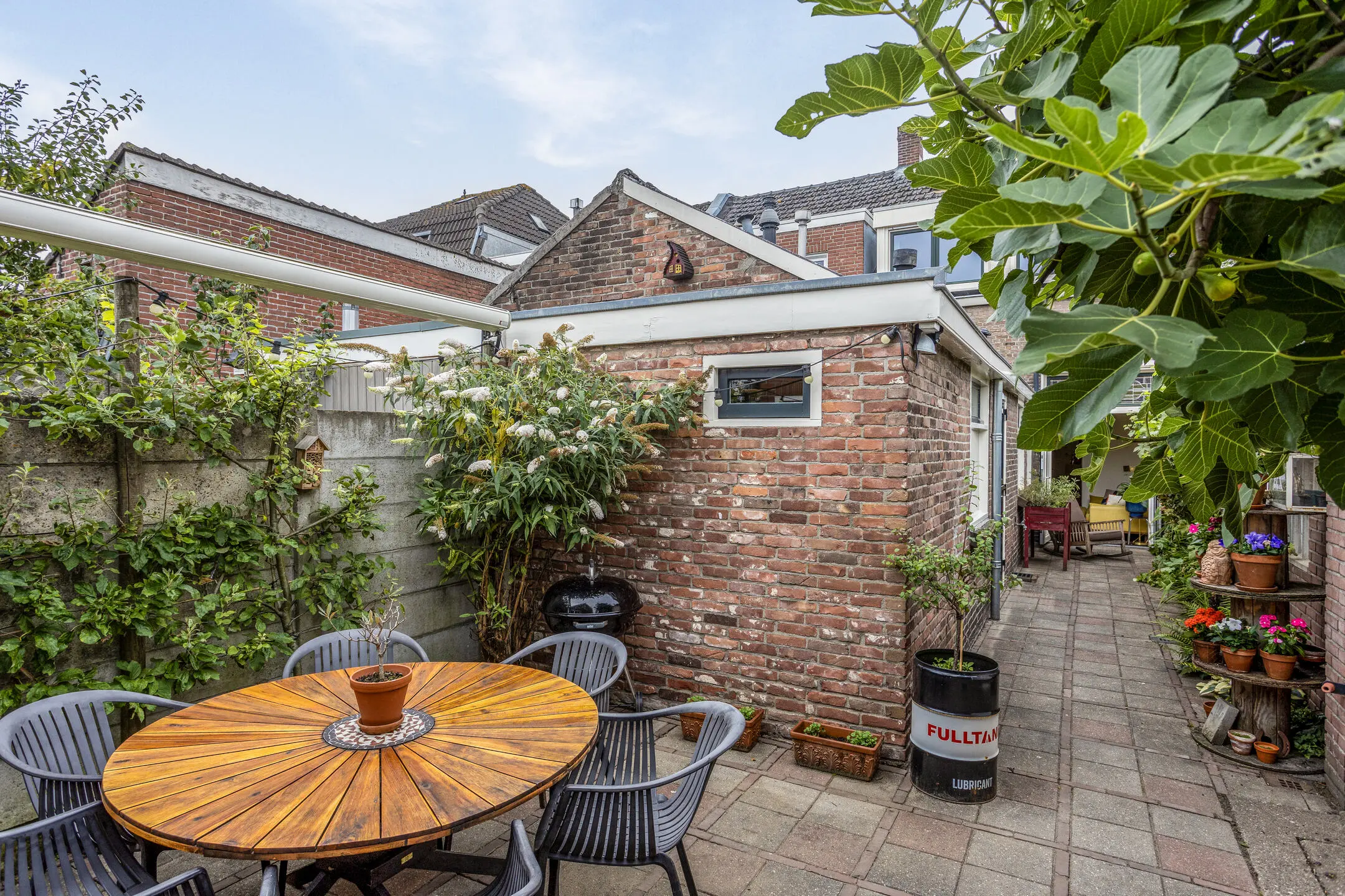 Entree, hal met trapopgang en toegang naar de woonkamer. De originele voordeur en het glas-in-lood sieren de entree. De gezellige woonkamer heeft eveneens glas-in-loodramen en is met zijn hoogte van 2.90m en vloeroppervlakte van ca. 30m² heerlijk ruim. De vloer is voorzien van lamelparket, de wanden zijn strak gestuukt, en de tuindeuren en houtkachel zorgen voor een sfeervol geheel. Aan de achterzijde van de woning bevinden zich de keuken, bijkeuken, het toilet en de badkamer. De lichte keuken is ingericht met een keukenblok in rechte opstelling en beschikt over prettig veel bergruimte. Daarnaast is er diverse inbouwapparatuur aanwezig, waaronder een gasfornuis, combi-oven, afzuigkap, koel-vriescombinatie en vaatwasmachine. Aansluitend bevindt zich de bijkeuken, met de opstelling voor de wasmachine/droger, de cv-ketel (2019) en een voorraadkast. Het separate toilet is geheel betegeld en uitgevoerd met fontein. De badkamer is eveneens geheel betegeld en voorzien van een douche, een ligbad en een wastafel. Middels de woonkamer (tuindeuren) en de bijkeuken (achterdeur) is de tuin en de garage bereikbaar.