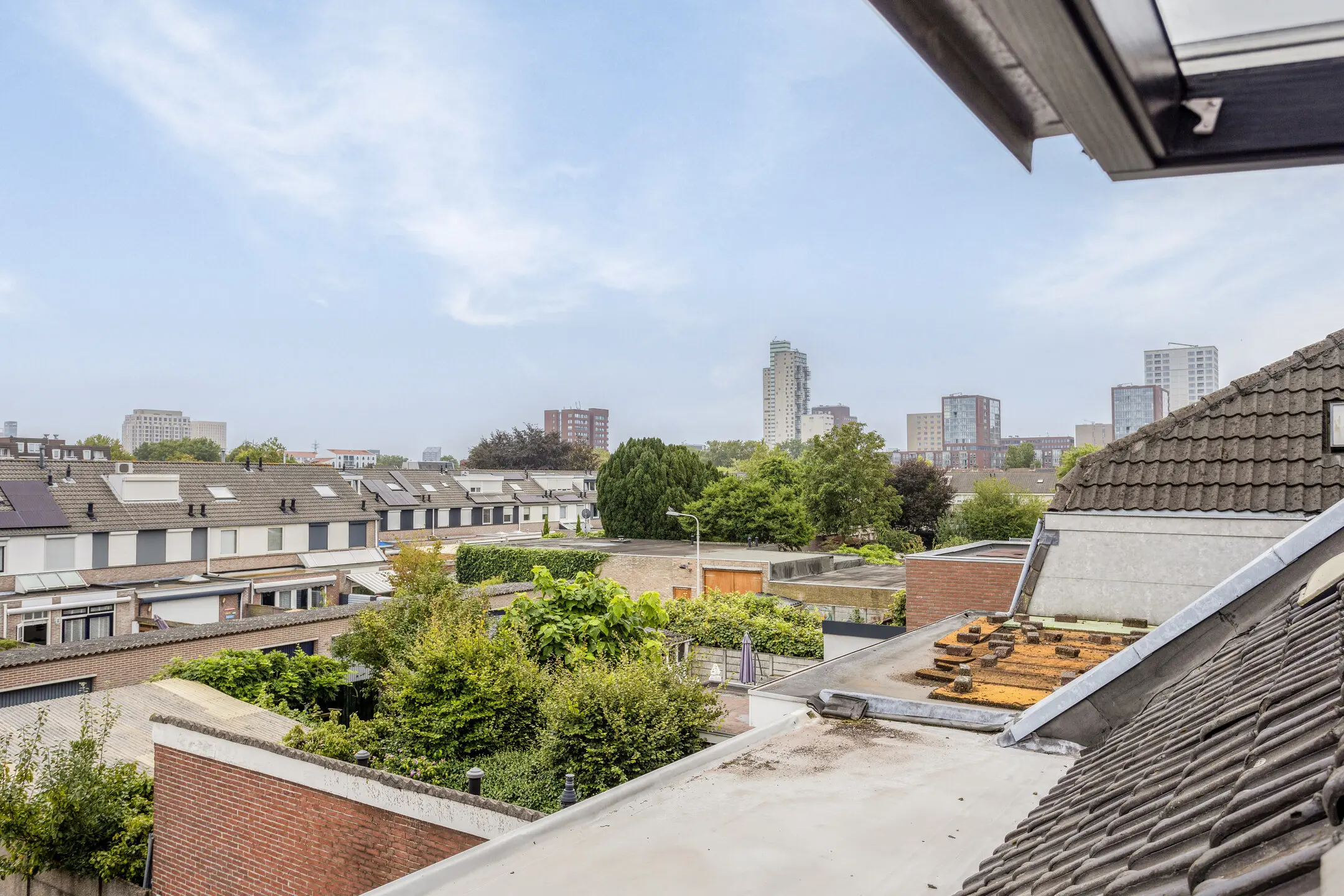 - Kunststof dakkapel aan de achterzijde (eerste verdieping) met draai-kiep ramen en rolluik.
