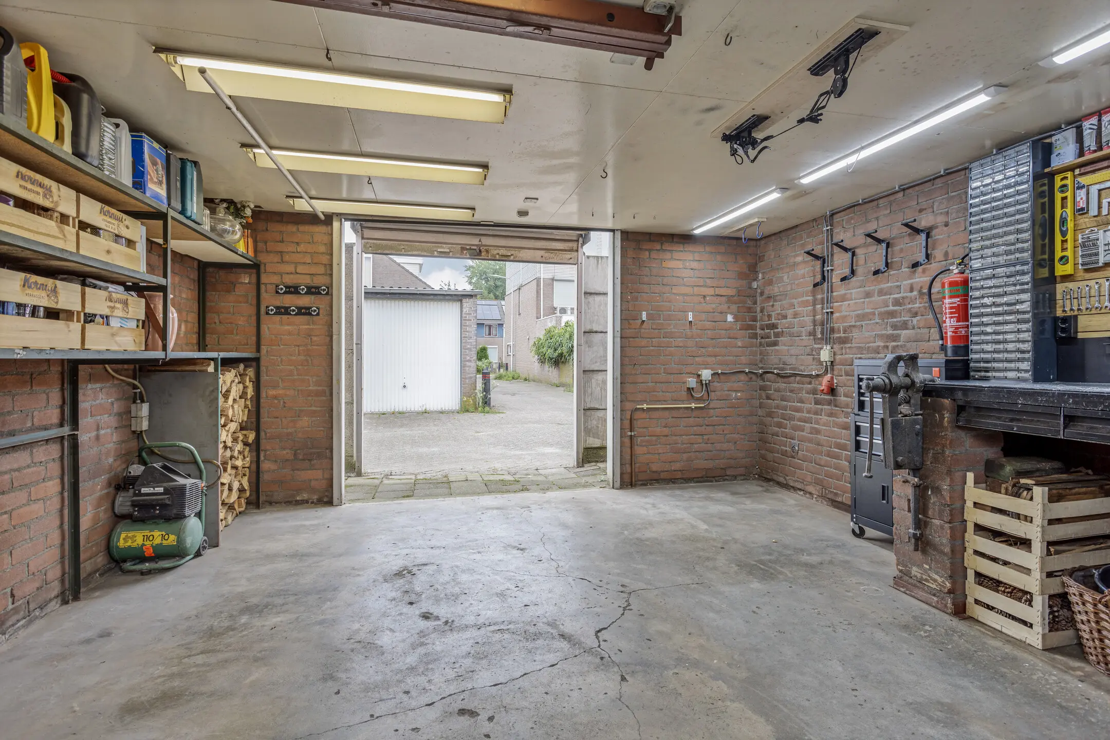 De tuin is bereikbaar via de brandgang aan de zijkant (noord) van de woning en via de garage, die ontsluiting biedt aan het Dudokhof. De grote brede brandgang is voorzien van een dubbele stalen poort. De garage is ca. 18 m² groot en uitgevoerd met een bergzolder(tje), elektra en dubbele deuren. Een ideale ruimte voor hobby’s, motorstalling en/of klusmogelijkheden. De achtertuin is volledig bestraat, onderhoudsarm, maar toch sfeervol en zeer privé dankzij het aanwezige vaste groen.