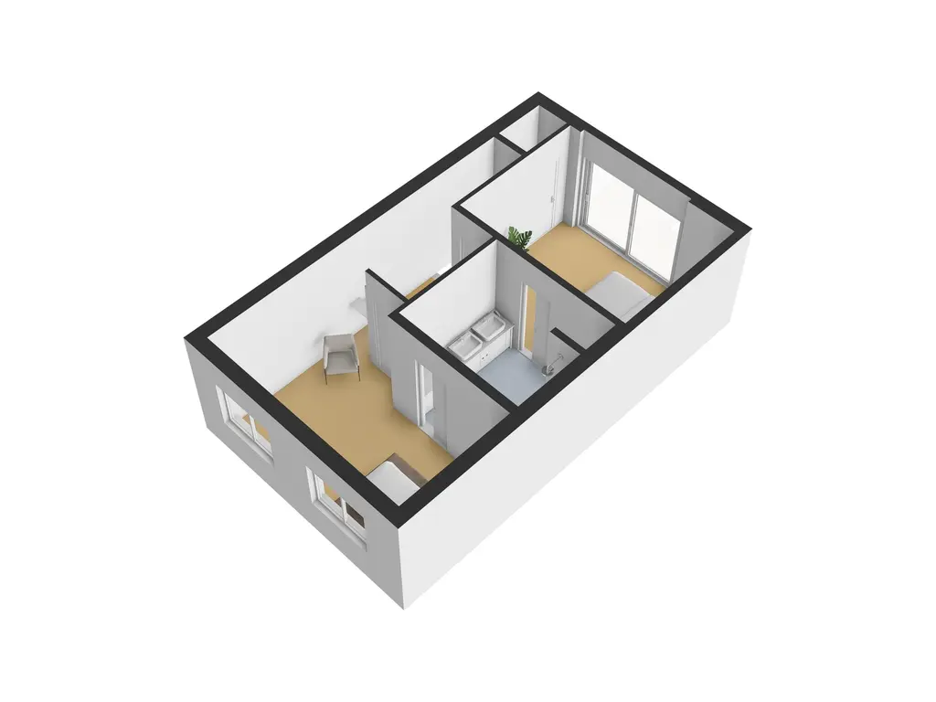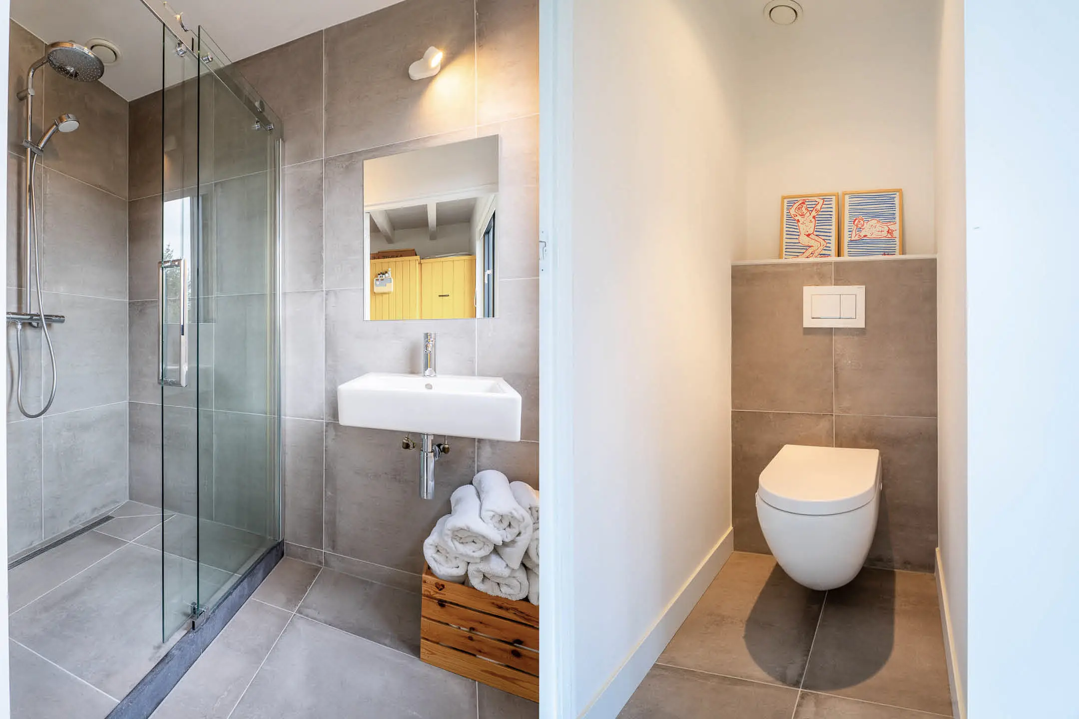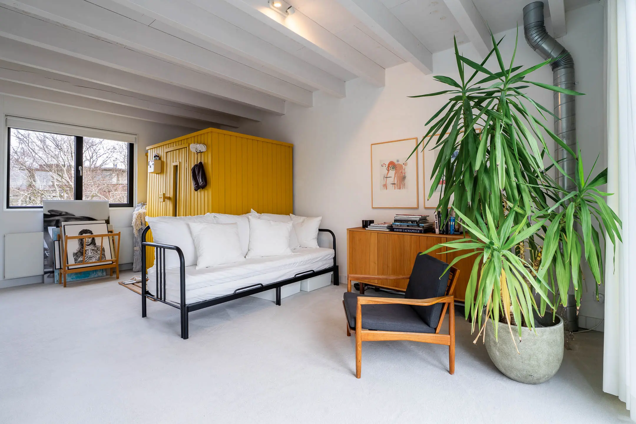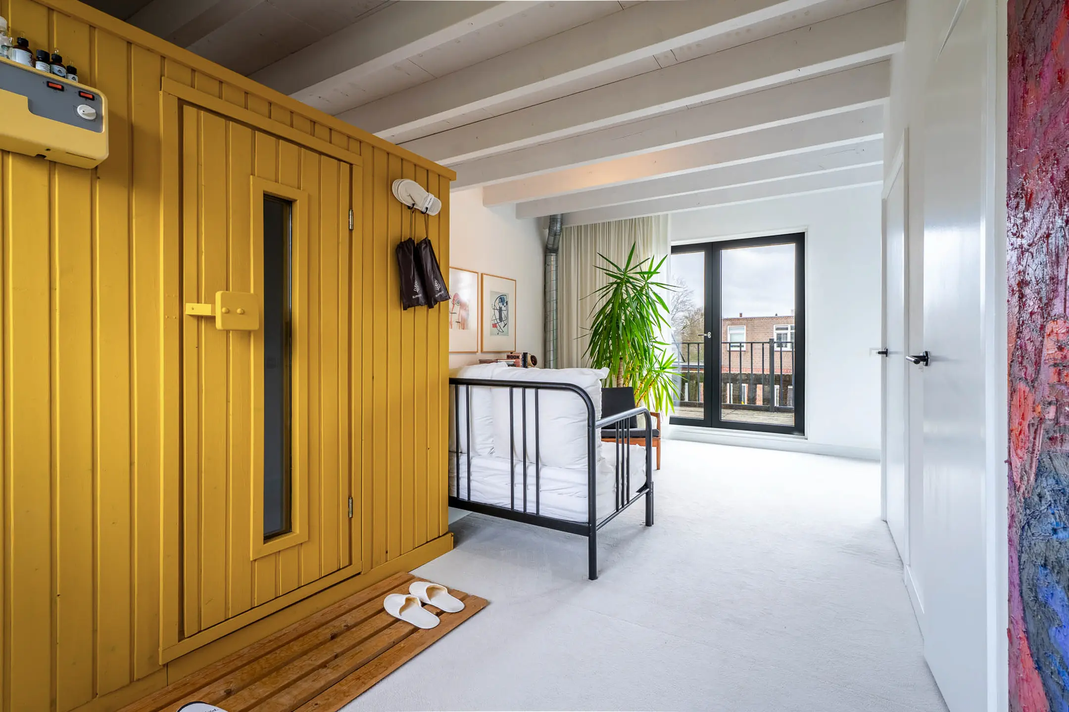 De opbouw biedt een prachtige ruime slaapkamer met veel lichtinval en daarnaast een tweede badkamer met douche en wastafel, ideaal voor gasten, een opgroeiend gezin of werken aan huis. Deze verdieping is afgewerkt met tapijt en stucwerk. Verder is hier een derde zwevend toilet en de technische ruimte met de aansluiting voor de wasapparatuur. Aan de voorzijde is een dakterras voor met een fraai uitzicht op de wijk Zandberg.