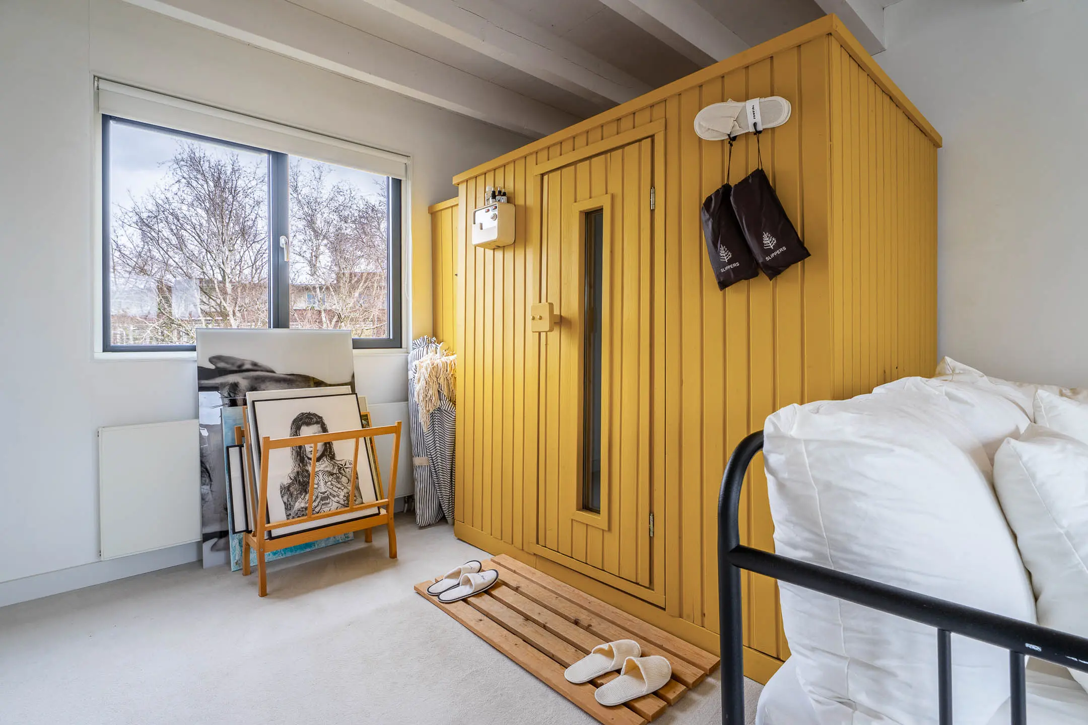 Op deze verdieping zijn twee comfortabele slaapkamers gelegen. De moderne badkamer is voorzien van een regendouche, zwevend toilet en dubbele wastafel met meubelmaatwerk. Door het marmeren tegelwerk heeft de badkamer een frisse, tijdloze uitstraling. De vloerverwarming biedt extra comfort in de badkamer. De slaapkamers zijn afgewerkt met tapijt en stucwerk. Vanuit de master bedroom aan de achterzijde is er via een schuifpui toegang tot het dakterras. De slaapkamer aan de voorzijde is momenteel in gebruik als kleedkamer.