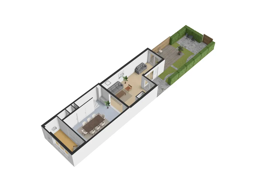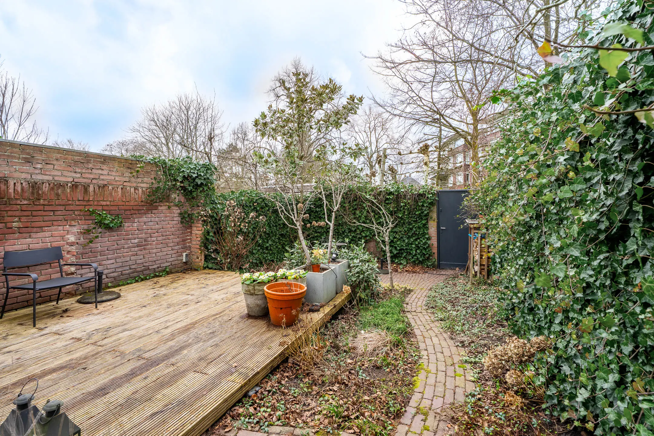 De fraai aangelegde tuin is een heerlijke plek om te genieten van de zon. Vanaf de ochtend tot in de avond is er een zonnig plekje te vinden in de tuin. Dankzij de slimme inrichting en beplanting biedt de tuin veel privacy en een prettige, rustige sfeer met veel groen. Via een achterom en de afgesloten brandgang is het Wagemakerspark bereikbaar.