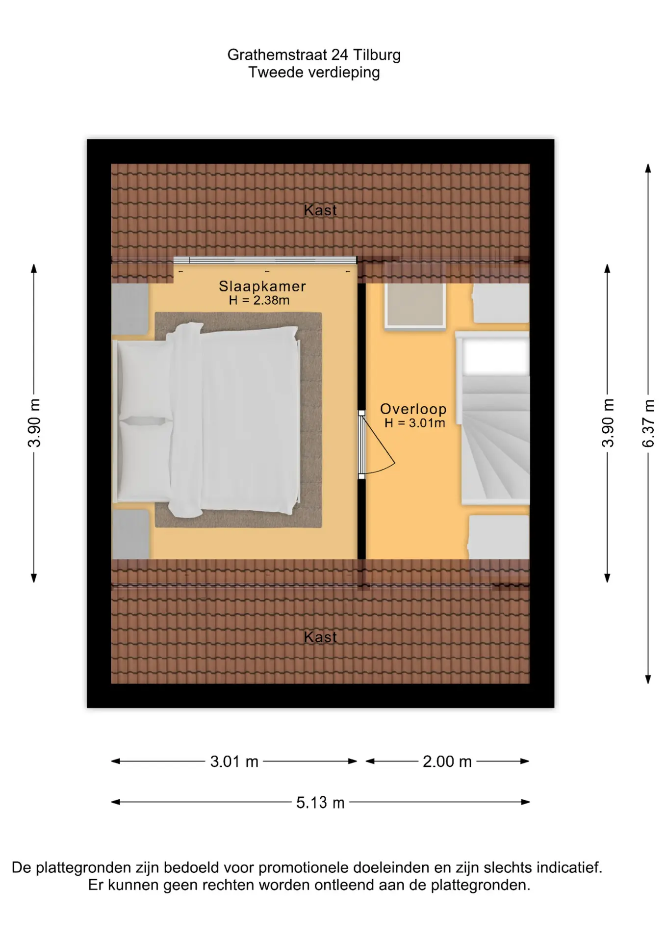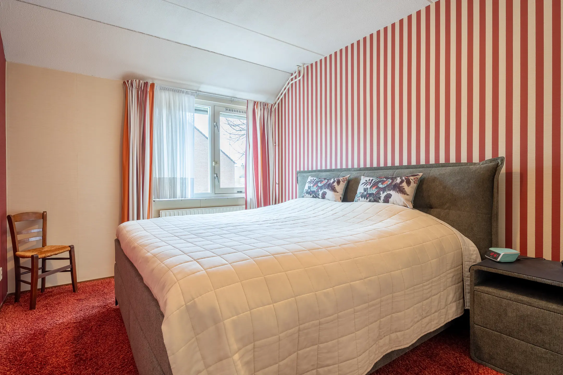 Op de tweede verdieping bevinden zich de overloop en een slaapkamer. Op de overloop, met dakraam, is de aansluiting ten behoeve van wasapparatuur en de opstelling van de mechanische ventilatie.