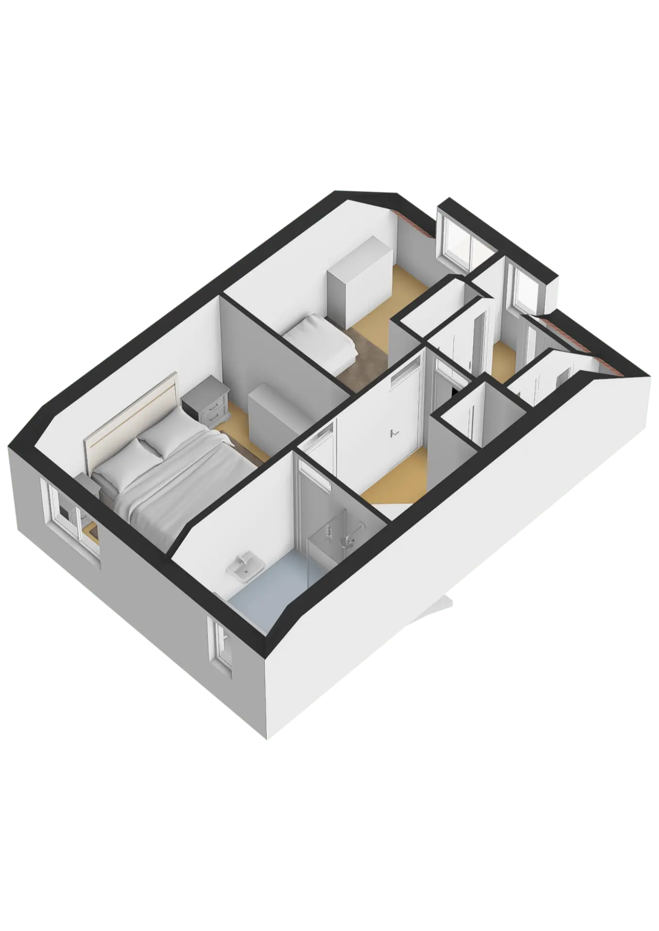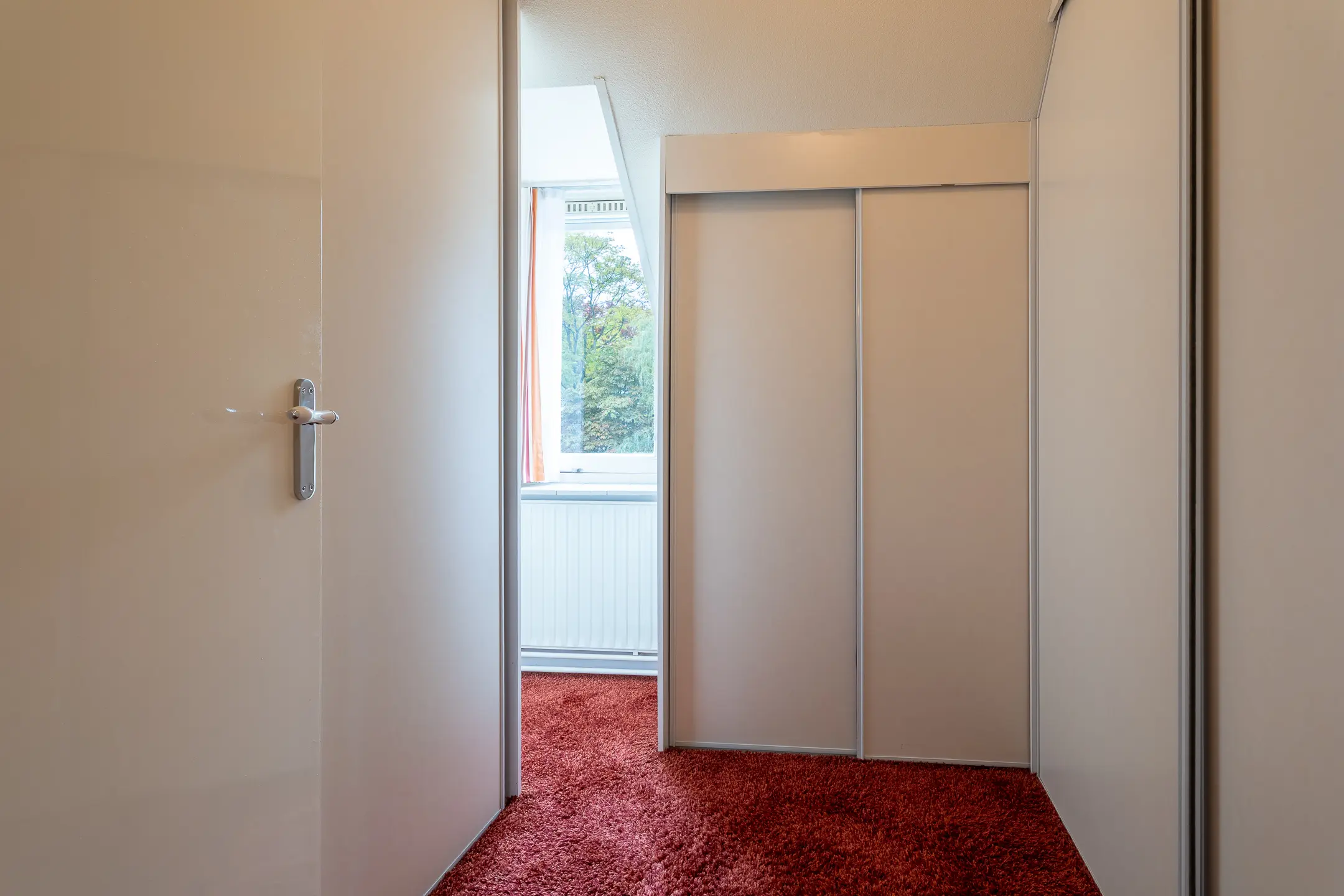 Slaapkamer III (2m49 x 2m07) ook gelegen aan de achterzijde met dakkapel. Deze kamer is voorzien van vaste kasten en nu dus in gebruik als kleedkamer.