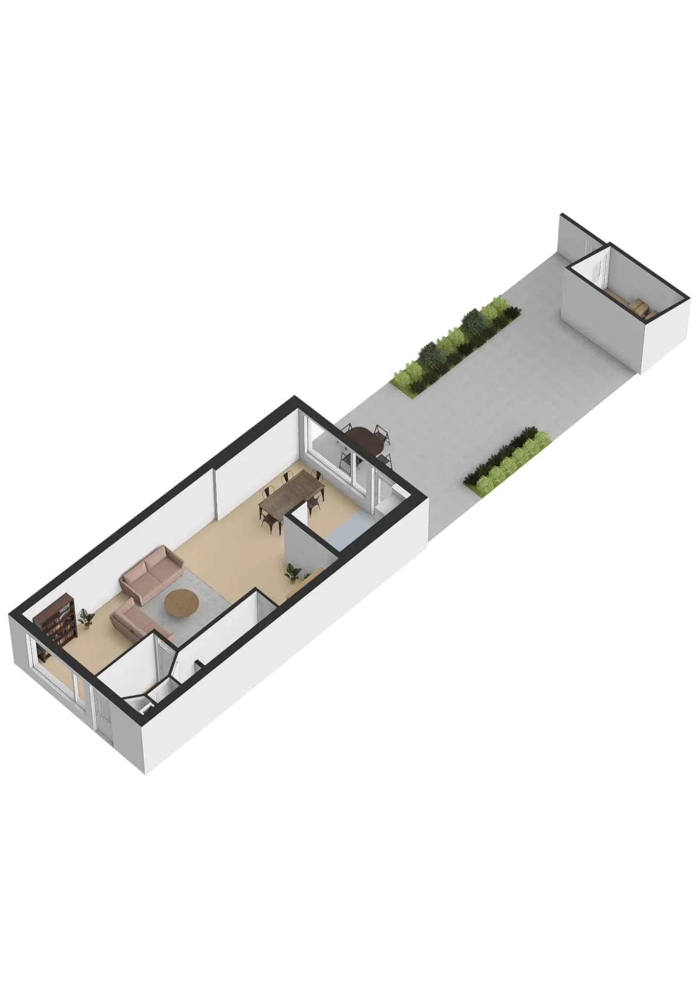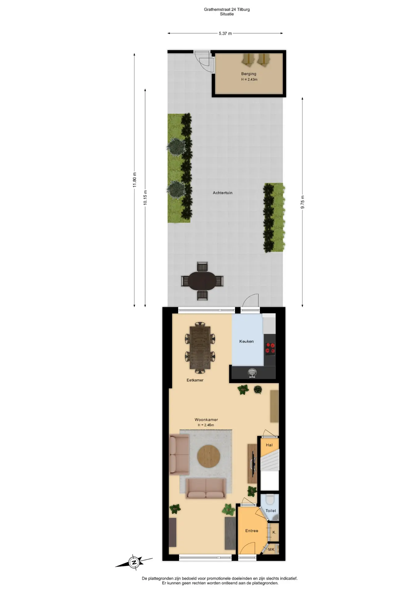 - Diepe achtertuin met aan de achterzijde vrij uitzicht op het groen;