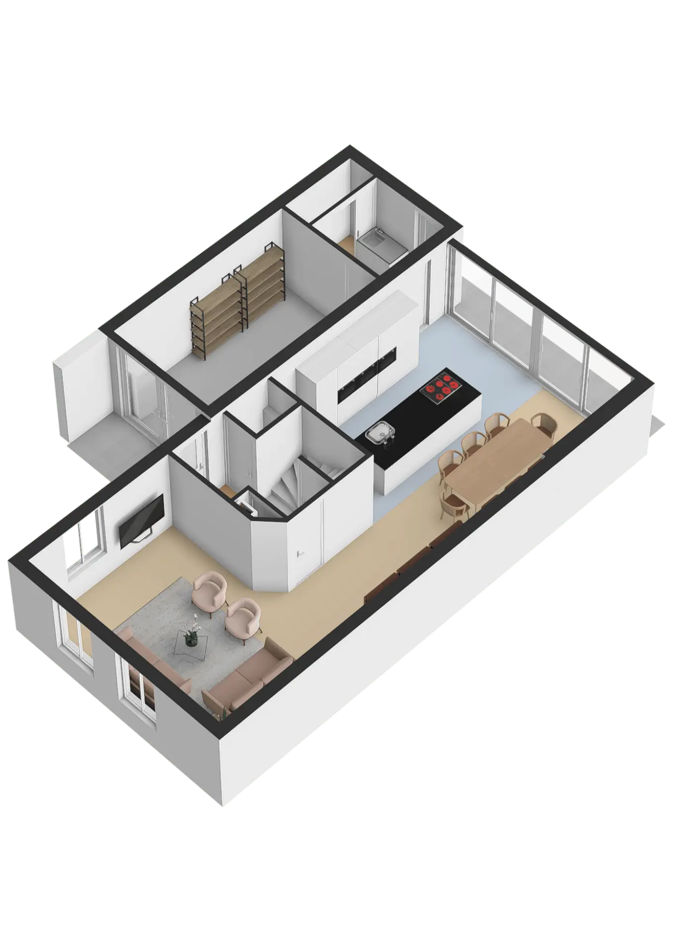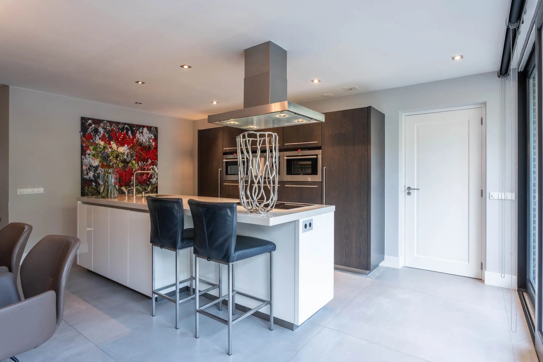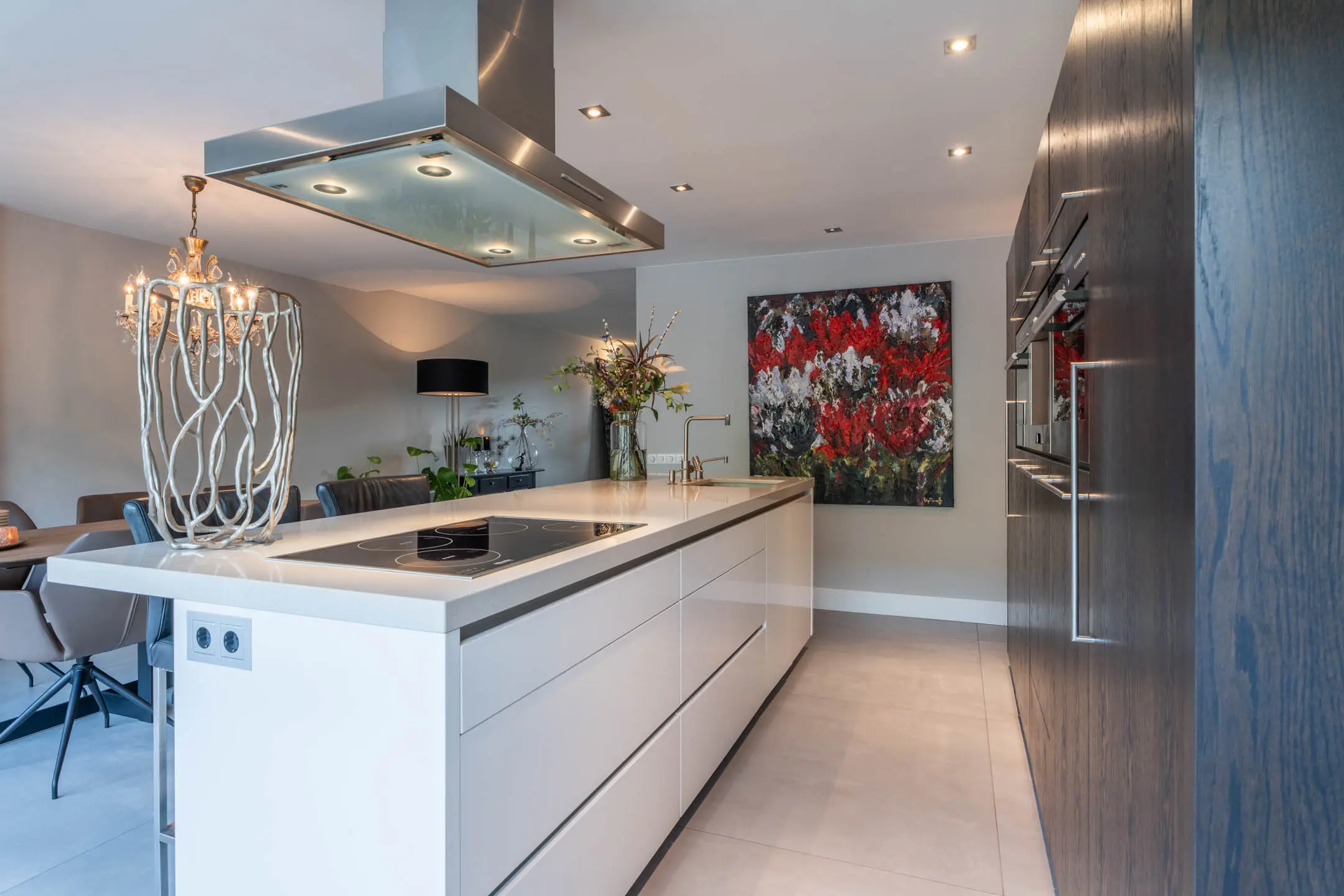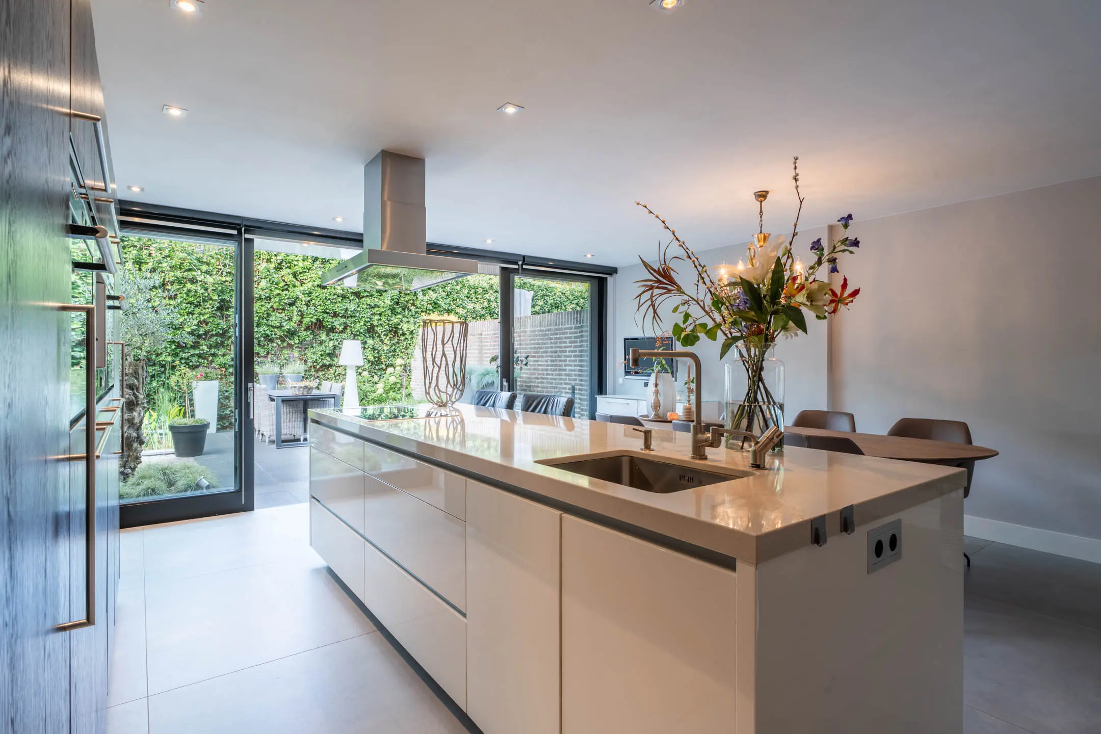 De ruime en lichte woonkamer is aan de achterzijde uitgebouwd (2008), waardoor een echte living (woonkamer en keuken) is ontstaan van ruim 57m²! De woonkeuken met zijn maatwerkkasten vind je aan de achterkant. De op maat gemaakte tv-zitkamer is aan de voorzijde ingedeeld. In 2024 is de woning vernieuwd en gemoderniseerd met o.a. vloertegels van 120x120 (inclusief vloerverwarming) een stalen taatsdeur en prachtig glad gestukadoorde wand- en plafondafwerkingen. Ook zijn de wanden, deuren en kozijnen geschilderd, dit zijn slechts enkele kenmerken. De grote schuifpui aan de achterzijde betrekt de tuin en de keuken met elkaar. De keuken is compleet en aan het grote spoelkookeiland kun je heerlijk koken en sta je in contact met vrienden en familie te borrelen aan de eetkamertafel. Volwaardige keuken met veel kast- en bergruimte, als ook alle benodigde inbouwapparatuur; Quooker, inductie koken, koffiemachine, combi-magnetronoven, combi-stoomoven, vaatwasmachine en koelkast. Aansluitend aan de keuken is de bijkeuken en doorloop naar de garage. De bijkeuken heeft een grote kastenwand en een klein keukenblok met een (nieuwe) close in boiler. Zowel de bijkeuken als de (verwarmde) garage zijn voorzien van een tegelvloer.