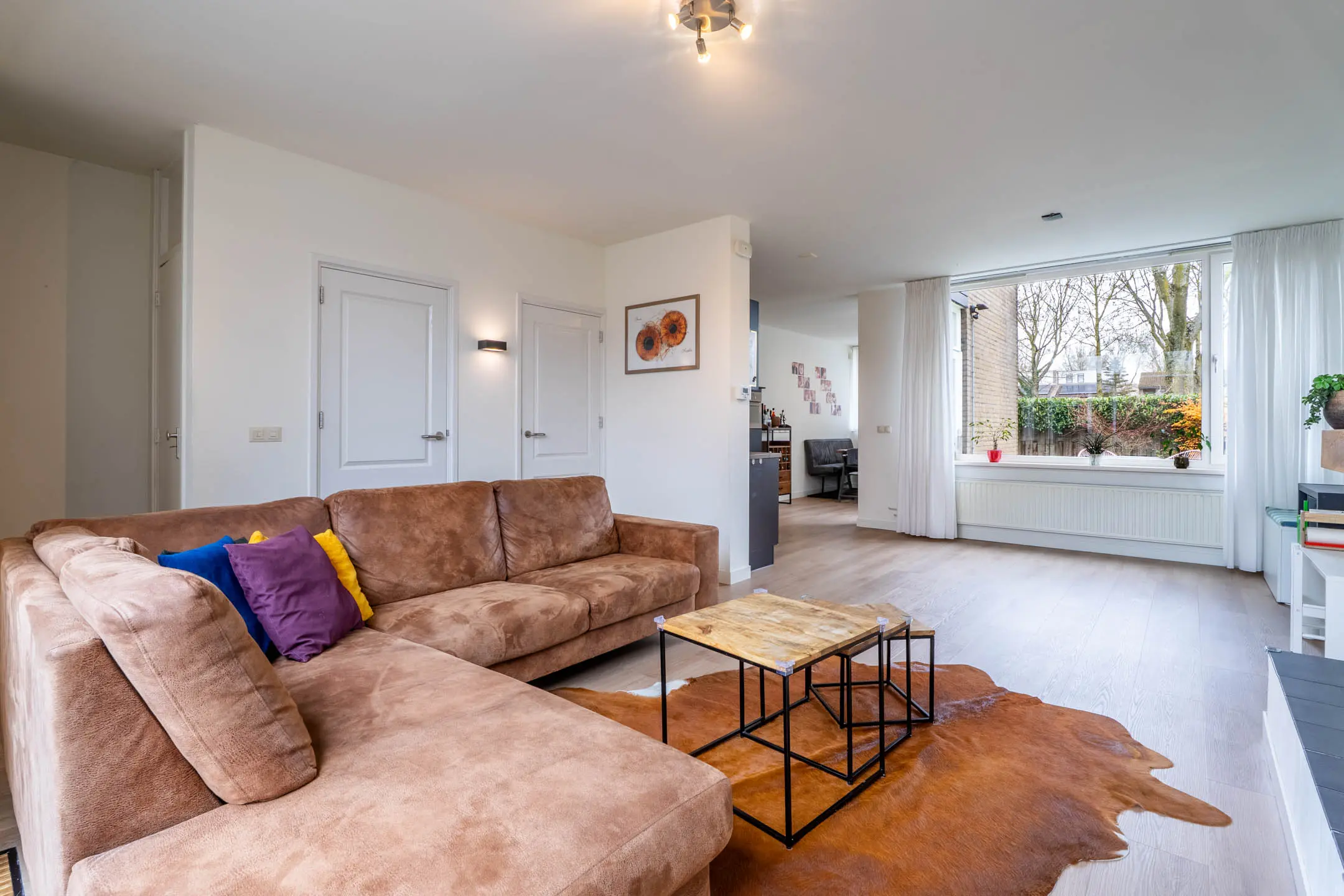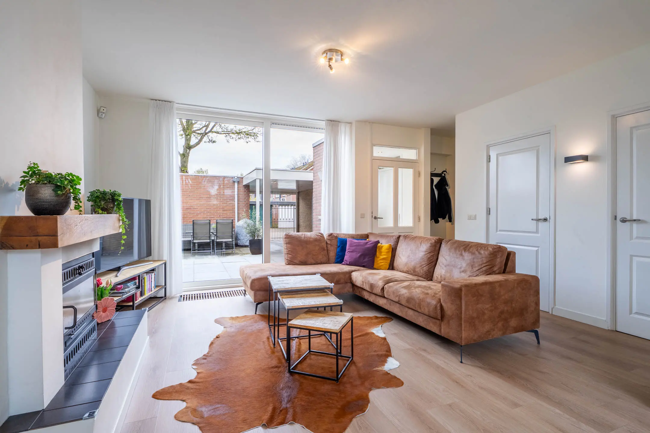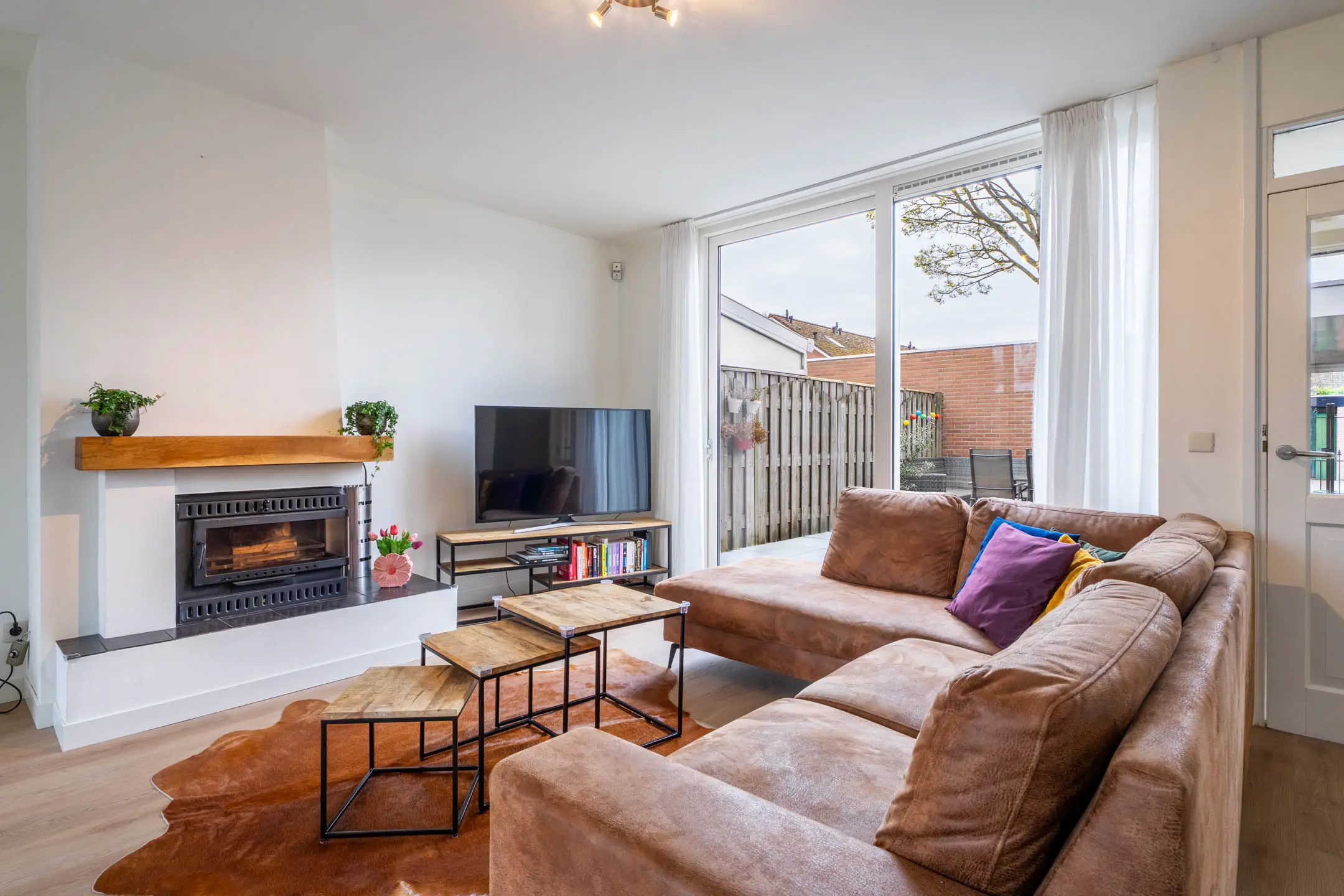 Via de entree komt u in de verzorgde hal met een volledig betegelde toiletruimte. De royale woonkamer verwelkomt u met veel lichtinval, een convectorput en een gezellige houtkachel die zorgt voor extra sfeer. Vanuit de woonkamer heeft u via de schuifpui direct toegang tot de zonnige voortuin.