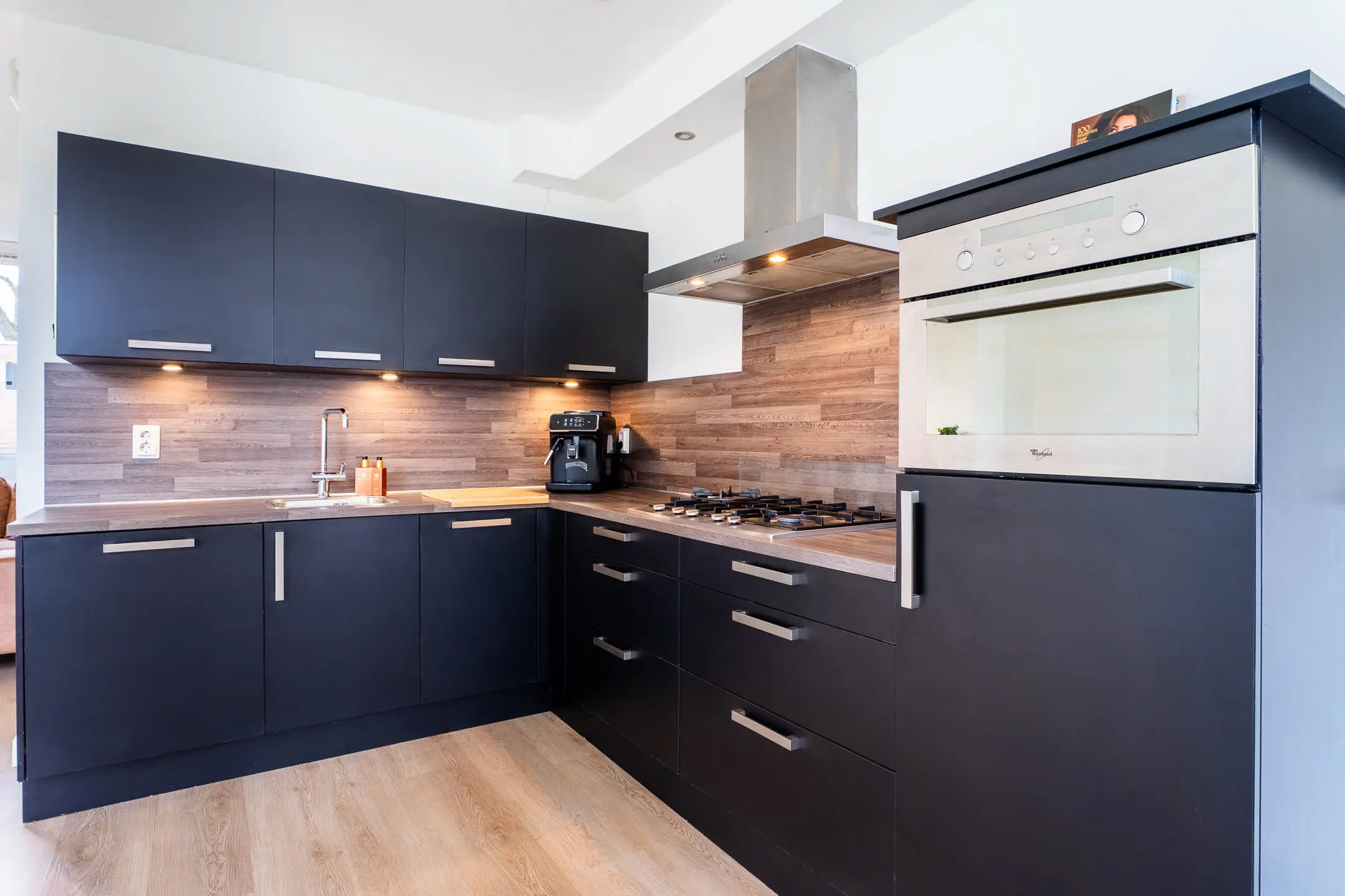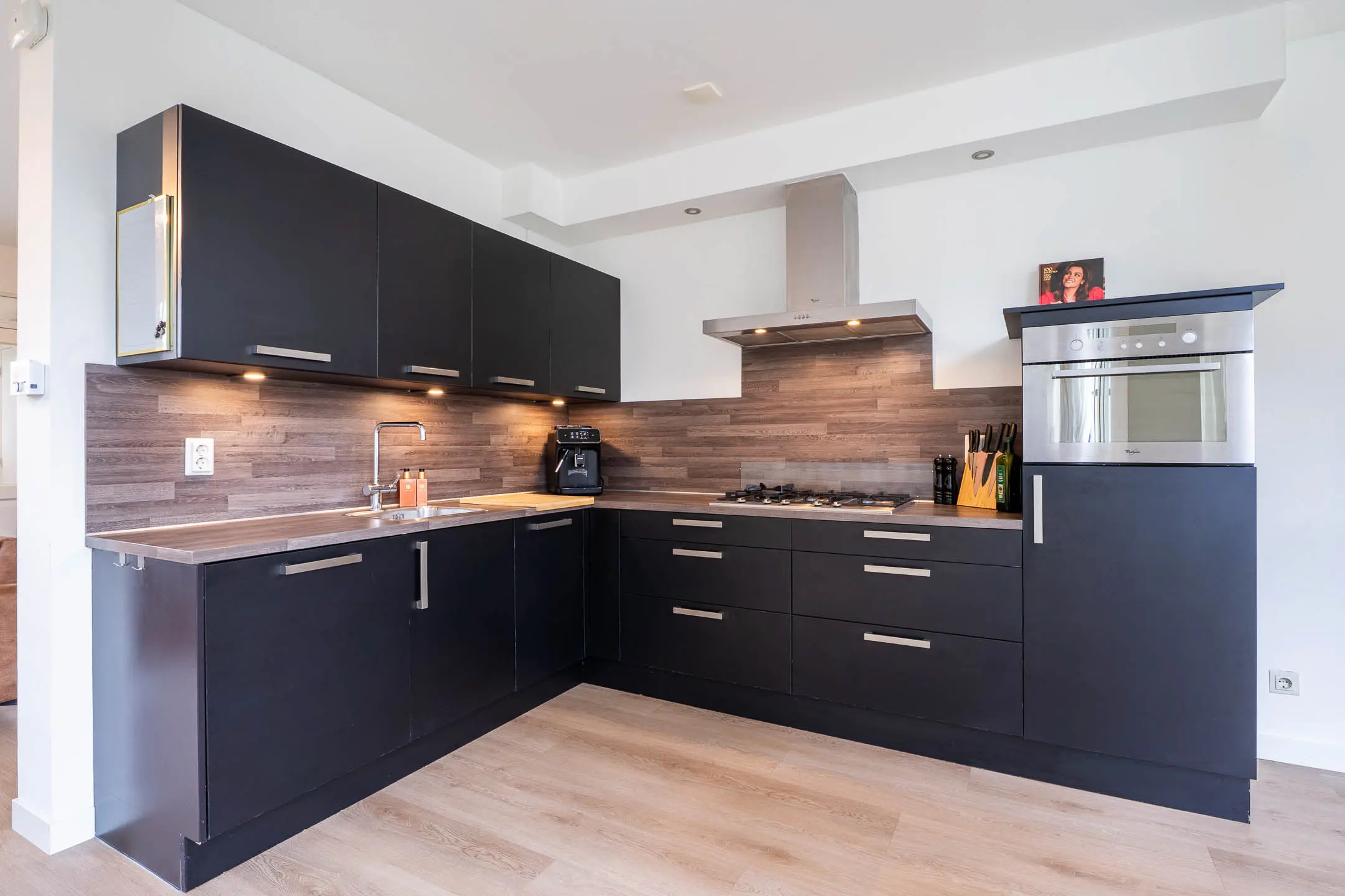 De open keuken (2017) is modern uitgevoerd in een praktische hoekopstelling en voorzien van diverse inbouwapparatuur, waaronder een 5-pits gaskookplaat, afzuigkap, vaatwasser, combimagnetron en koelkast. Aansluitend bevindt zich de eethoek met directe toegang tot de achtertuin.
