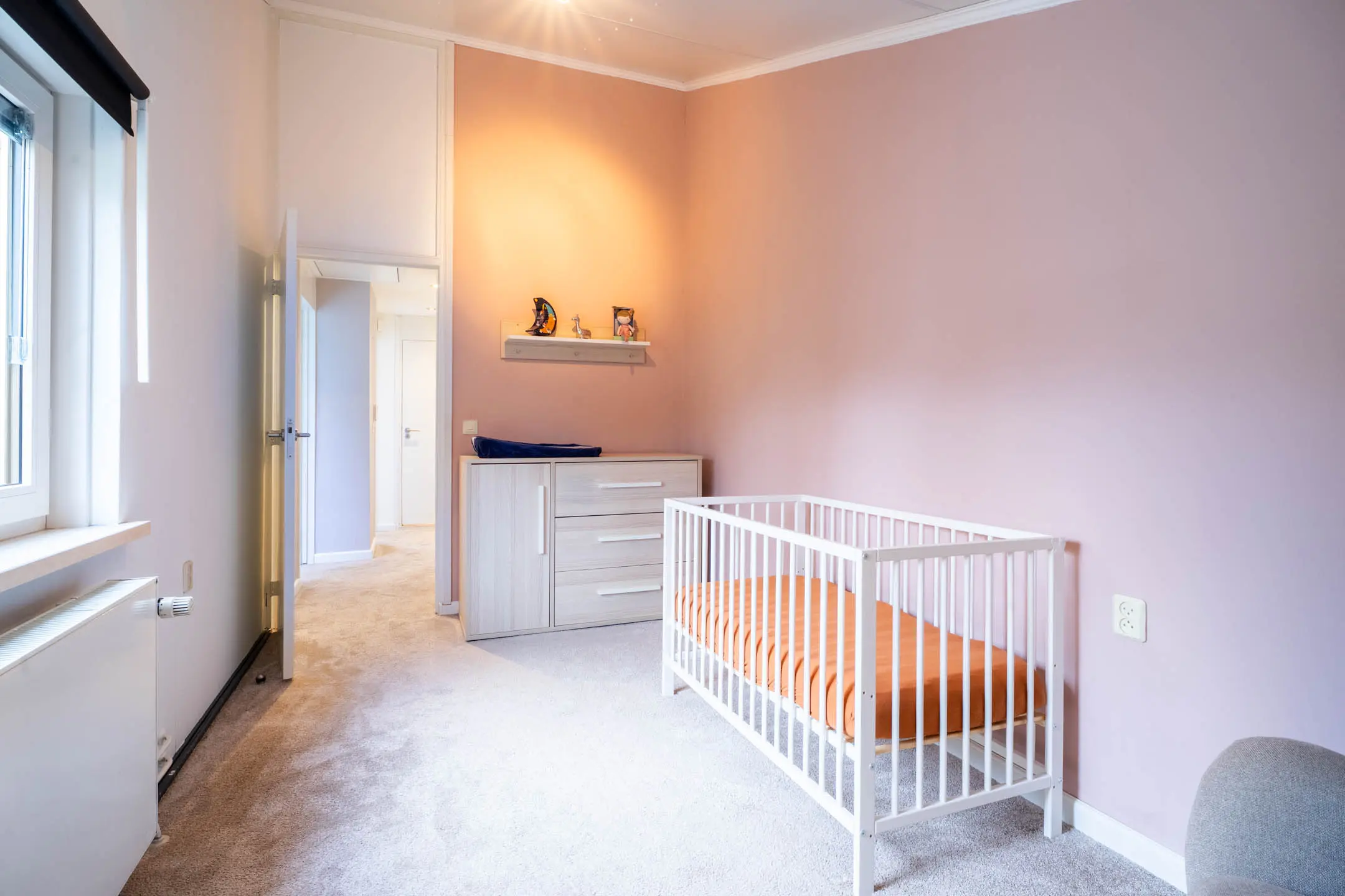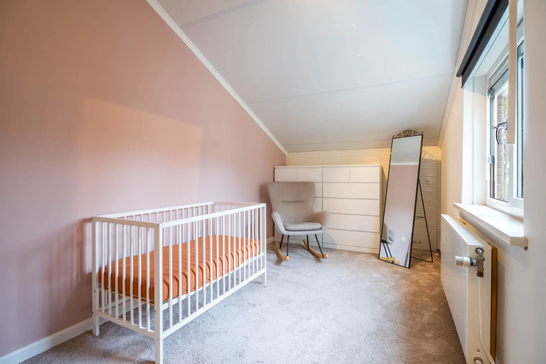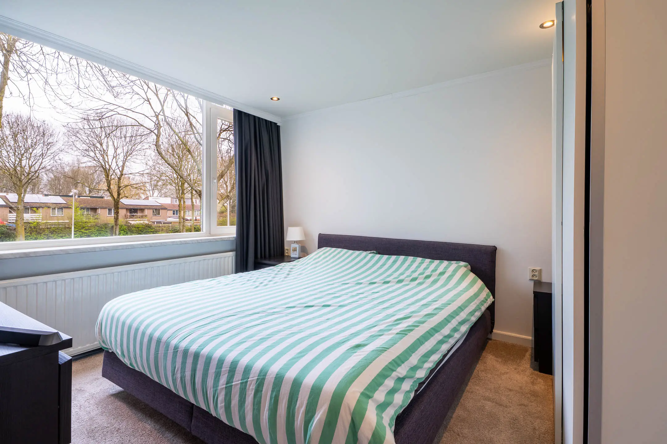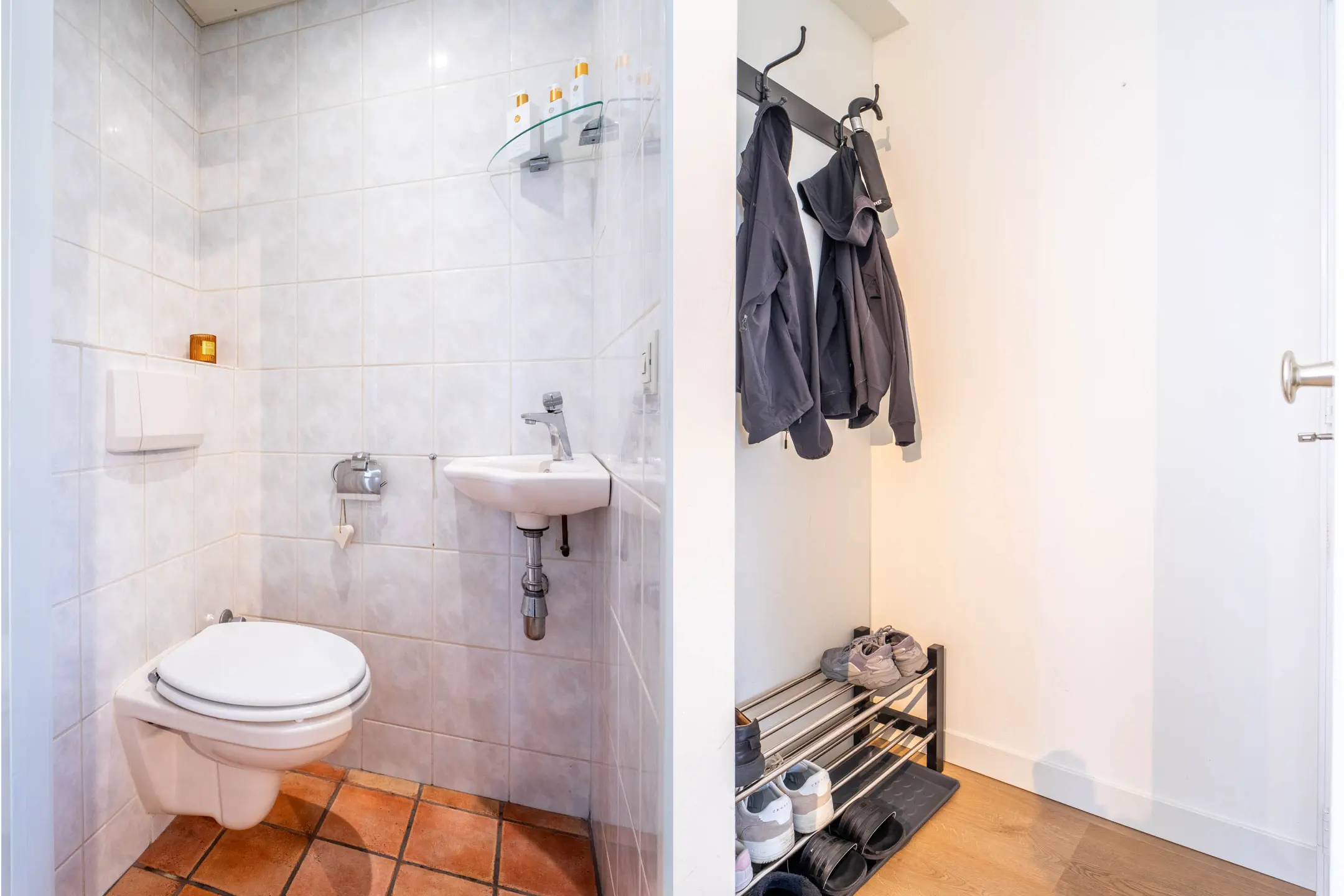De badkamer is volledig betegeld en comfortabel ingericht met een wastafelmeubel, een zwevend toilet, een douchecabine en een designradiator. Extra luxe is de aanwezige elektrische vloerverwarming. De slaapkamer aan de voorzijde beschikt bovendien over een elektrisch rolluik.
