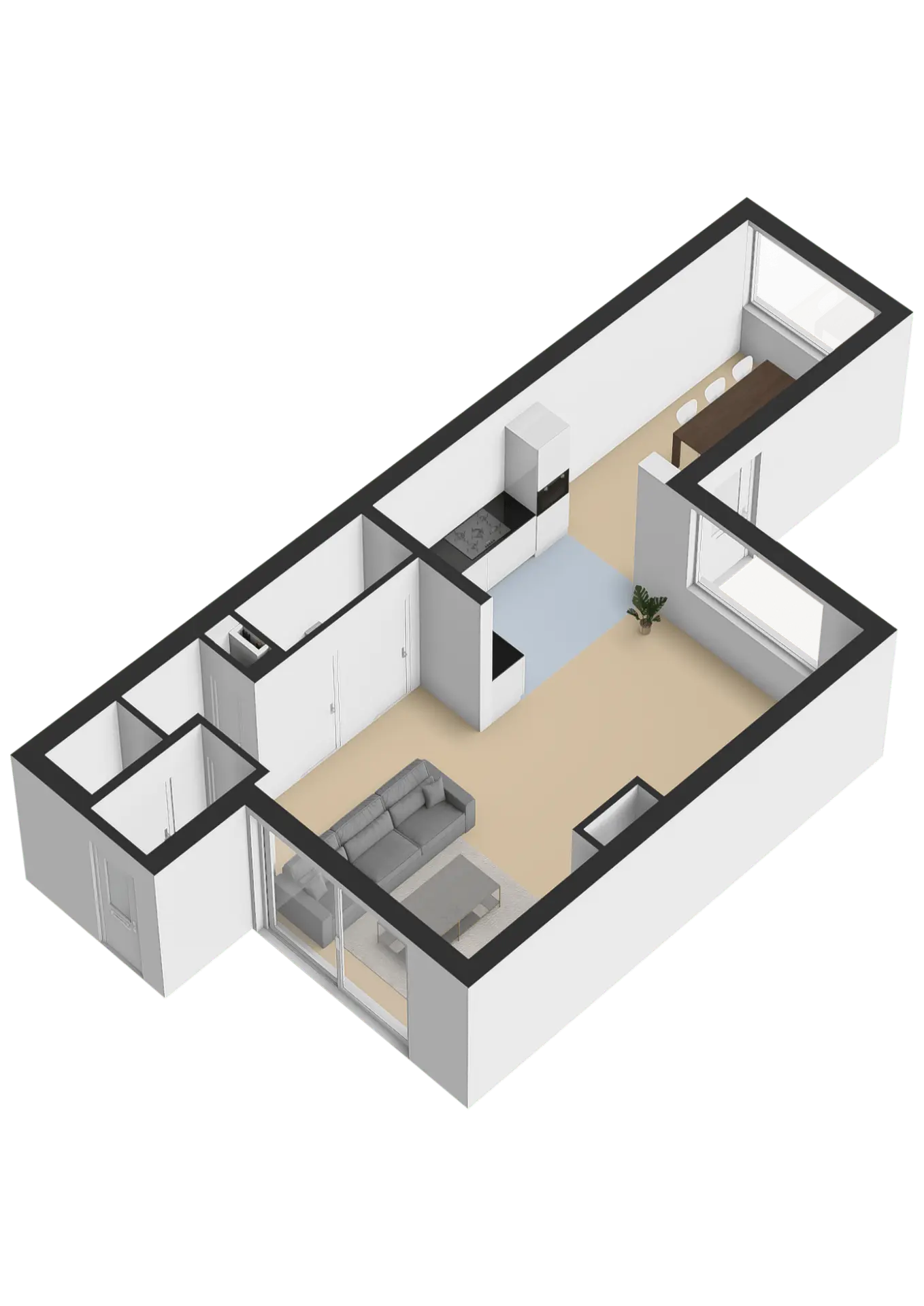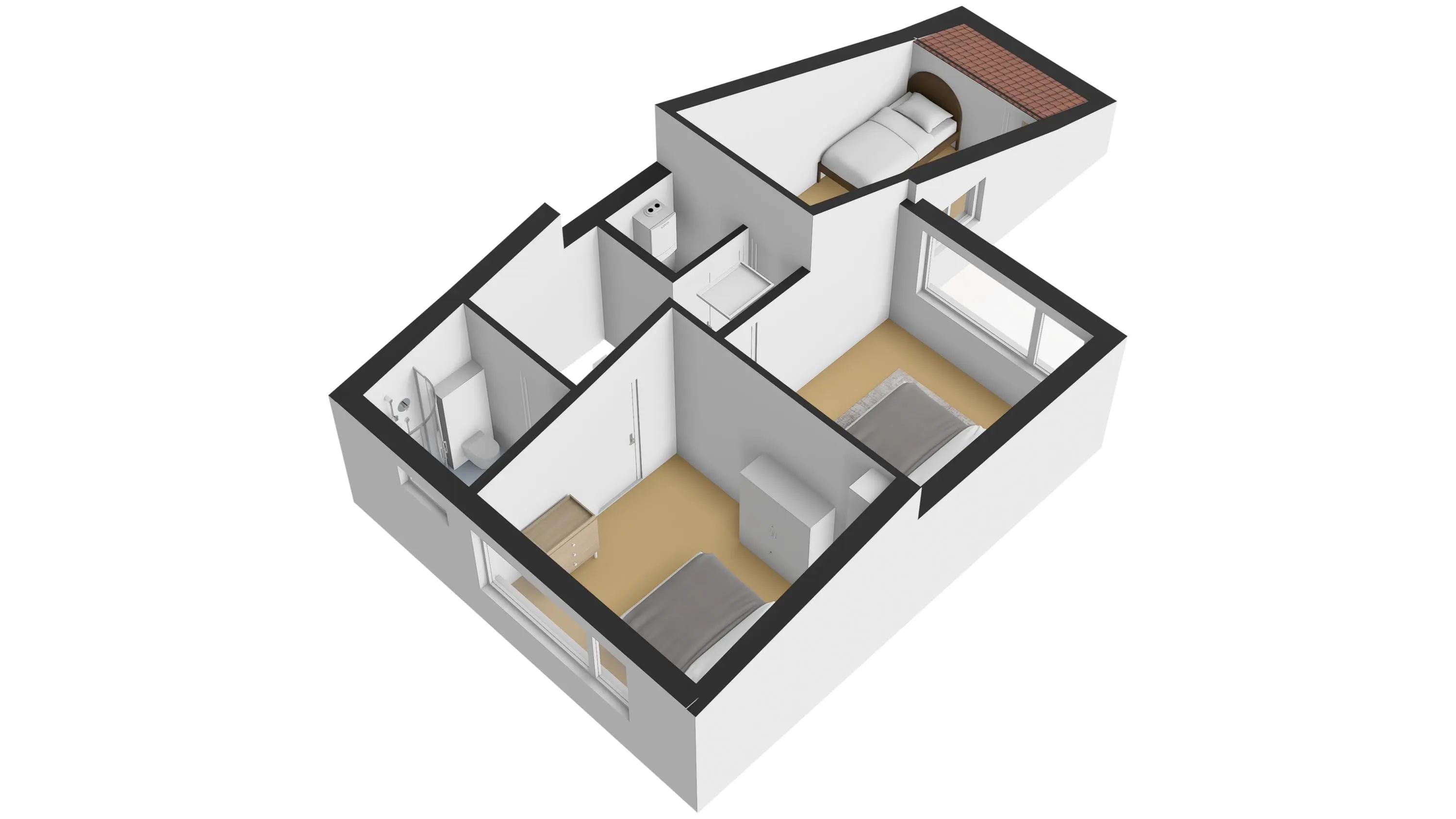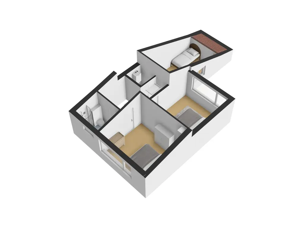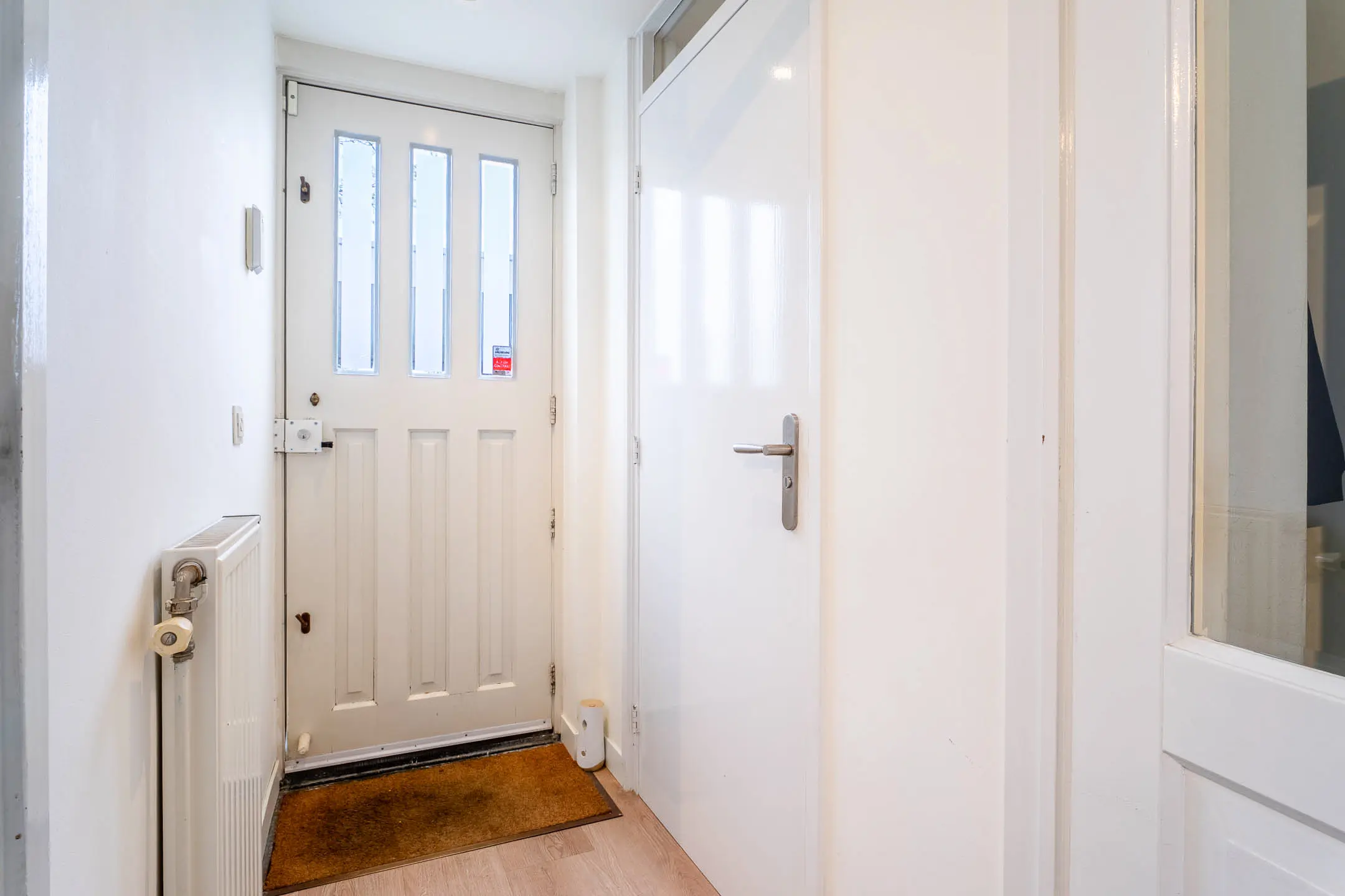 De badkamer is volledig betegeld en comfortabel ingericht met een wastafelmeubel, een zwevend toilet, een douchecabine en een designradiator. Extra luxe is de aanwezige elektrische vloerverwarming. De slaapkamer aan de voorzijde beschikt bovendien over een elektrisch rolluik.