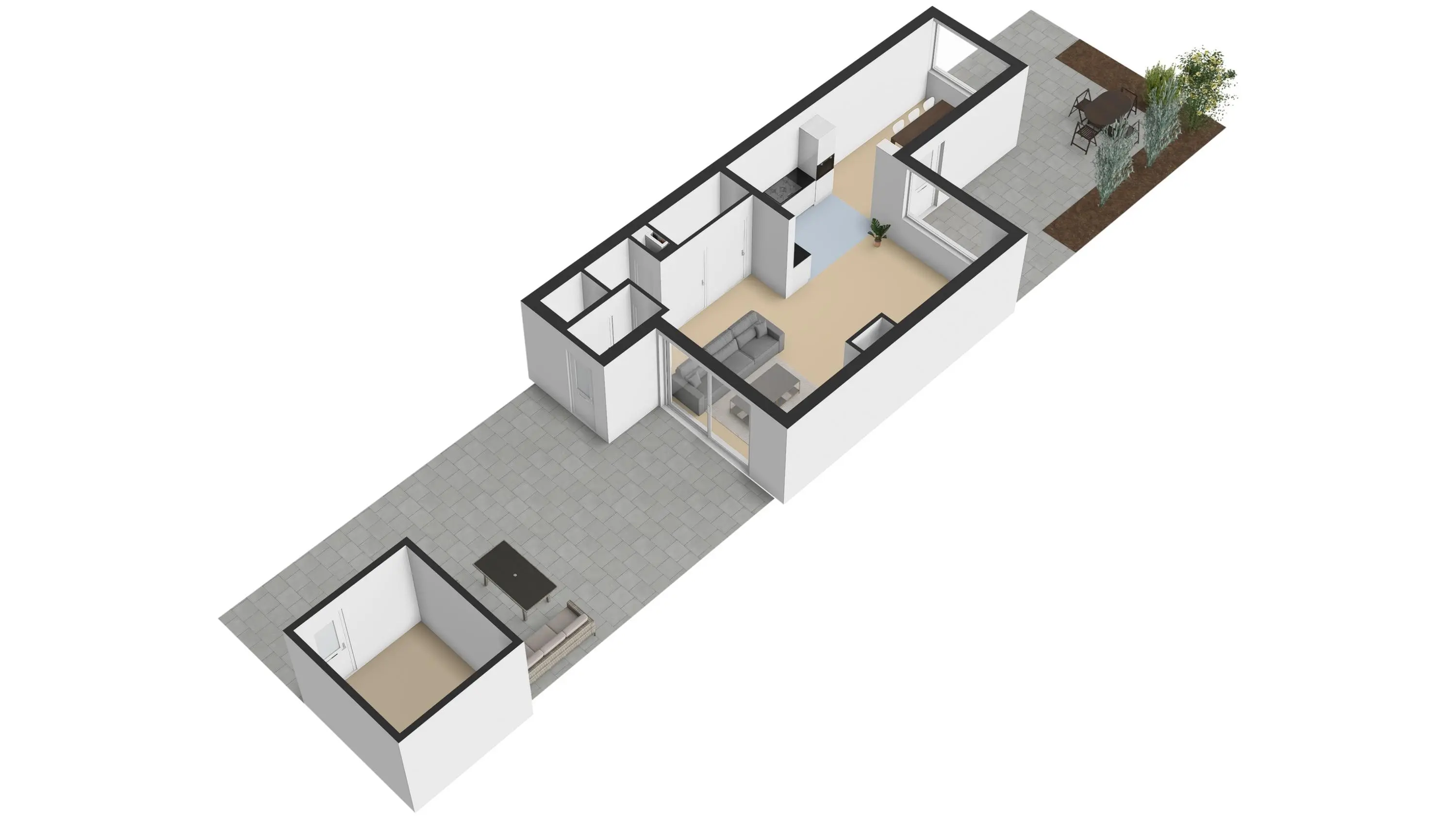 De achtertuin biedt veel privacy en is een heerlijke plek om in alle rust te ontspannen.