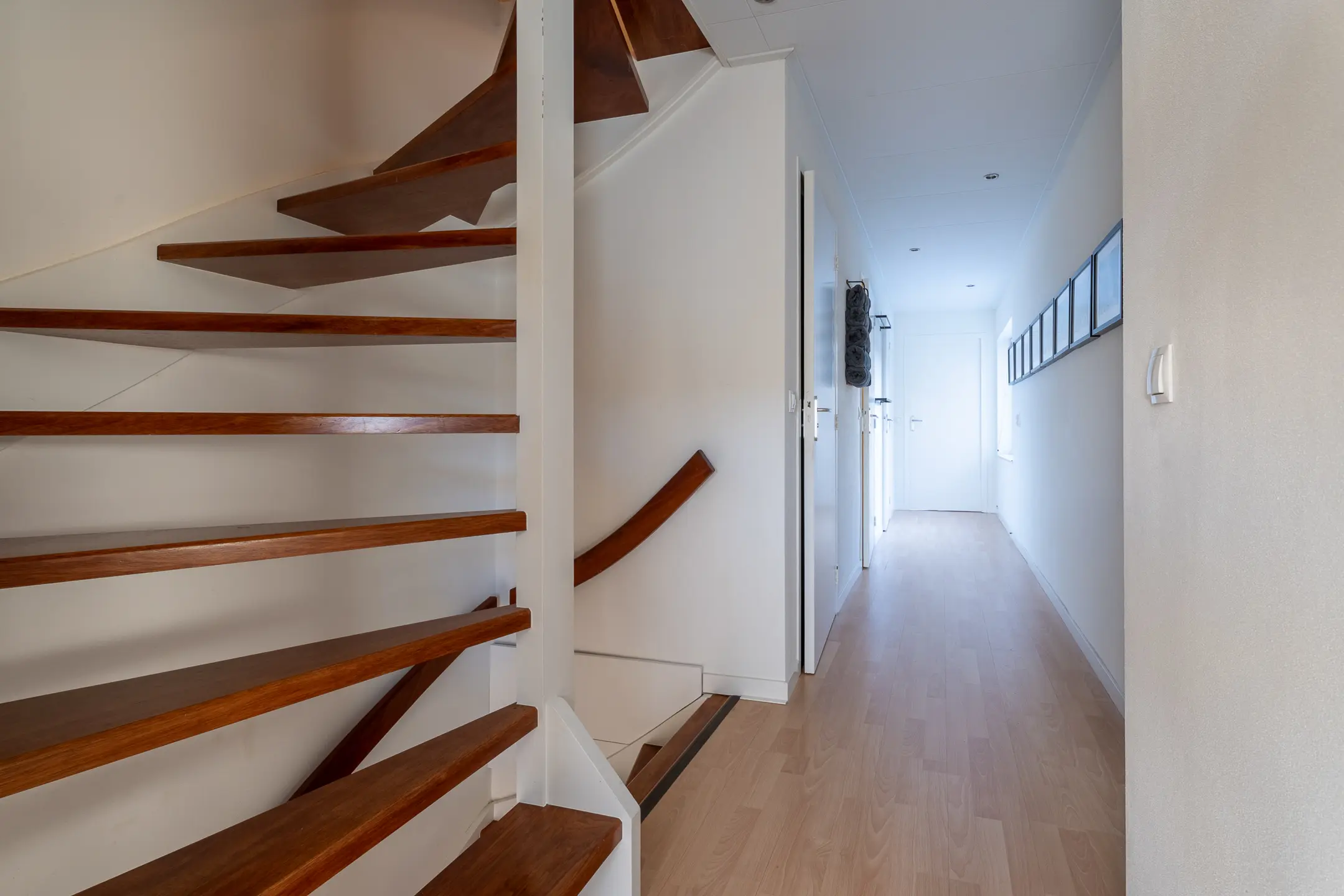 Via de hardhouten trap bereik je de overloop met toegang tot de drie ruime slaapkamers, het toilet en de tweede badkamer.