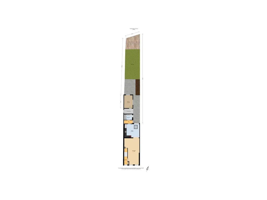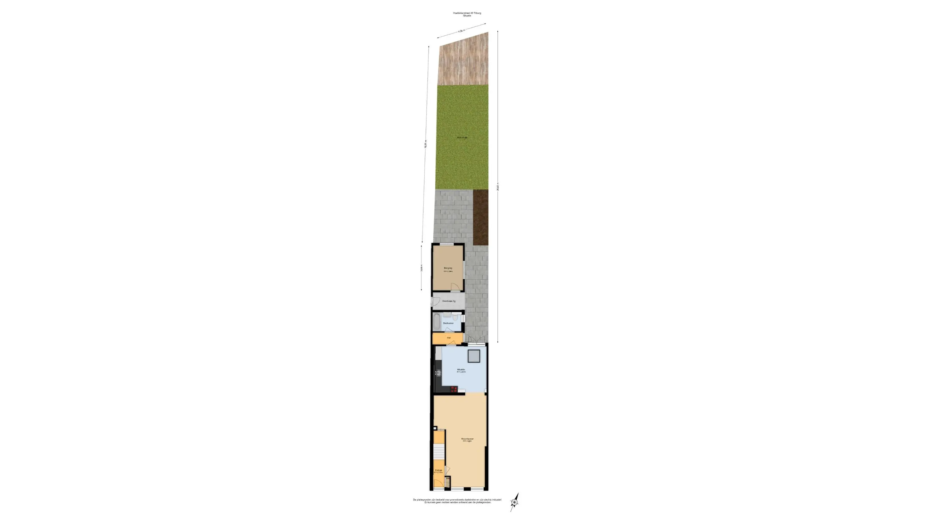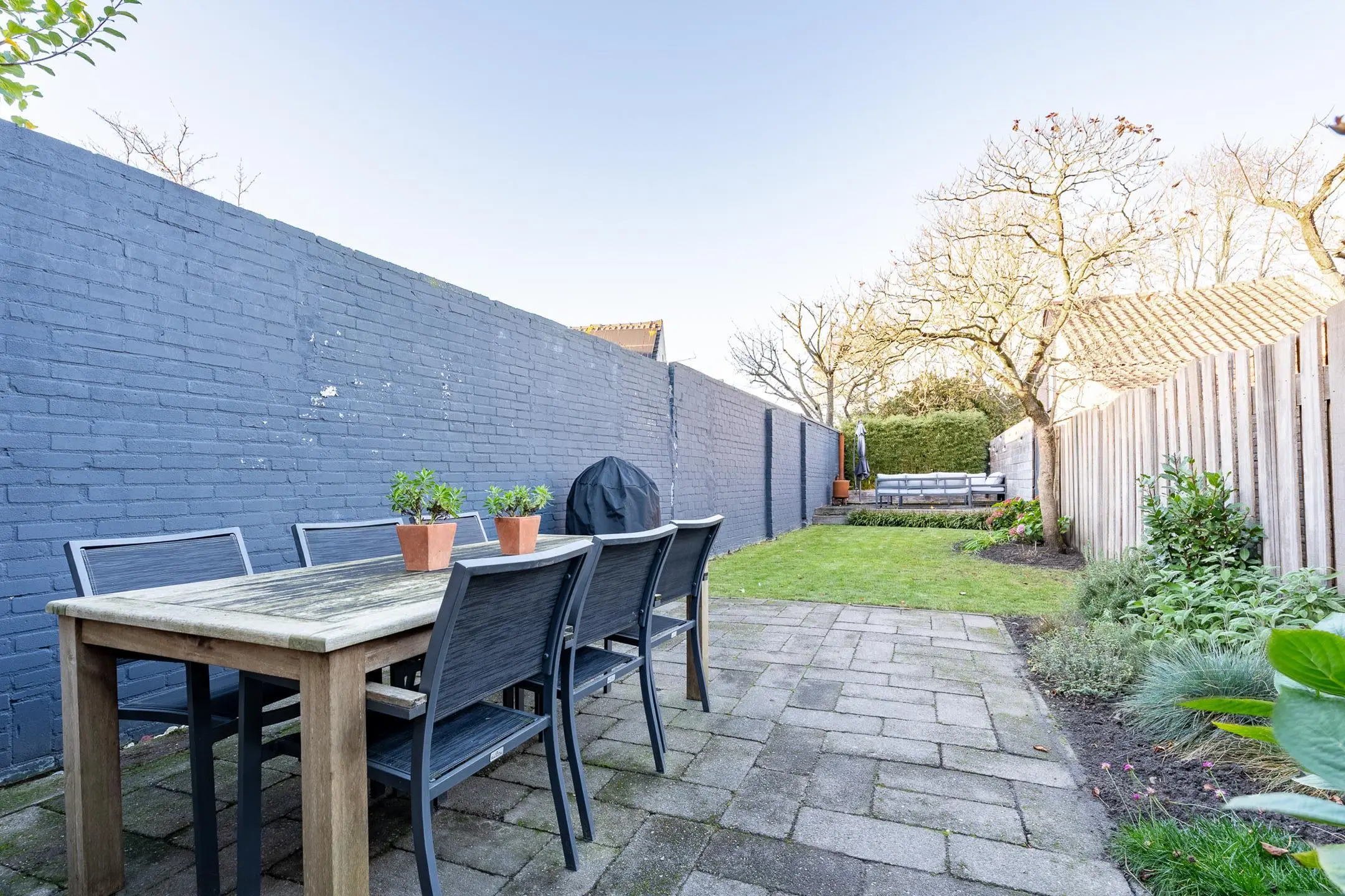 Wat een grote tuin: ruim 26 meter diep, sfeervol en gezellig, met beplanting, sierbestrating en twee terrassen. Door zijn diepte is de tuin vrijwel altijd zonnig. Achter de woning bevindt zich een overkapping en een ruime berging met elektra. De achterom loopt via de naastgelegen poort, die af en toe ook door de buurman van nr. 51 wordt gebruikt als de ondergelegen winkel gesloten is.