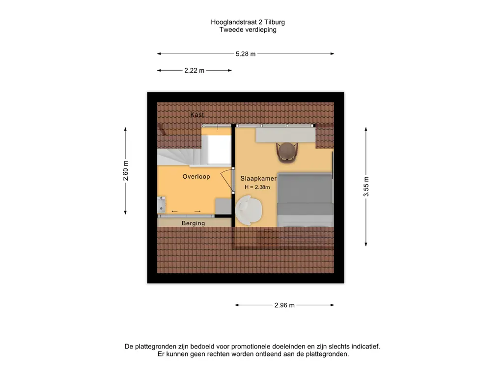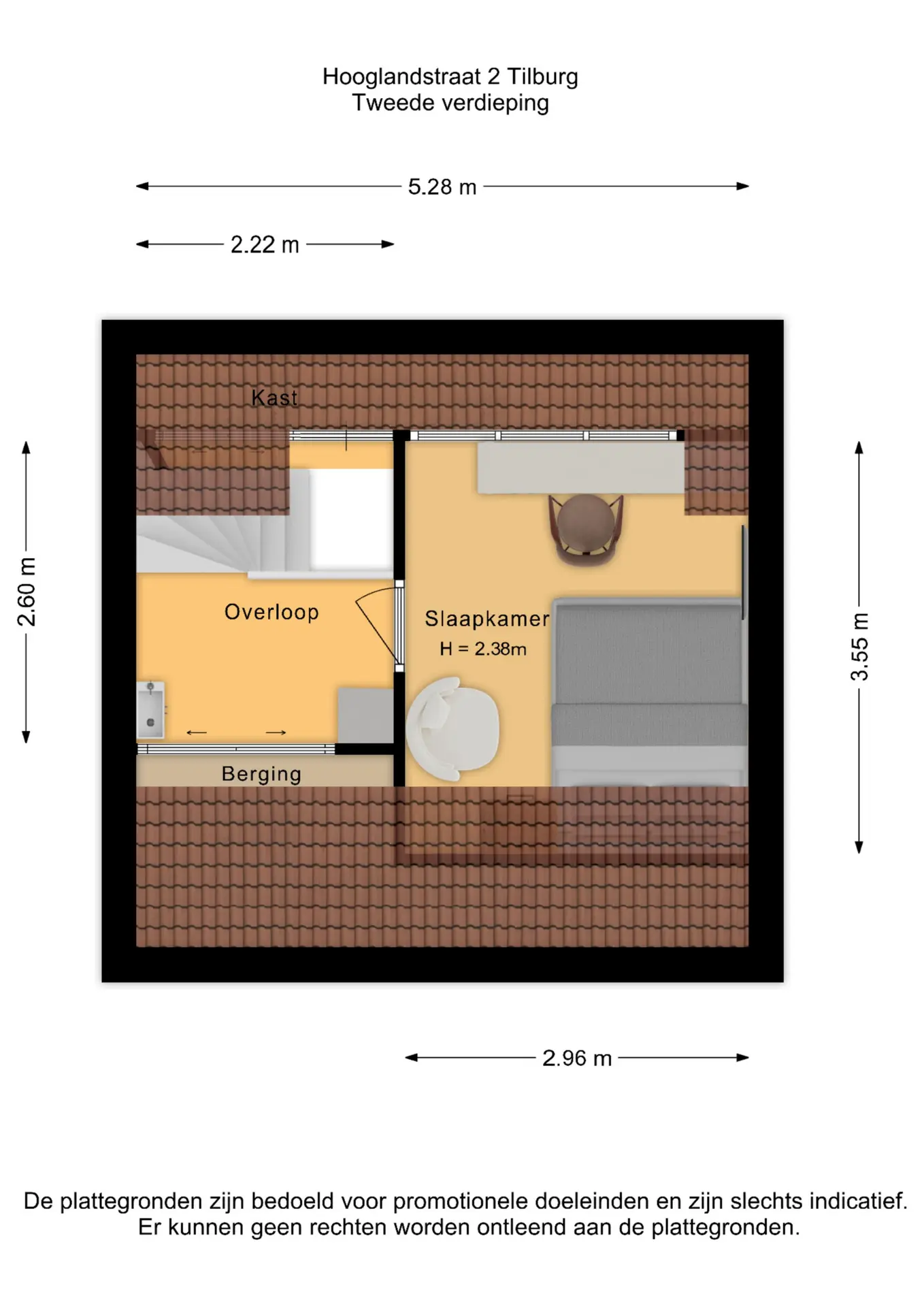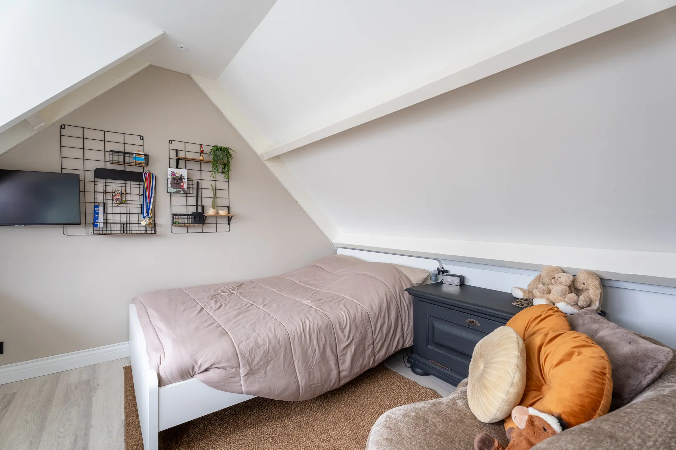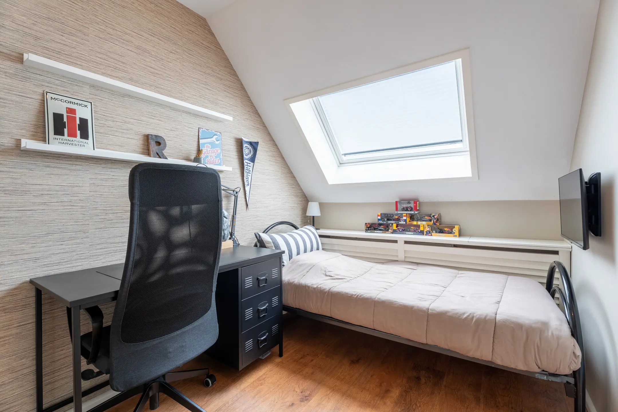 Slaapkamer IV (3m55 x 2m96) met dakkapel en bergruimte.