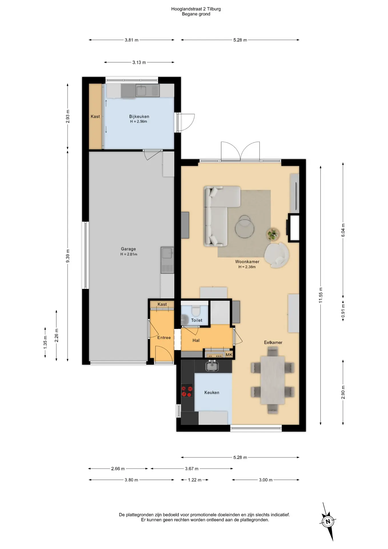 - Extra grote garage, inpandig te bereiken.
