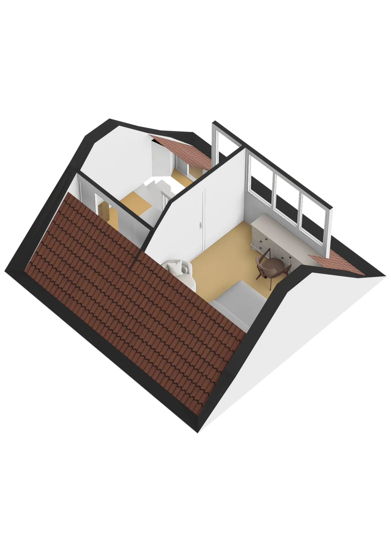 - Kunststof dakkapel met geïntegreerd rolluik.