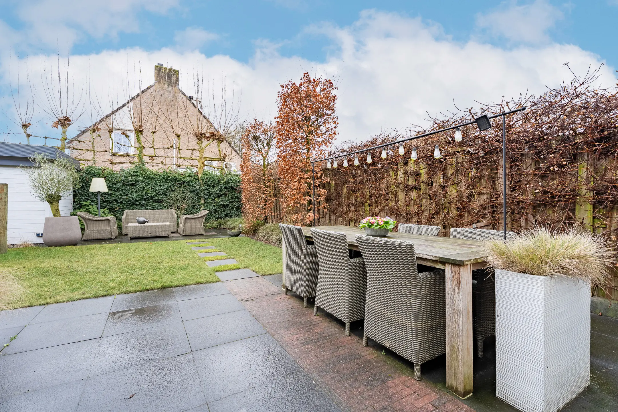 - De achterpui begane grond en het zijraam eerste verdieping zijn ook voorzien van een rolluik.