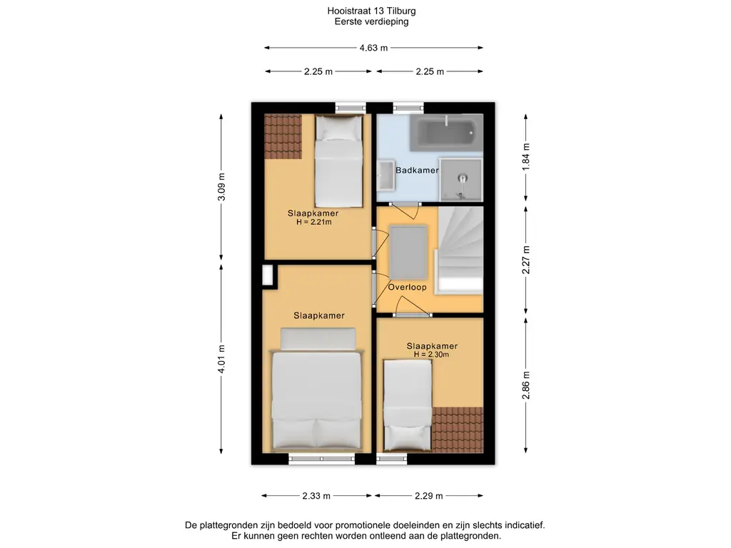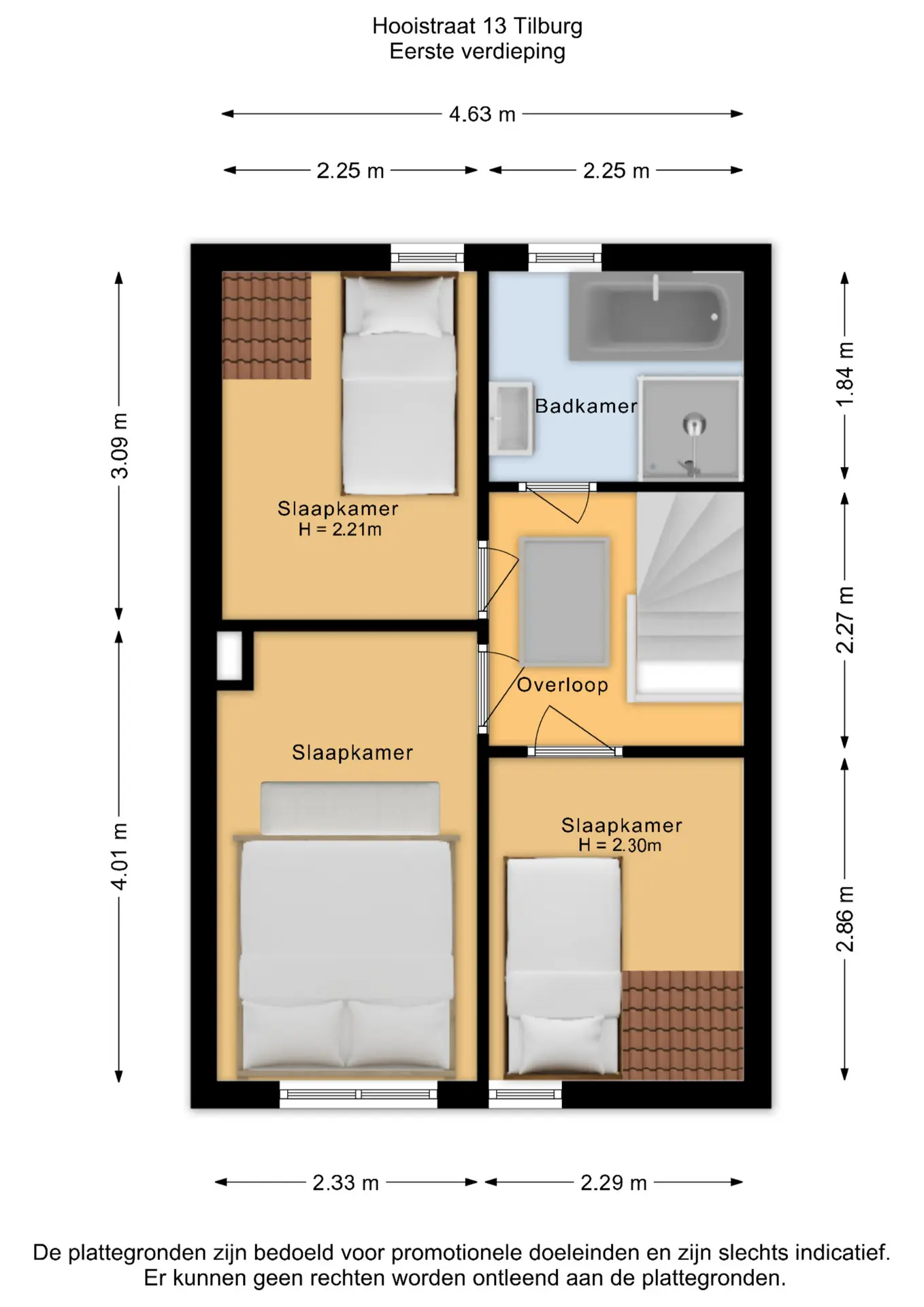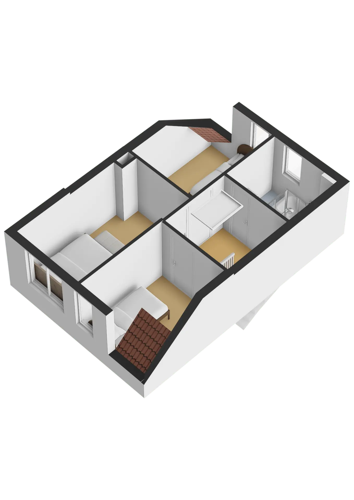 • Slaapkamer II: eveneens aan de voorzijde met dakkapel