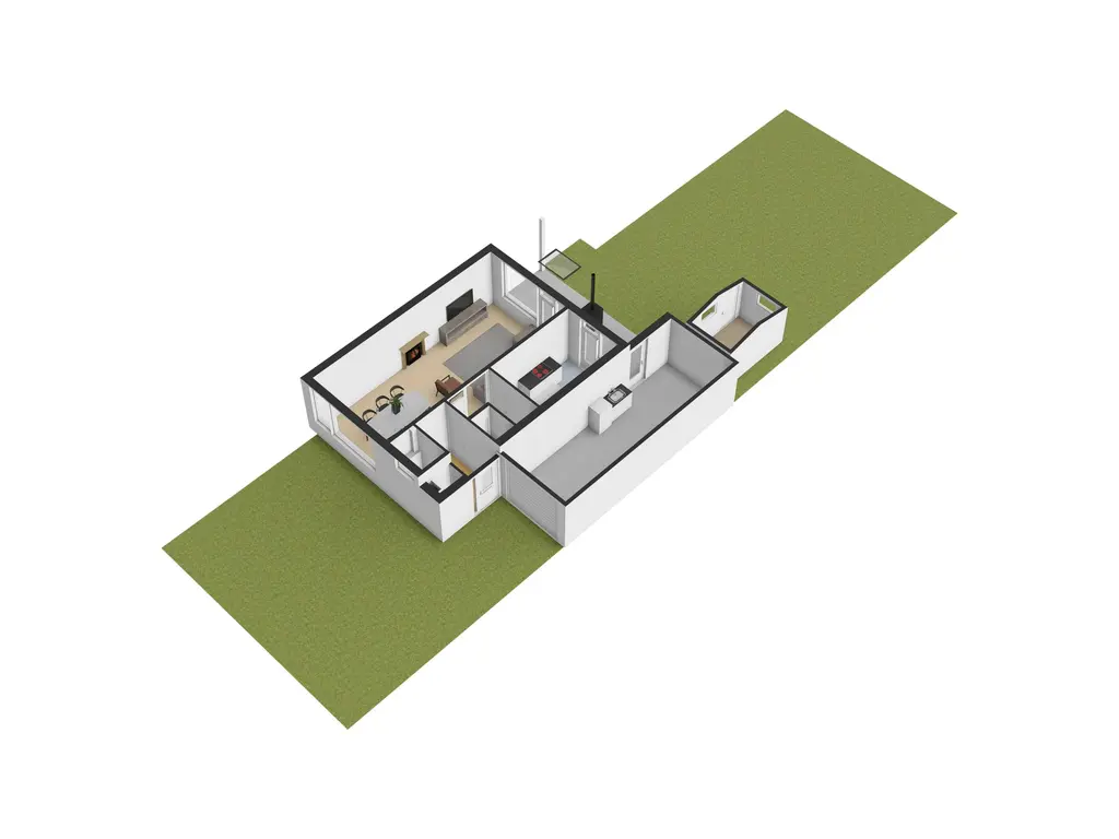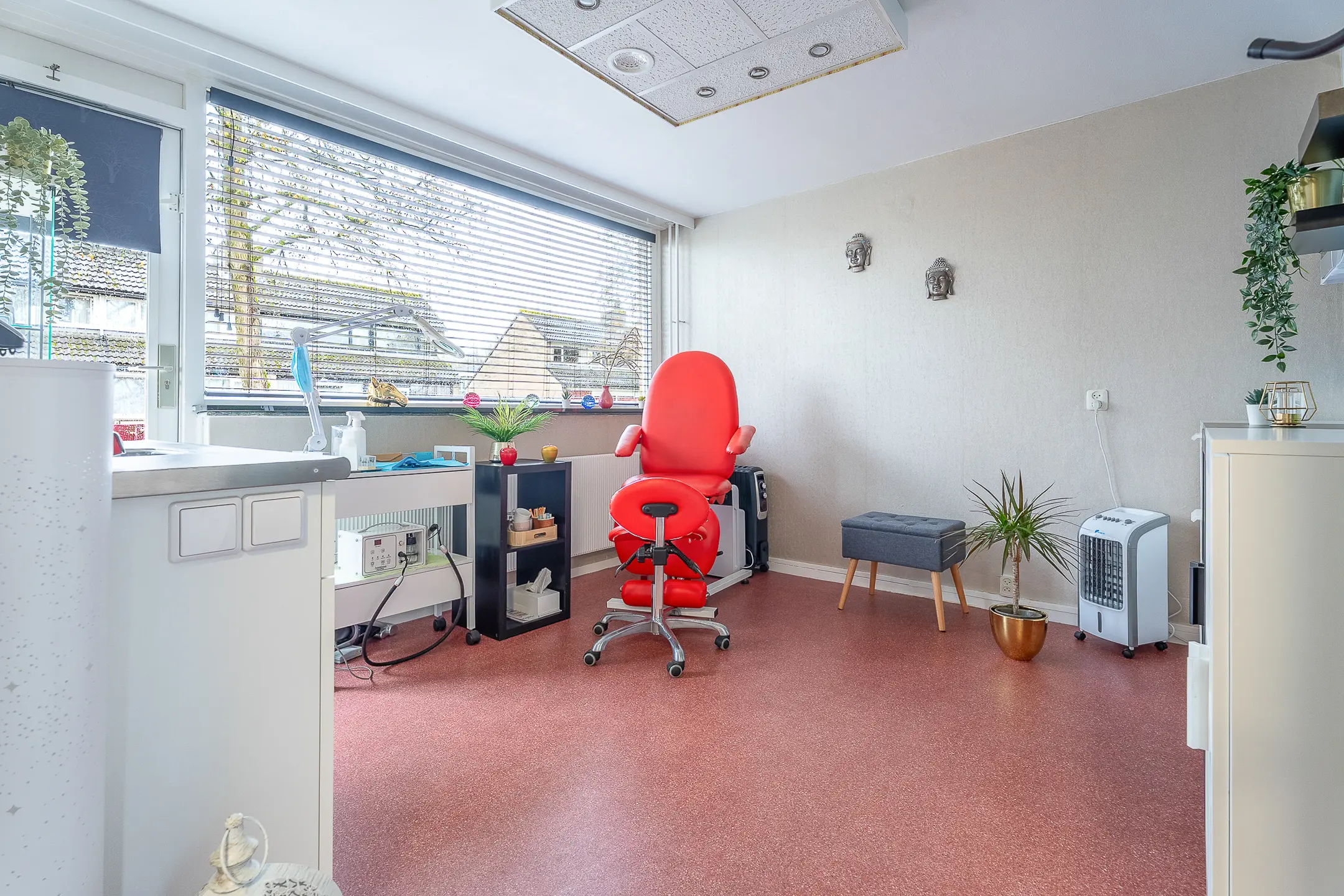 De voortuin met brede oprit biedt je toegang tot de woning. Je kan er royaal twee auto’s parkeren en er is de mogelijkheid (ter overname) voor elektrisch laden.