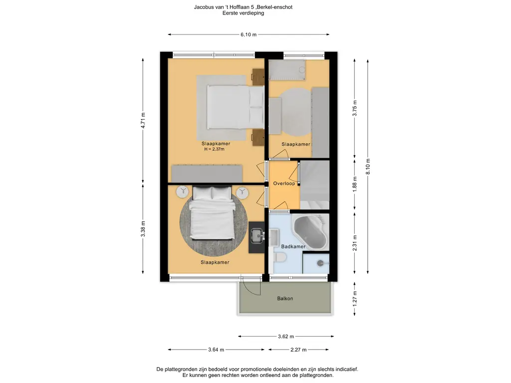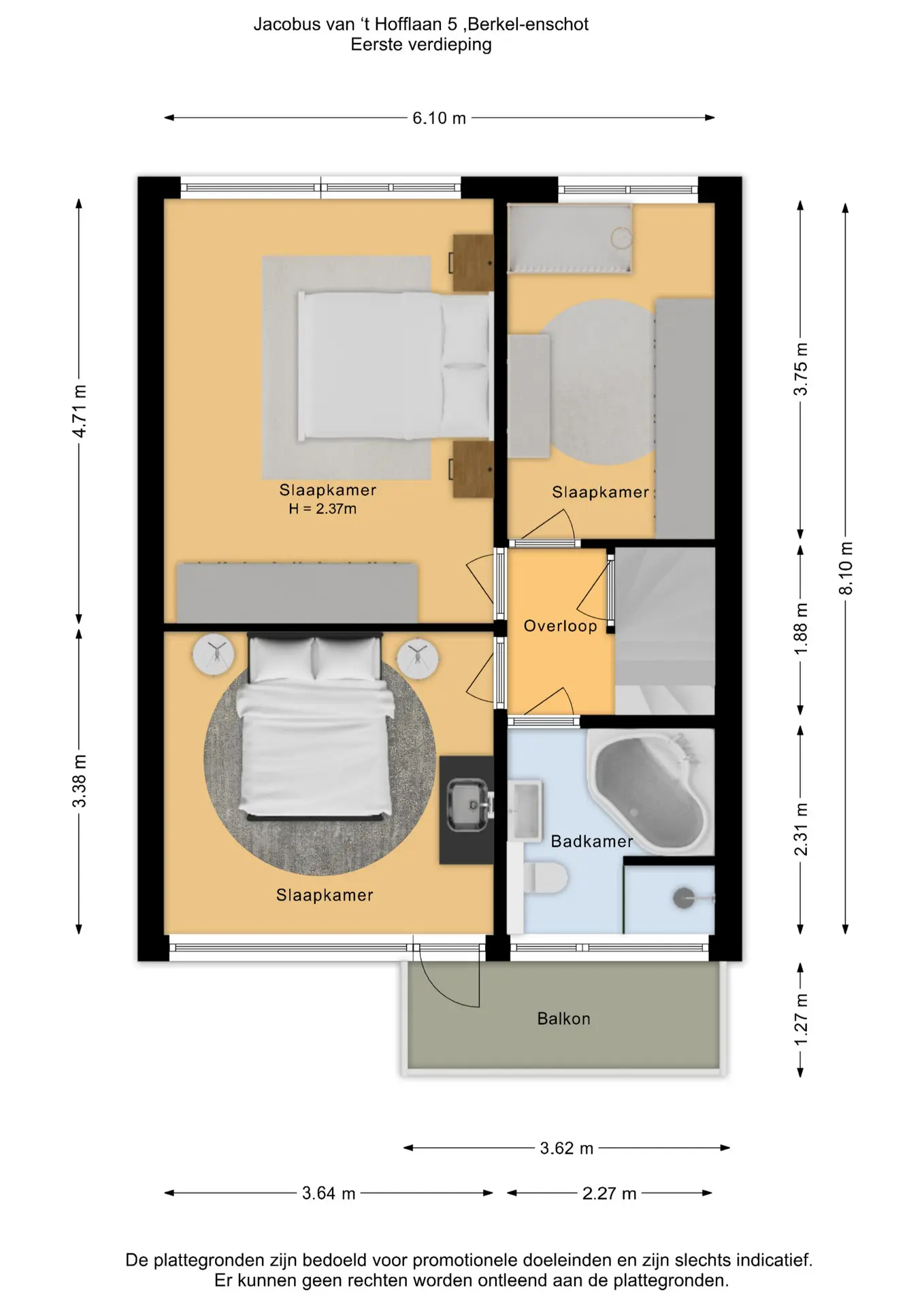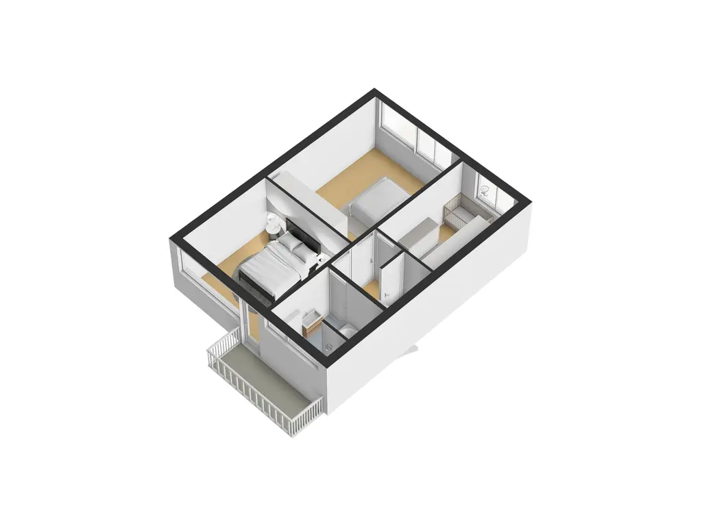 De overloop biedt toegang tot drie ruime slaapkamers, de badkamer en de trapopgang naar de 2e verdieping. Twee slaapkamers zijn gelegen aan de achterzijde en de badkamer en de 3e slaapkamer aan de voorzijde. De slaapkamer aan de voorzijde heeft een eigen balkon. Deze kamer is nu ingericht als werkkamer en beschikt over een wastafel met meubel ombouw. De “master bedroom” is meer dan royaal met zijn 17m² en ingericht met tapijt en behang wandafwerking. De twee andere slaapkamers zijn ook mooi van oppervlakte. Wat dacht je van bijna 8 en 12m². De badkamer is compleet met whirlpool-ligbad, inloopdouche, een toilet en een wastafel.