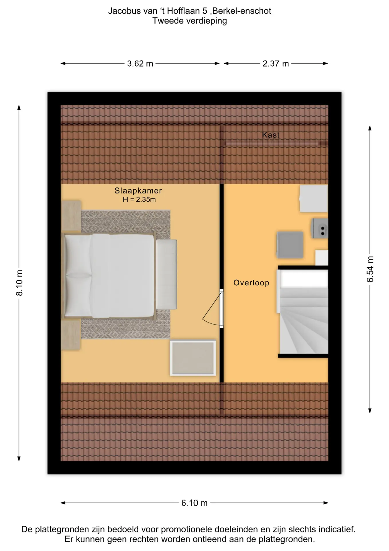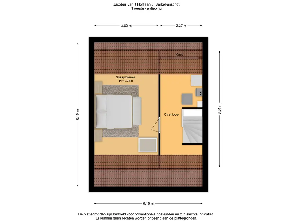 Via de vaste trap is de zolderverdieping te bereiken. Deze verdieping is ingericht met royale overloop en een 4e (slaap)kamer. Het dakvenster verzorgt prettig veel lichtinval en onder de dakschuinte is voldoende bergruimte aanwezig. Deze verdieping is voorzien van vloerbedekking en de (slaap)kamer is ruim 15m² groot. Op de voorzolder, overloop, tref je de cv-ketel (2018), opstelling zonnepanelen collector en aansluiting(en) voor wasmachine en wasdroger.