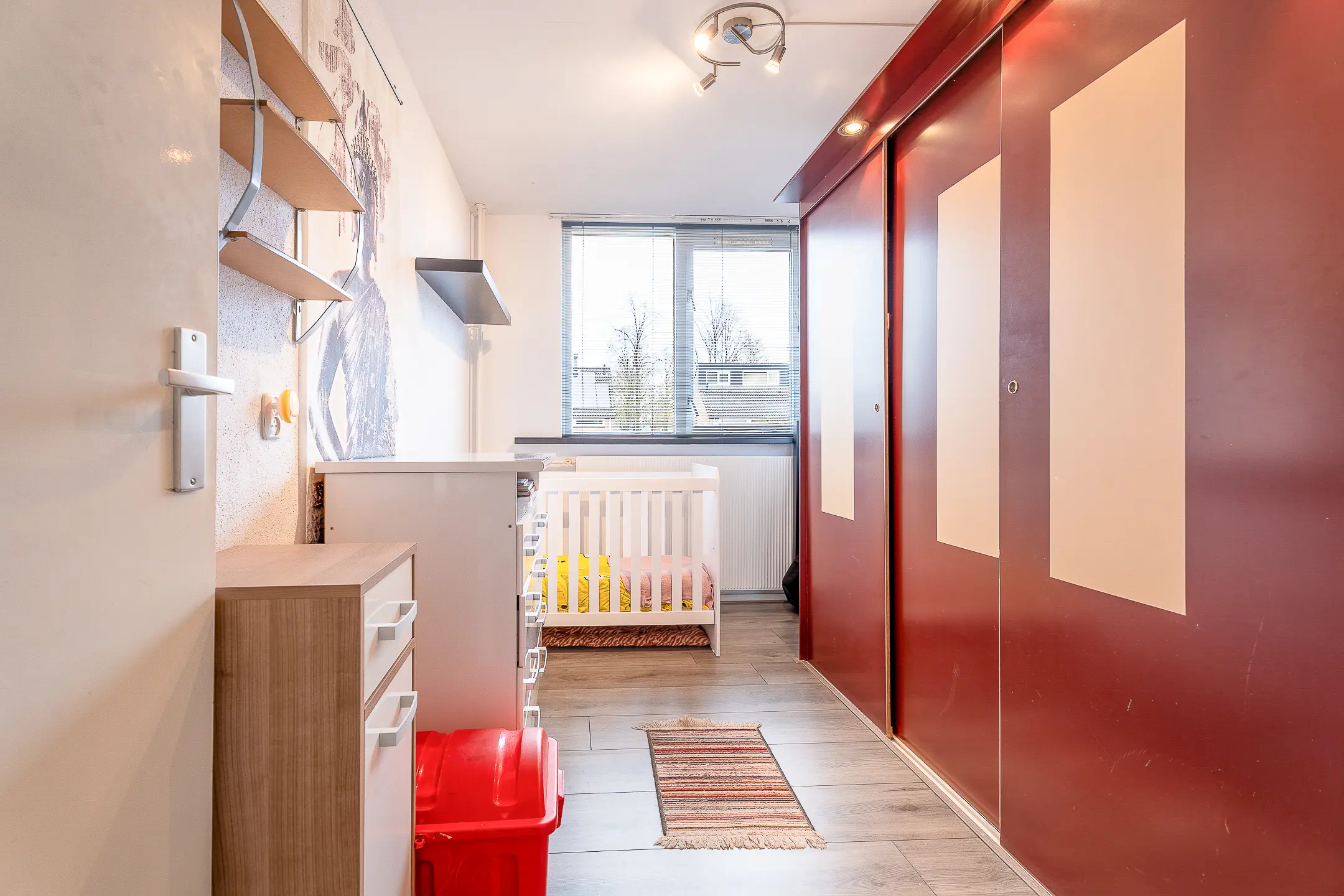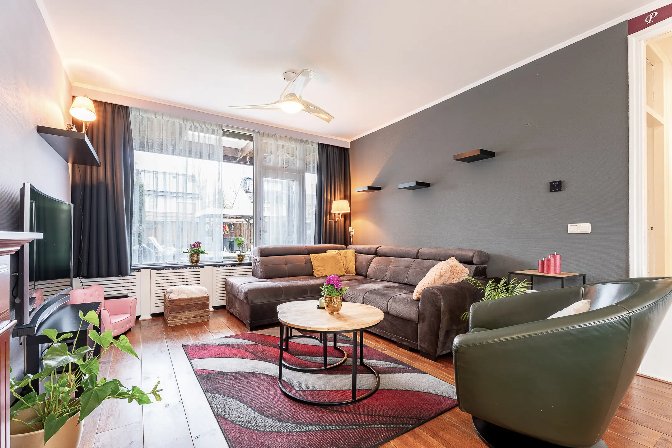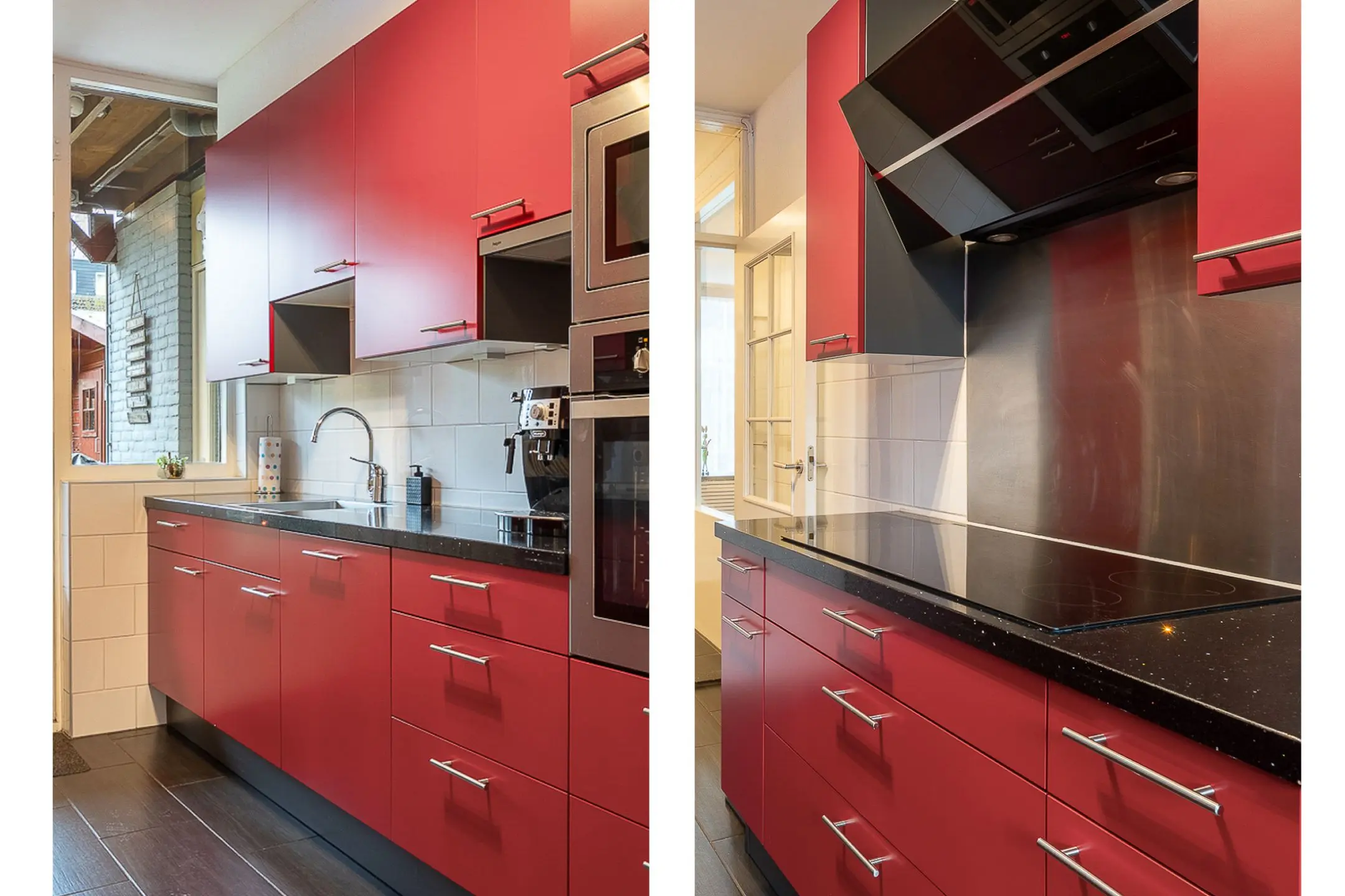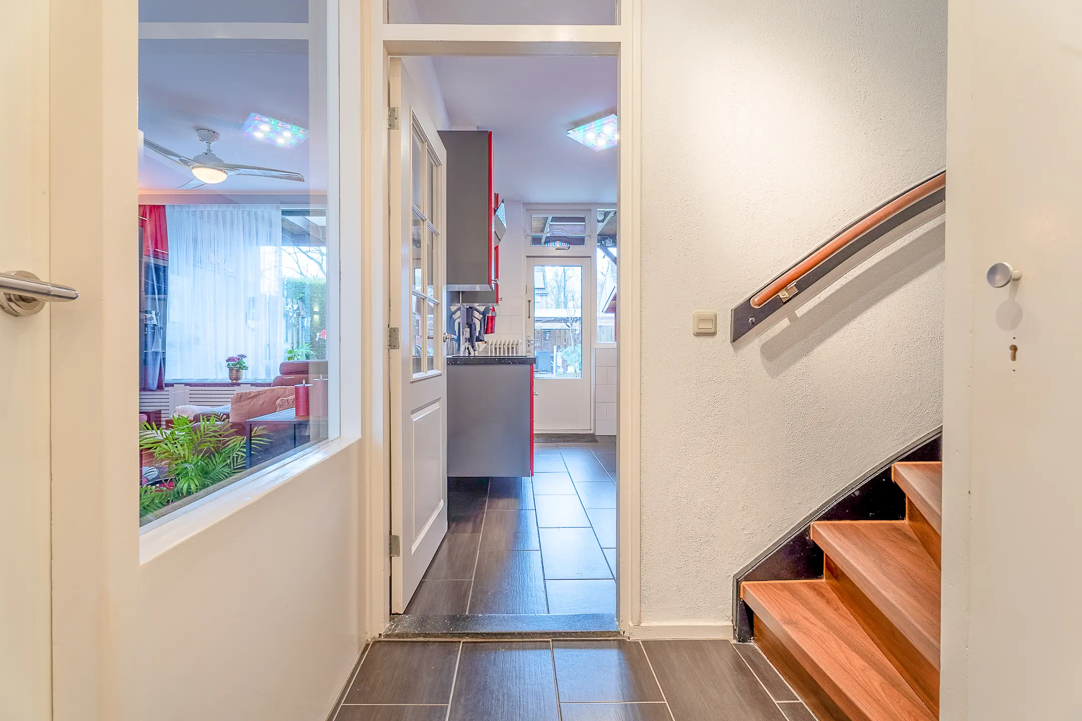 Entree, hal met meterkast en toilet. De meterkast is gemoderniseerd en biedt volop voorzieningen voor de zonnepanelen, alle keukenapparatuur en de laadpaal. Het toilet is prettig ruim, voorzien van een fonteintje en een raampje voor ventilatie. Alvorens je de woonkamer of de keuken betreedt, is er een tussen hal met trapopgang en een ruime voorraadkast. De trap naar de verdieping is fraai bekleed en voorzien van verlichting. Heerlijke traditionele doorzonwoonkamer met grote ramen, veel lichtinval, mooi uitzicht op de straat en je diepe achtertuin. Met een oppervlakte van 29m² (exclusief keuken) is het een fijne living. De stucwerk wanden, het stucwerk plafond en de houten vloer maken het geheel compleet. De moderne keuken is meer dan uitgebreid met volop kastruimte en inbouwapparatuur; inductie koken op 5-pits, koel-vriescombinatie, oven en een magnetron. Er zijn twee afzuigkappen (1x voor bijvoorbeeld de airfryer) en het geheel is voorzien van een composiet werkblad. Is rood niet je kleur dan is wrappen tegenwoordig een voordelige keuze.