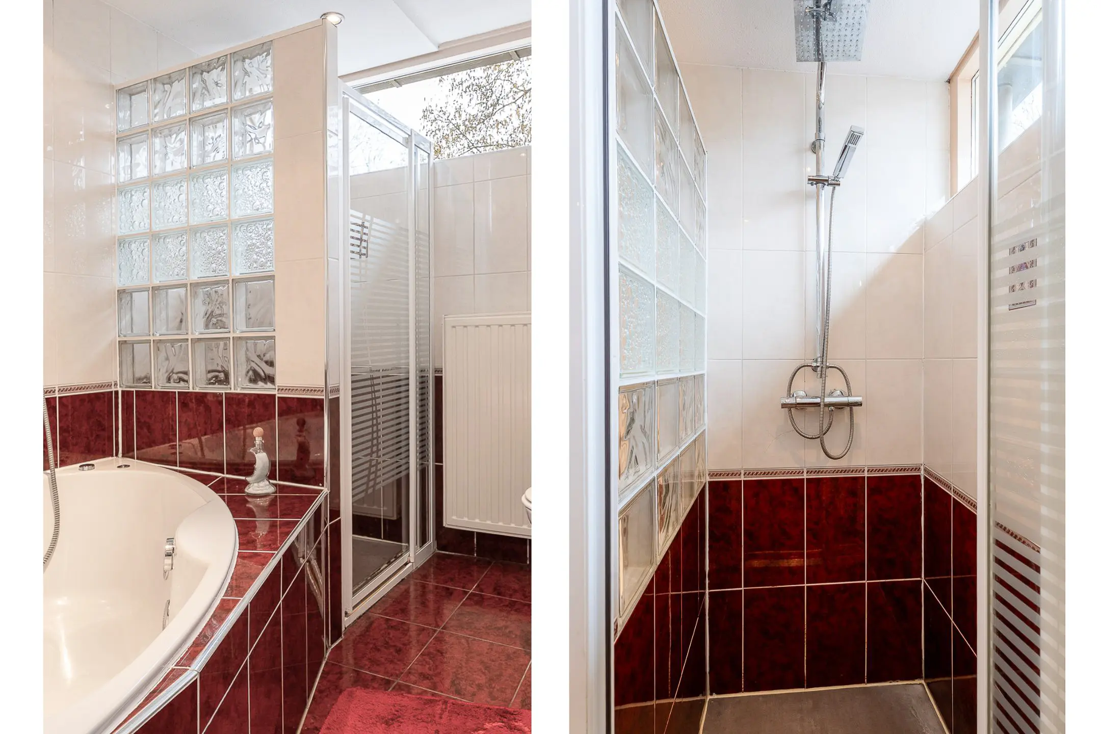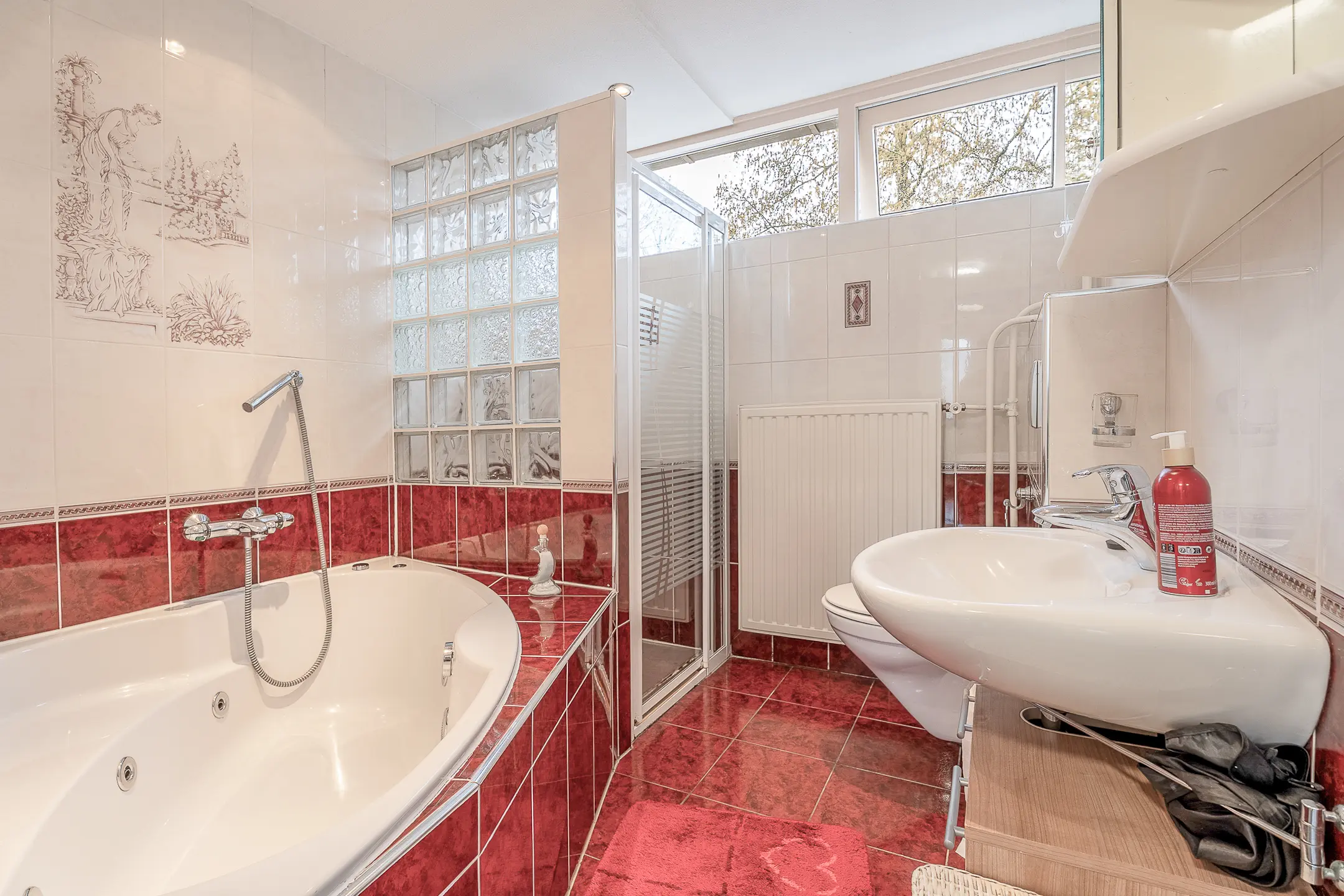 - Badkamer met whirlpool, inloopdouche, 2e toilet en wastafel;