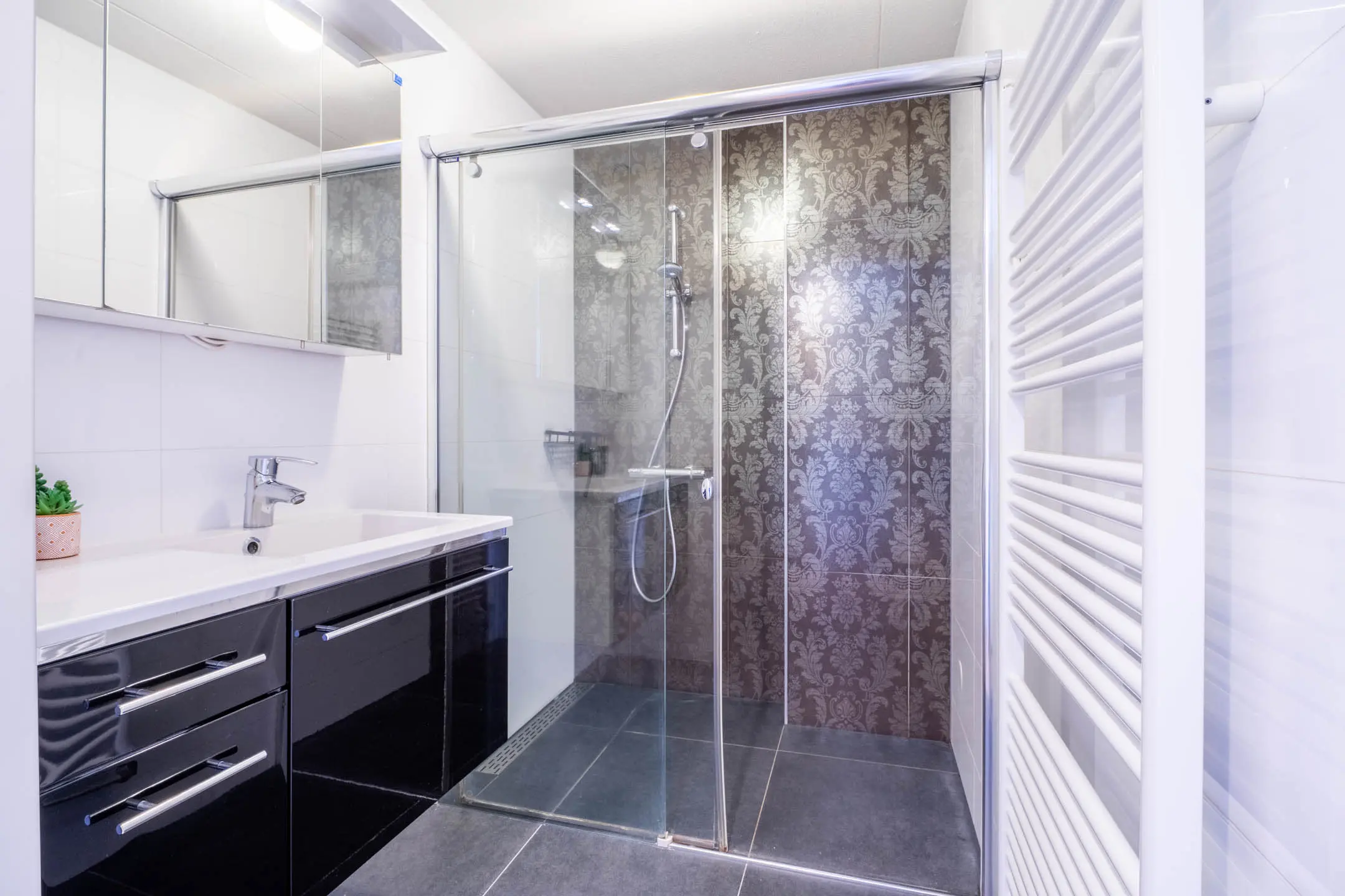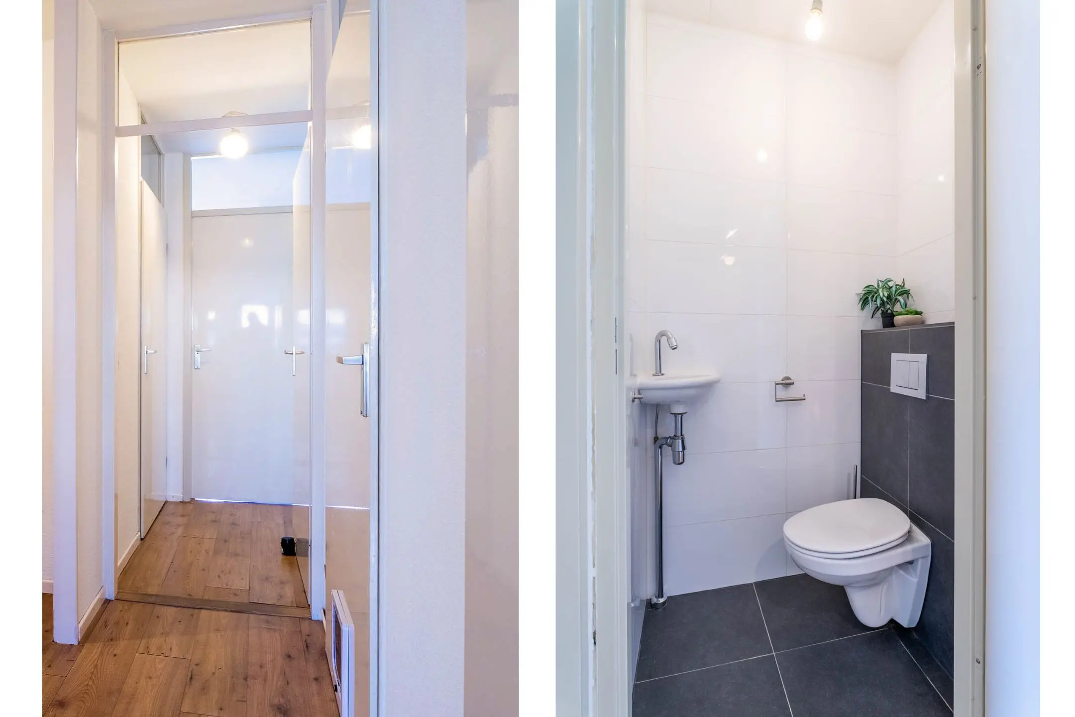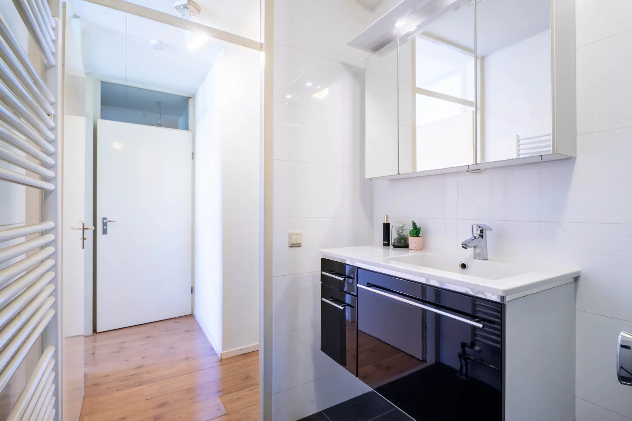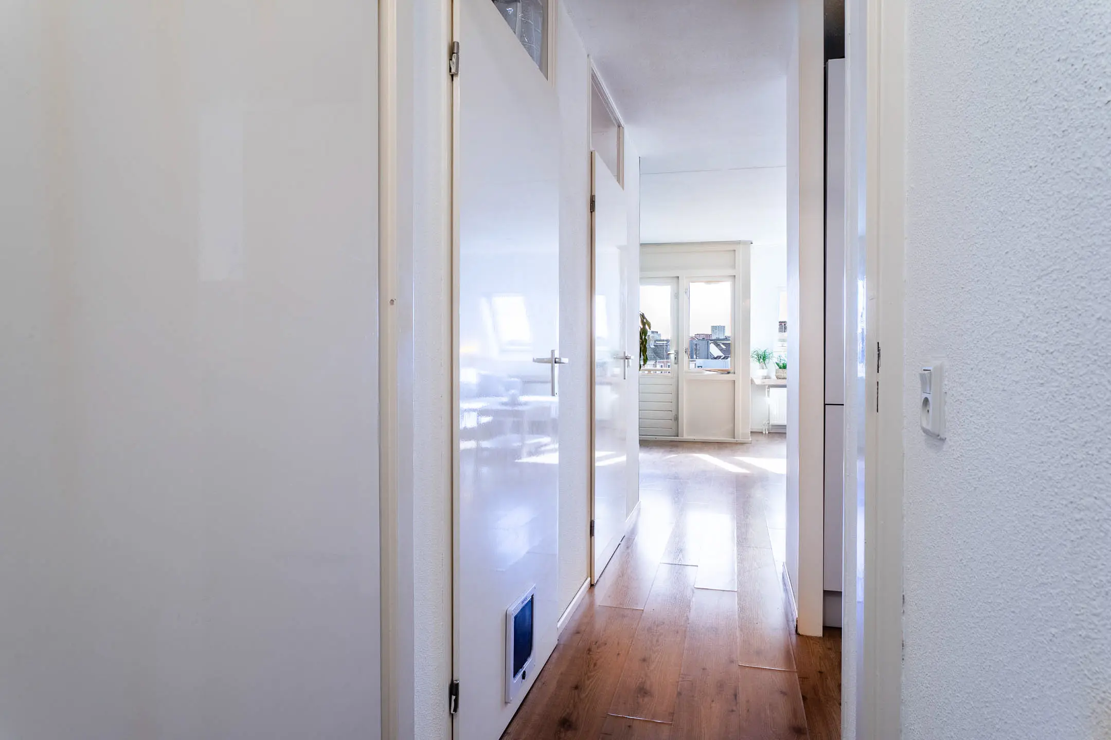 Via de gang heb je toegang tot de slaapkamers, de badkamer en de toiletruimte. De slaapkamers zijn gelegen aan de achterzijde van het gebouw en zijn beide netjes afgewerkt met een laminaatvloer. Vanuit de kleinste slaapkamer heb je tevens toegang tot het tweede balkon (gelegen op het noordoosten). De badkamer is volledig betegeld en voorzien van een riante inloopdouche, een wastafel met meubel en een designradiator. Ook de toiletruimte is betegeld en voorzien van een hangend toilet en een fonteintje.