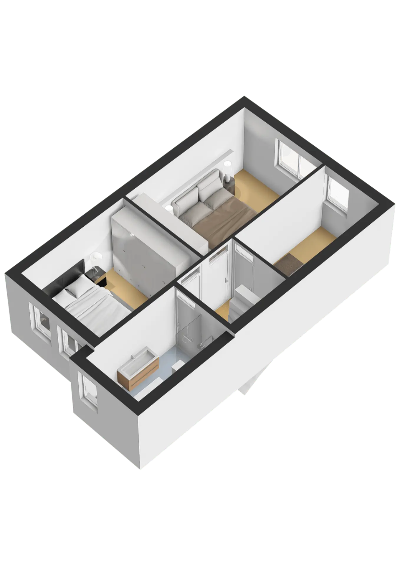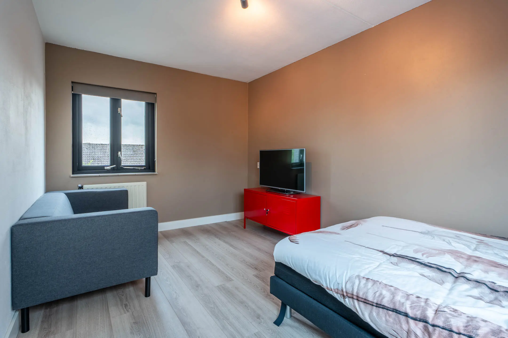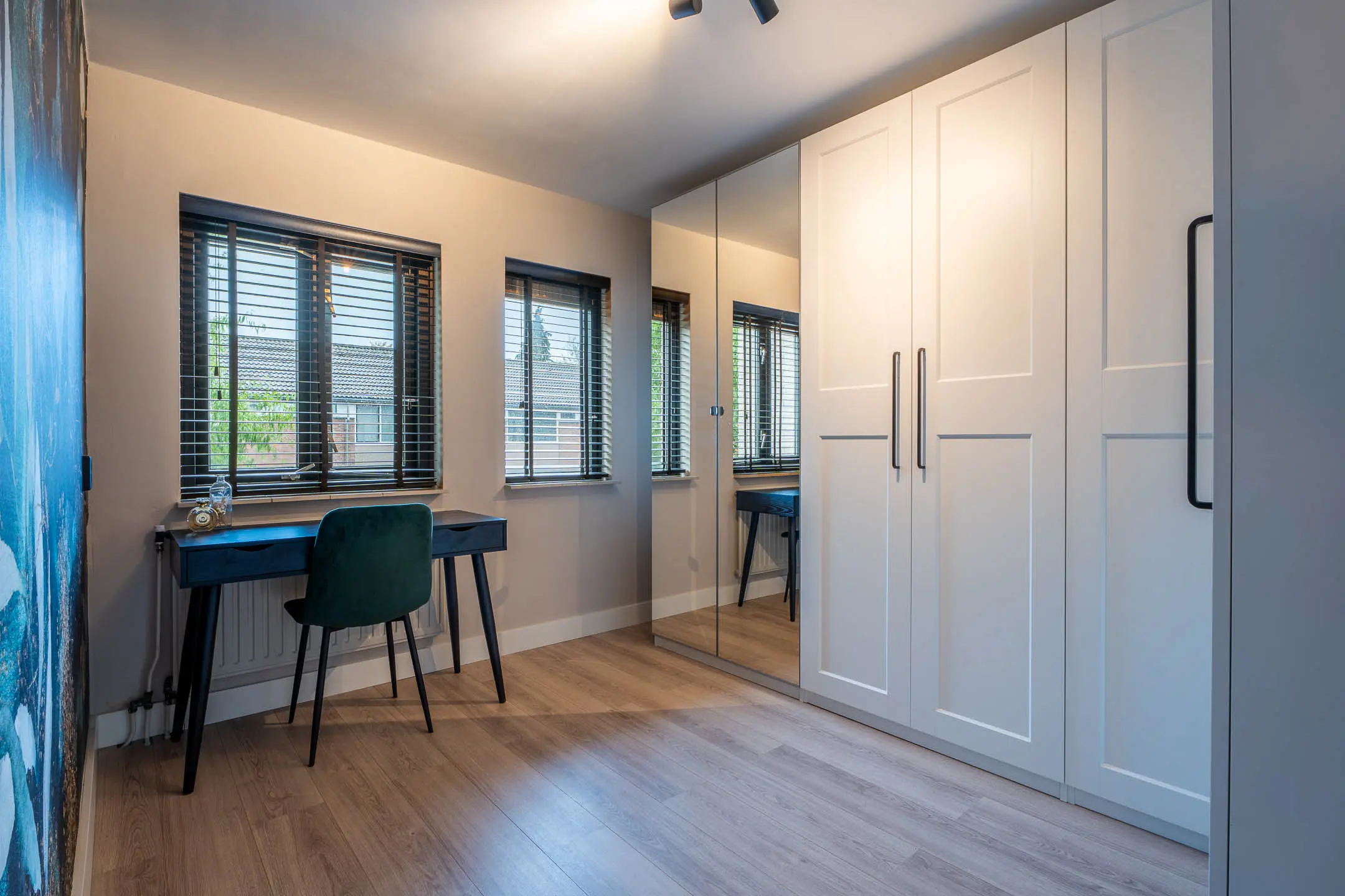 Slaapkamer 3 achterzijde ca. 3,4 x 1,9 m afgewerkt met lichte structuur.
