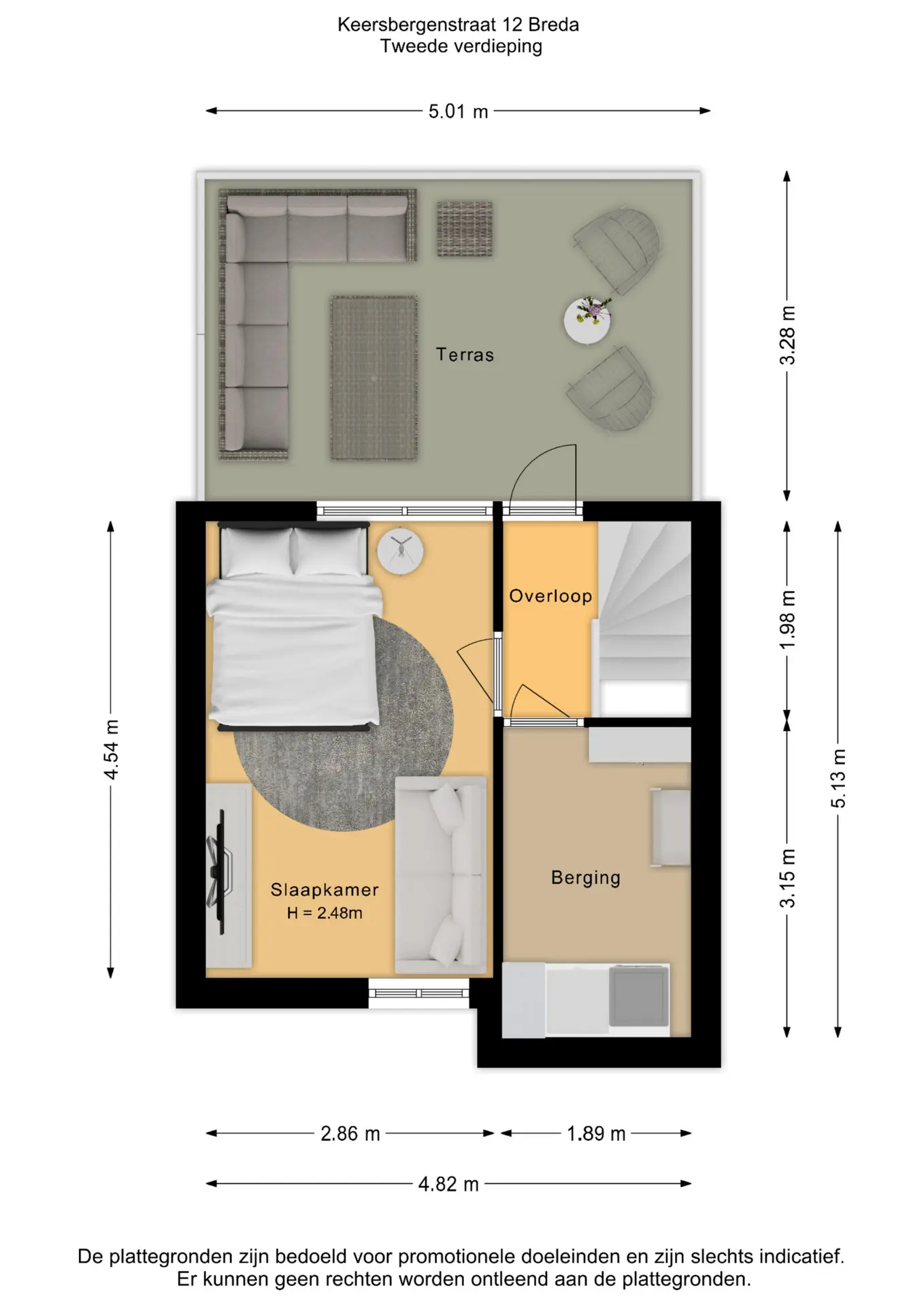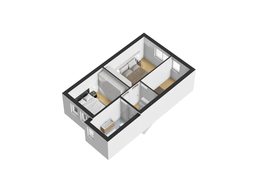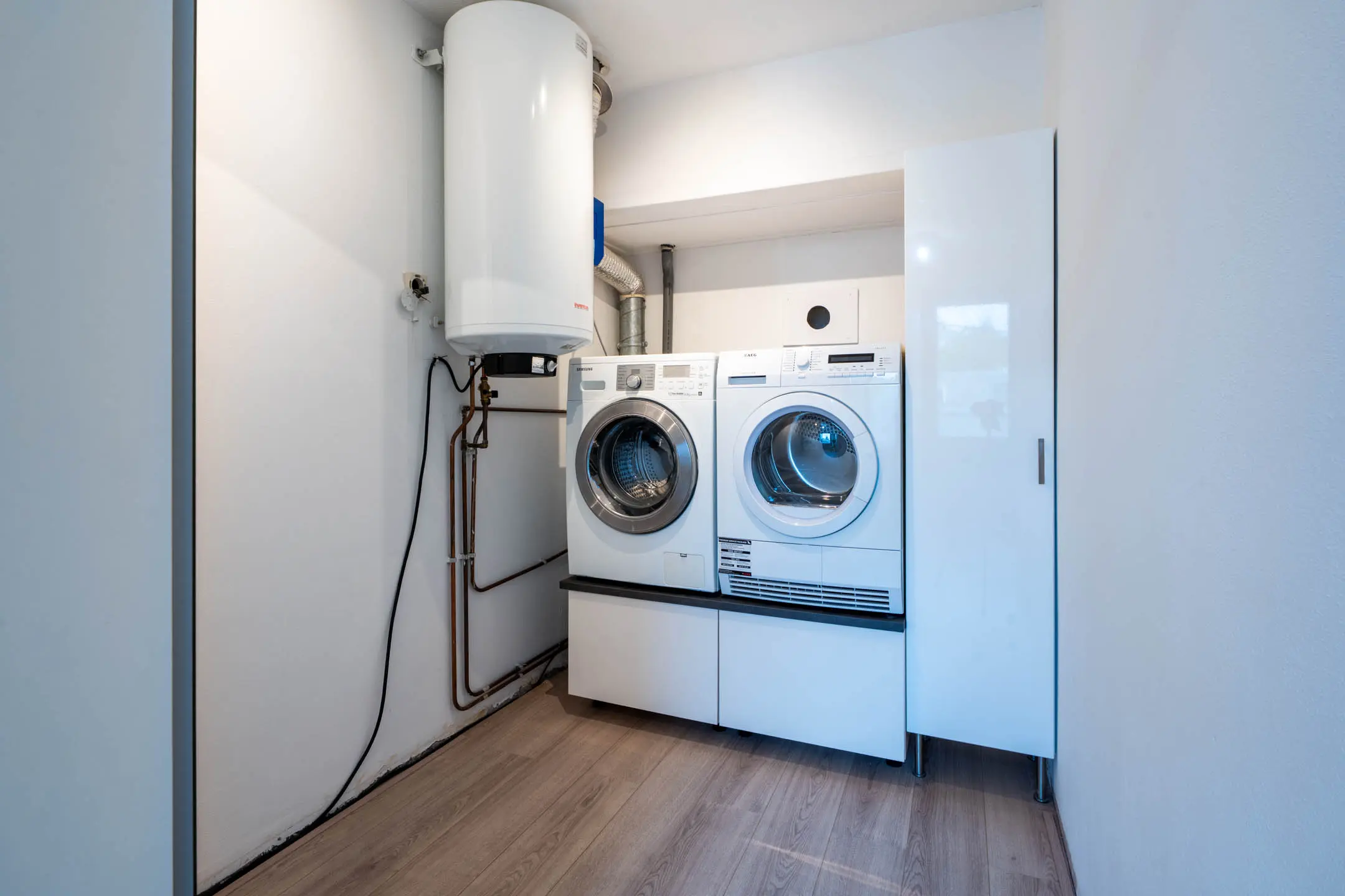 Op de tweede verdieping is een overloop, wasruimte en vierde slaapkamer. Doordat er geen schuin dak is, is dit een zeer ruime extra kamer. In de wasruimte is de aansluiting voor de wasapparatuur, de boiler en de mechanische ventilatie unit, verder is er voldoende ruimte voor opslag.