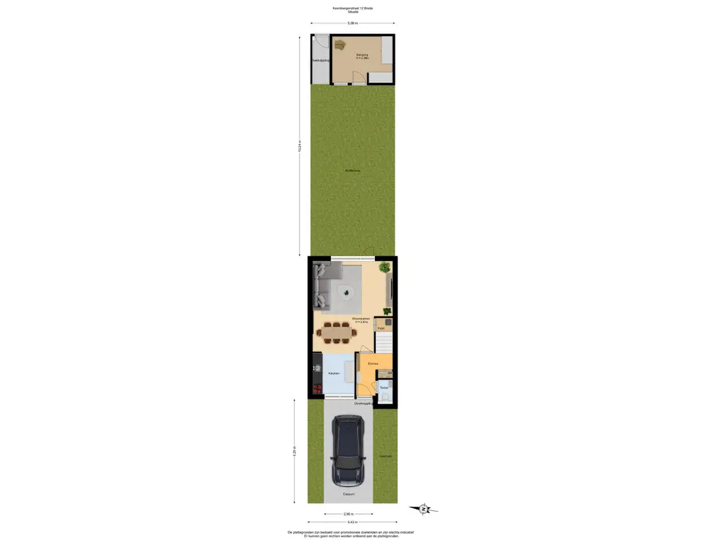De woning heeft zowel een voor- als achtertuin. Aan de voorzijde van de woning kun je parkeren op eigen terrein