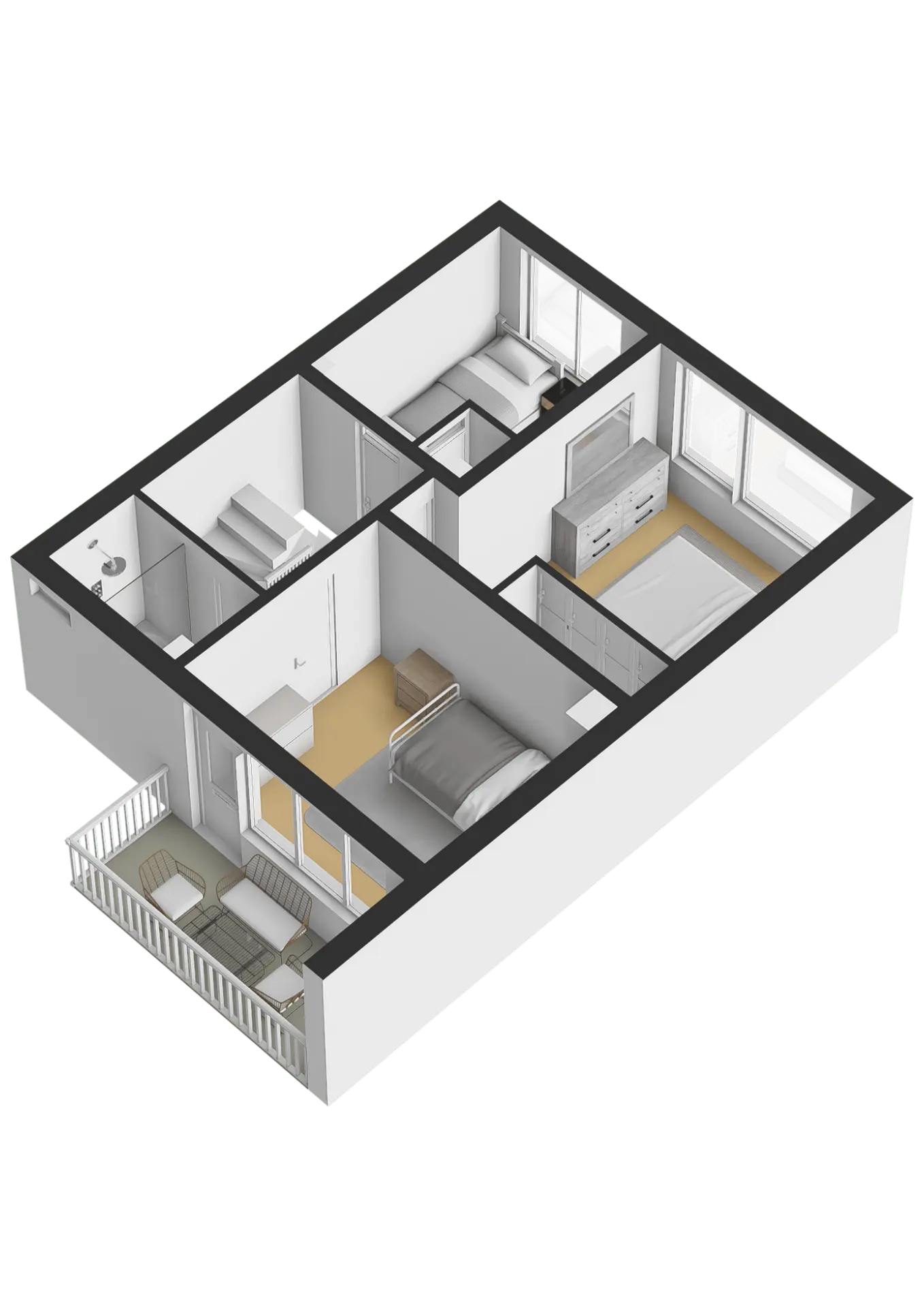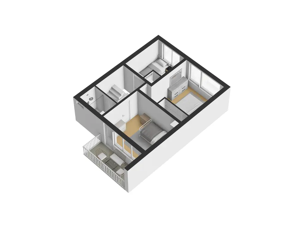 Slaapkamer 3 achterzijde ca. 2,3 x 3 m, voorzien laminaatvloer.