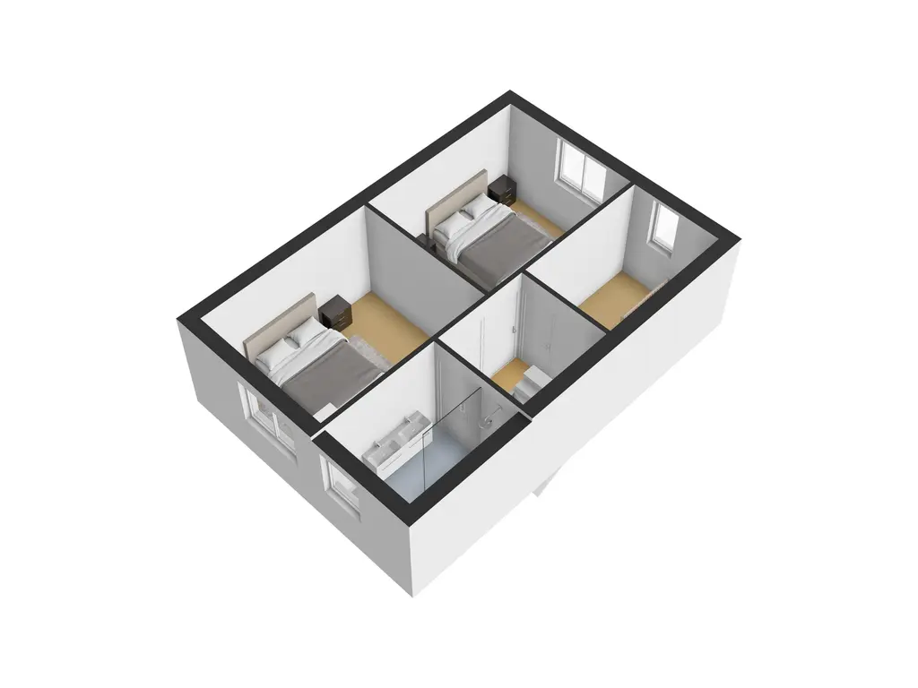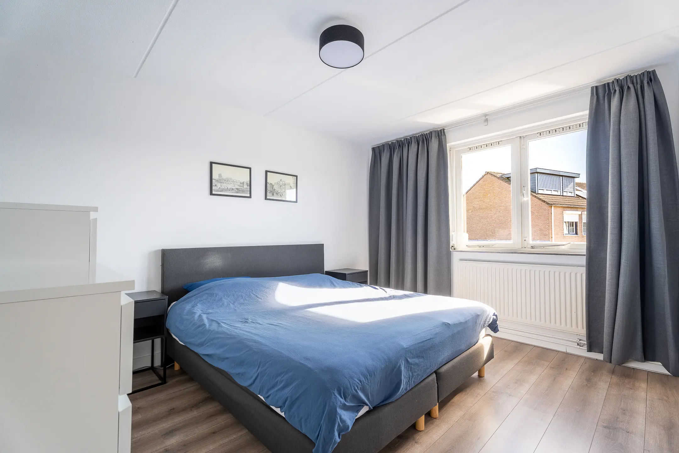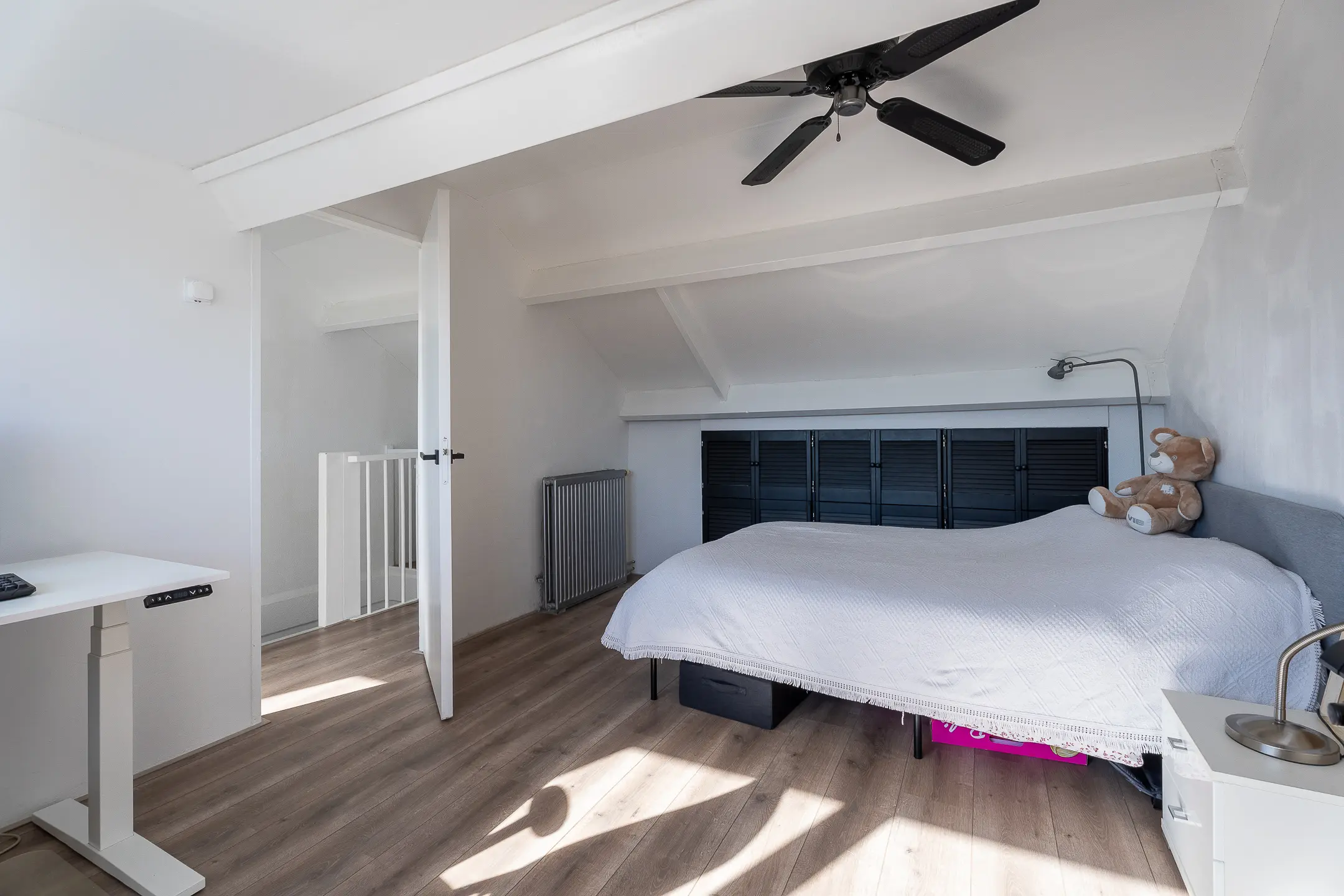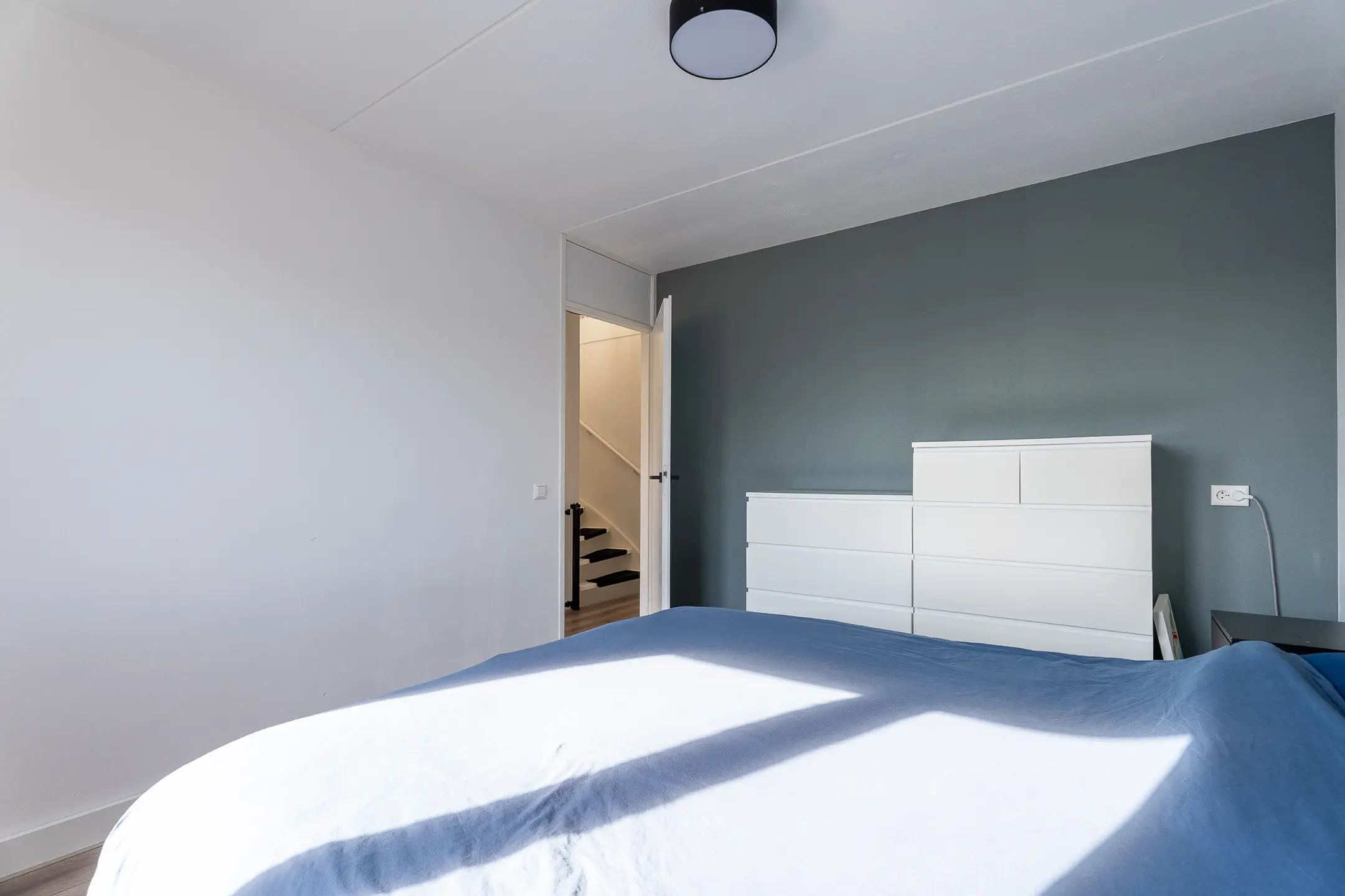 De slaapkamers zijn afgewerkt met een laminaatvloer en stucwerk.