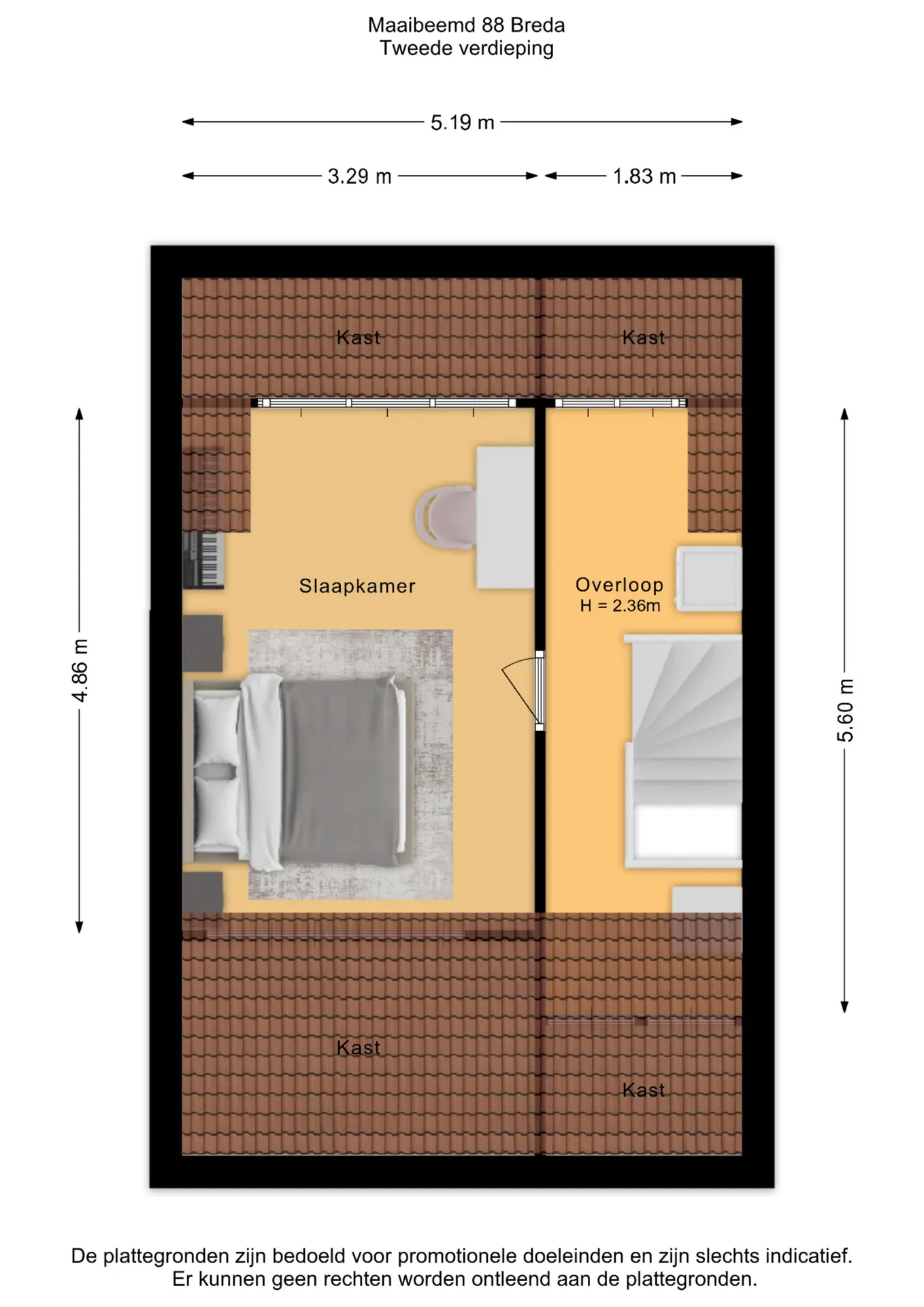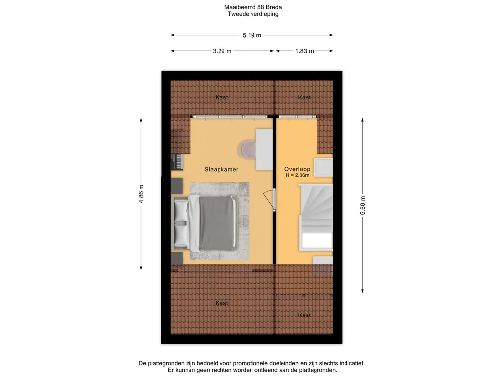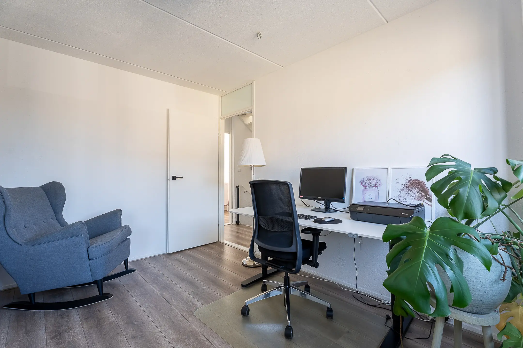 De royale tweede verdieping heeft aan de achterzijde een dakkapel over de hele breedte van de woning, veel licht en ruimte dus! Op de overloop is de aansluiting voor de wasapparatuur en is er extra bergruimte achter de knieschotten. Verder is hier de ruime vierde slaapkamer, afgewerkt met een laminaatvloer, inbouwspots en stucwerk.
