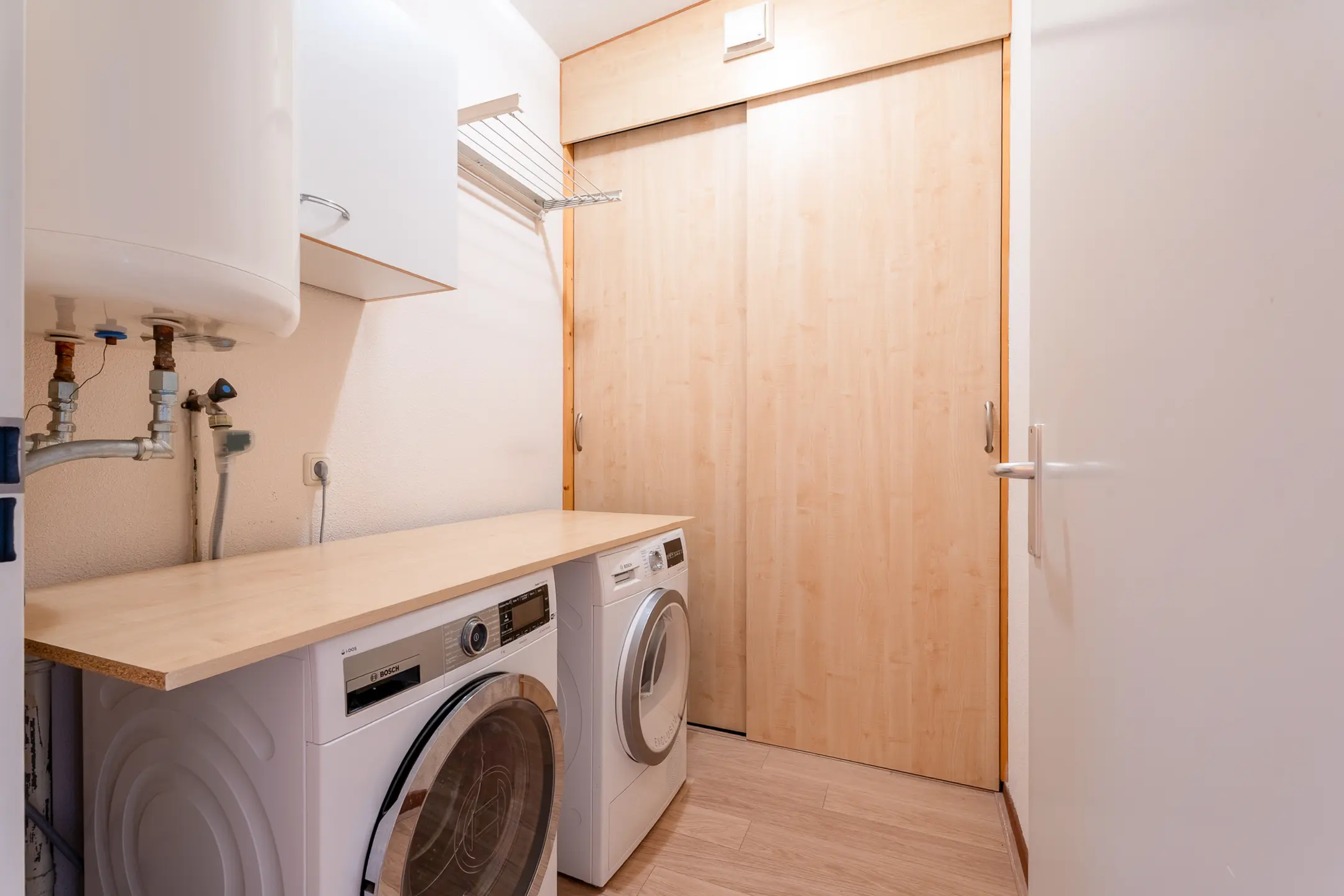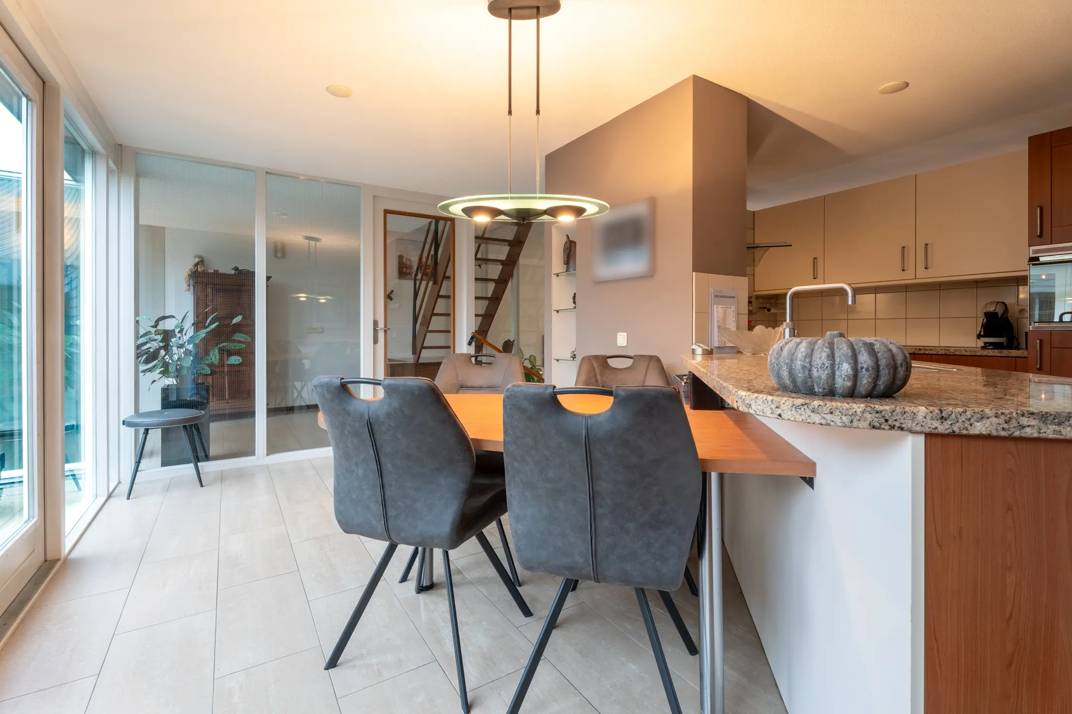 De begane grond is voorzien van tegels met vloerverwarming.