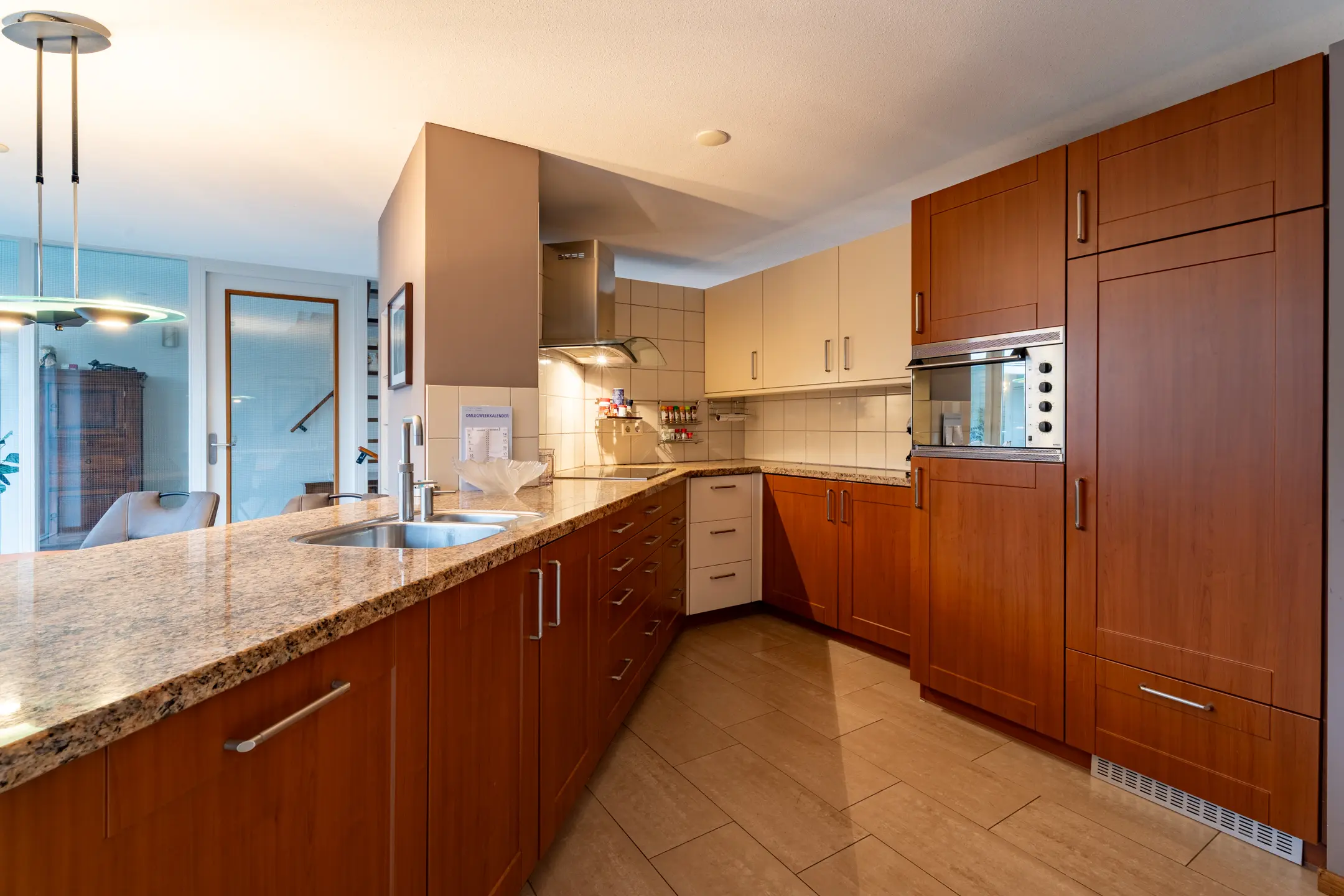De woonkeuken is geplaatst in 2000 en is voorzien van diverse kasten, lades en inbouwapparatuur, waaronder; een inductiekookplaat (2015), afzuigkap, vaatwasmachine (2024), combi-oven, koelkast (2016), vrieskast (2025) en een Quooker. Vanuit de keuken heb je, via openslaande deuren, toegang tot de patiotuin.