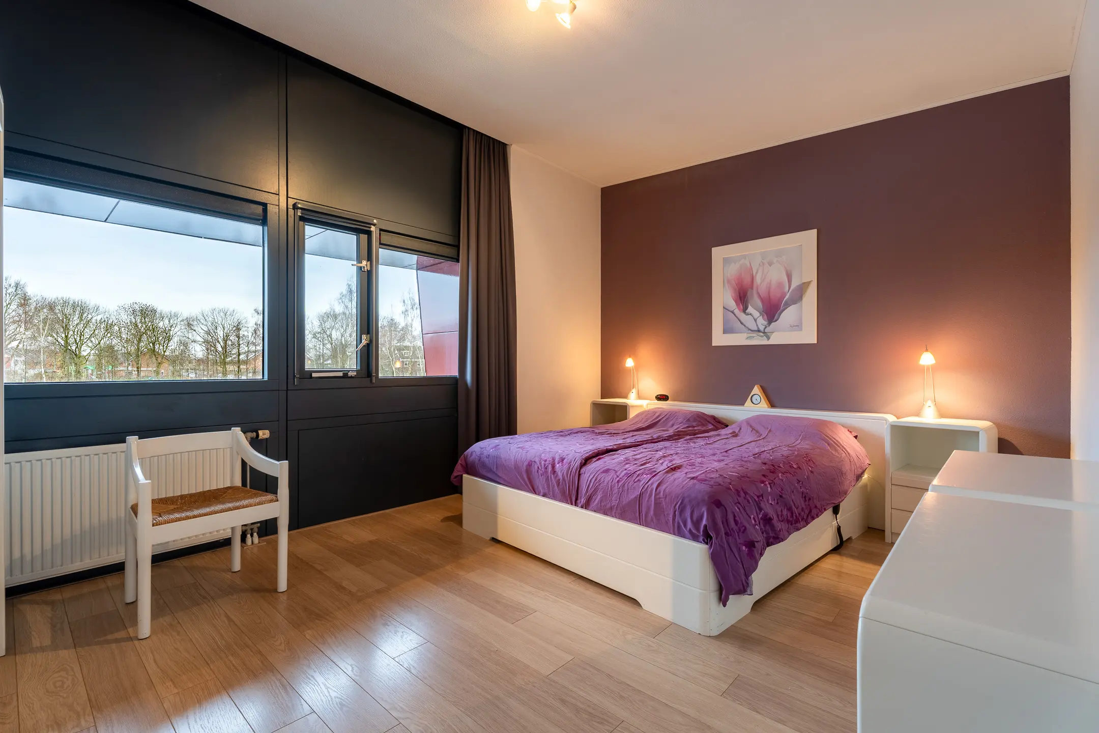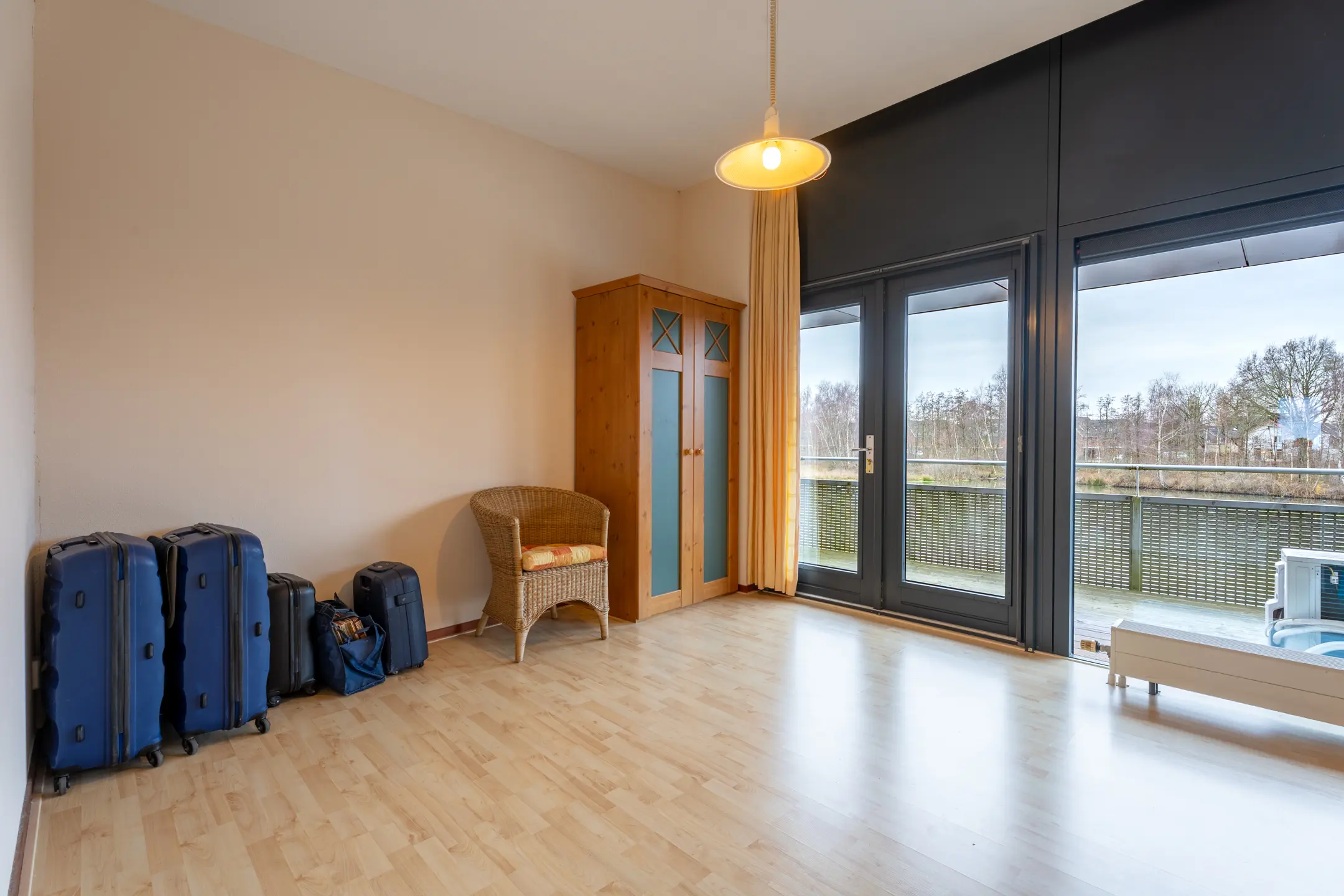 Slaapkamer II (4m11 x 3m61), ook gelegen aan de waterkant, met toegang tot het balkon.