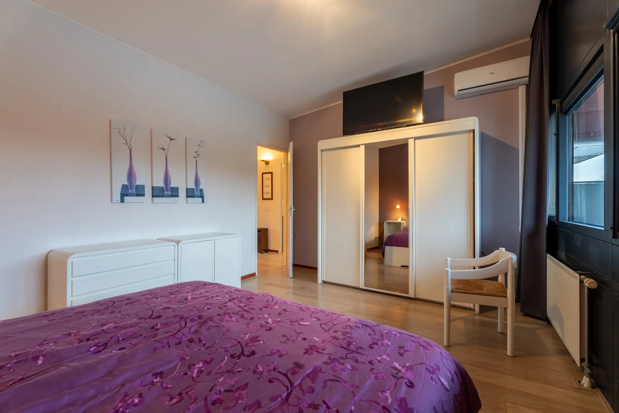 Slaapkamer I (5m08 x 3m54), gelegen aan de waterkant, voorzien van airco.