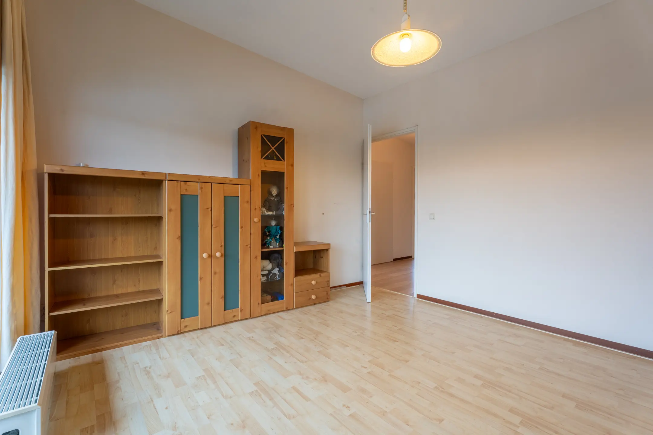 Slaapkamer III (4m37 x 2m45), gelegen aan de voorzijde, met een inbouwkast en een vaste kast (bedkast).
