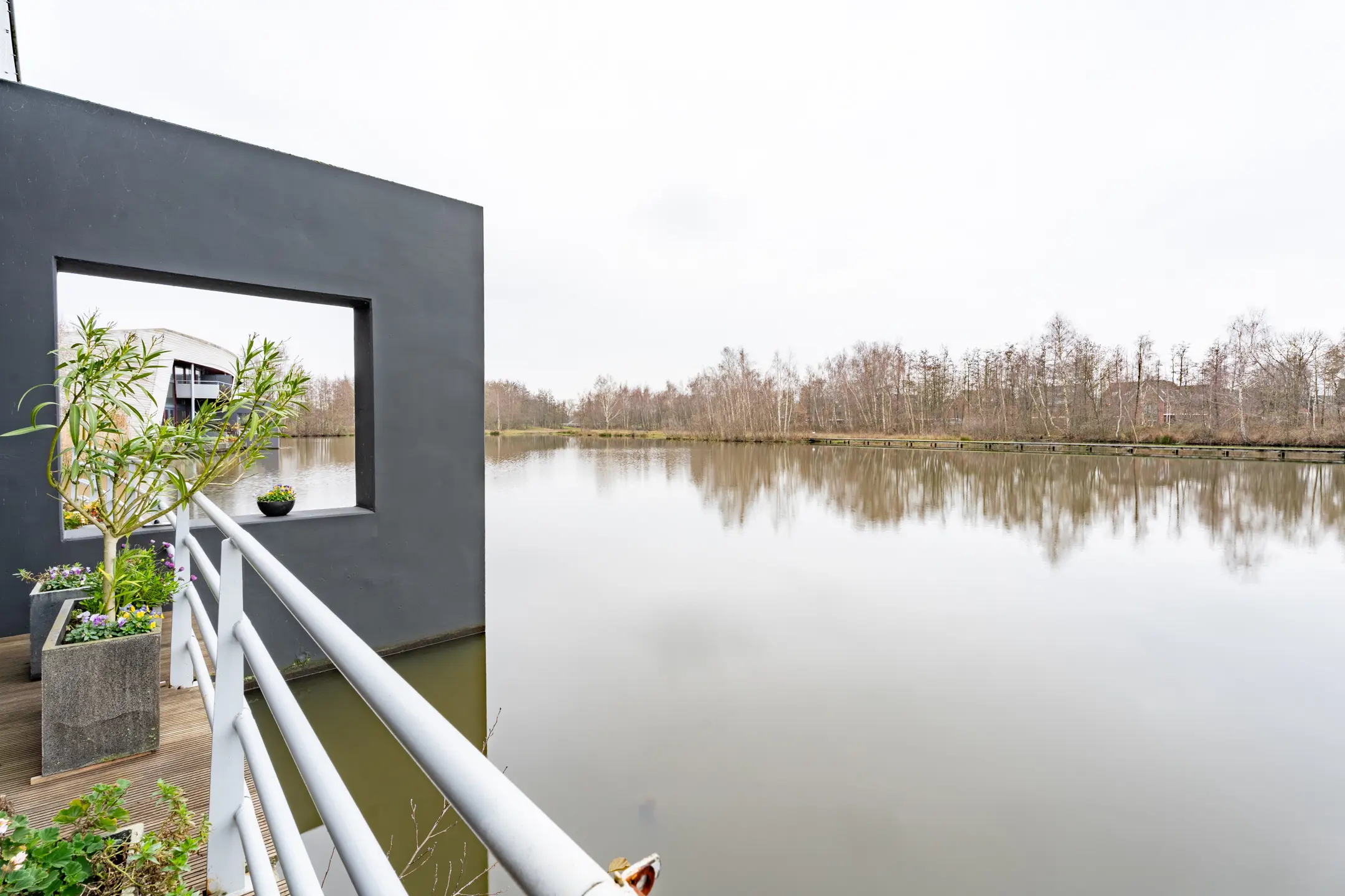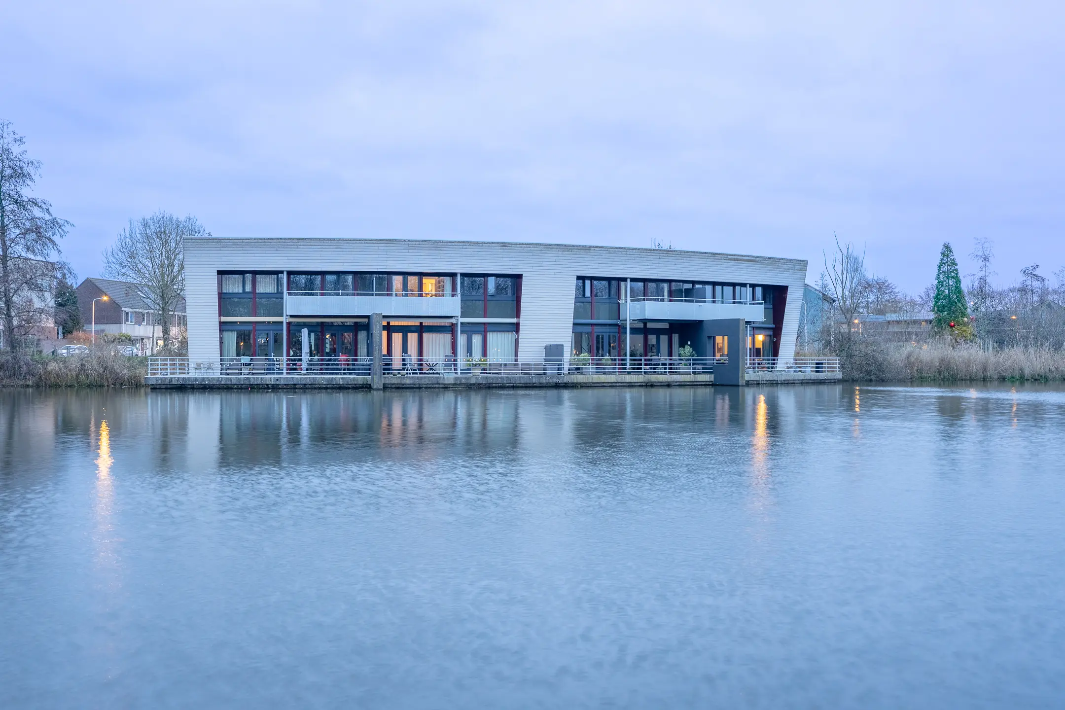 Aan de entreezijde begint het bescheiden en valt je de ruimte die de woning je te bieden heeft nog niet zo op, maar eenmaal voorbij de voordeur zie je de riante en speelse indeling, met vanuit de woonkamer een onvergetelijk uitzicht over het water en natuur. Hier wordt wonen echt recreëren! Er zijn 5 slaap-/werkkamers en op het dak liggen 20 zonnepanelen.